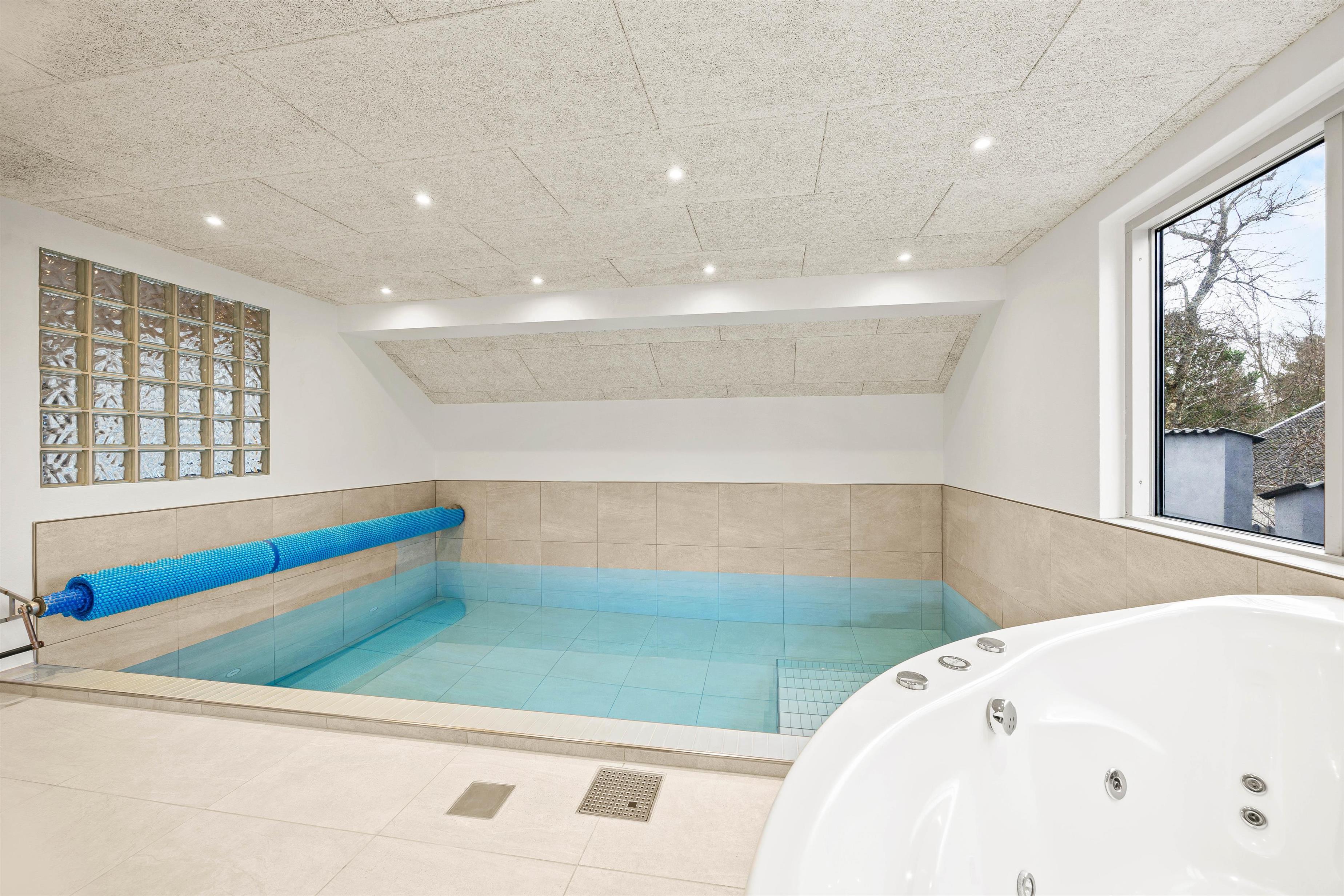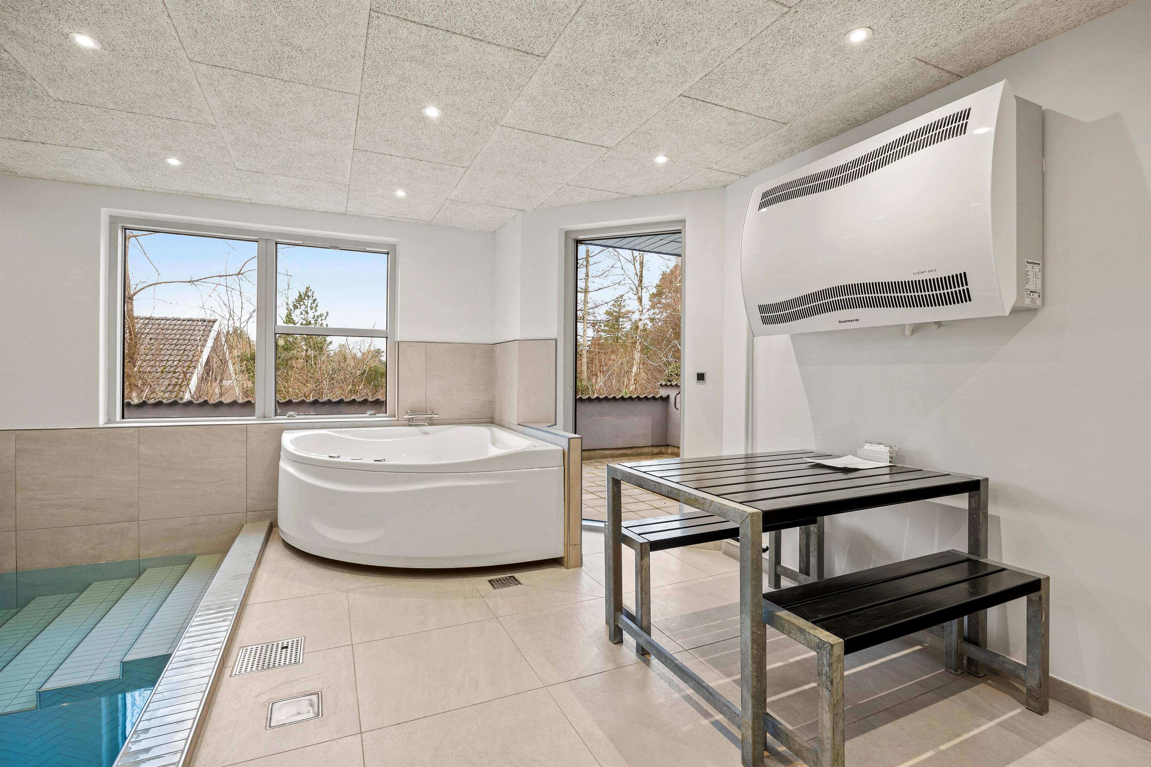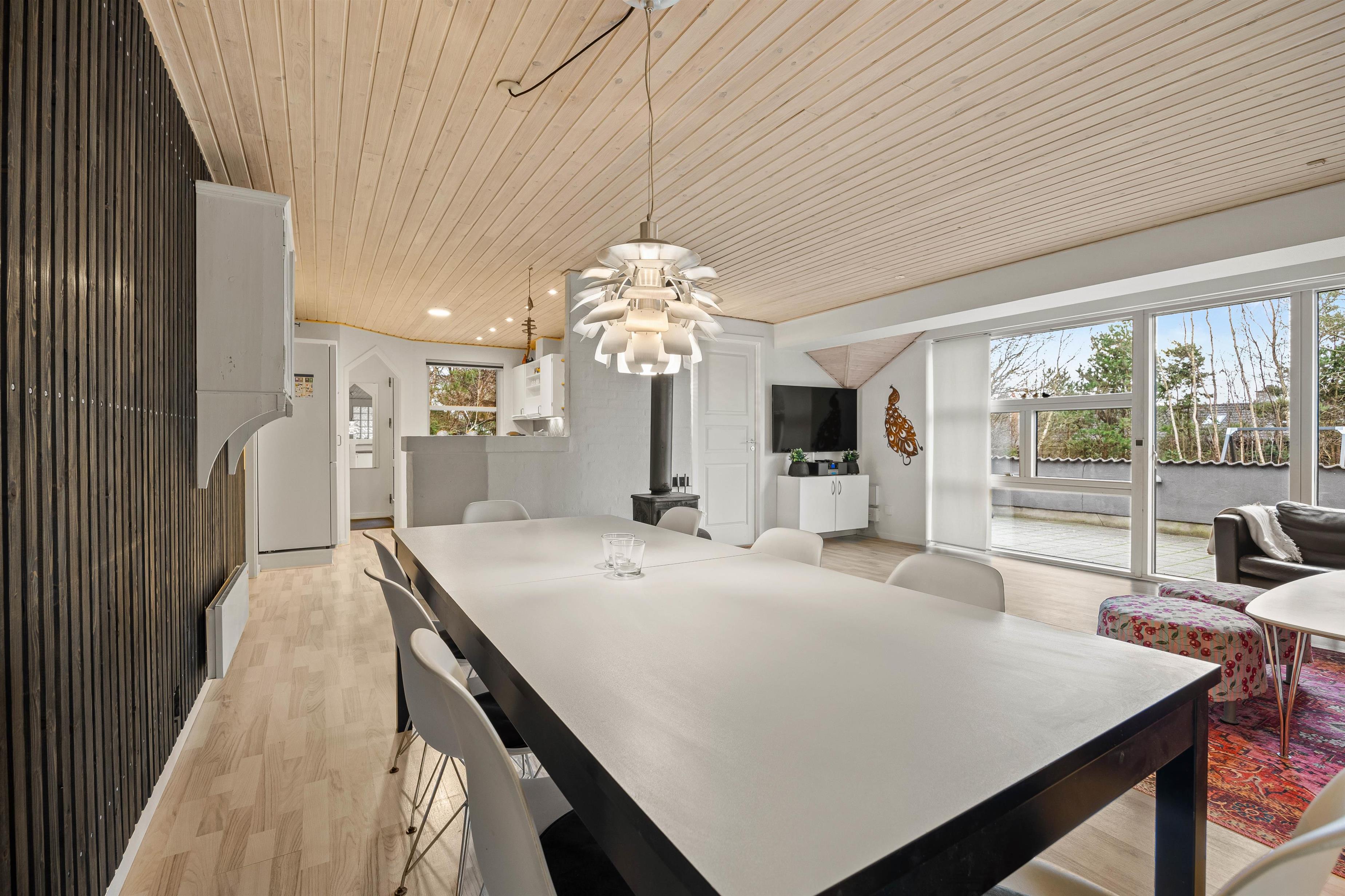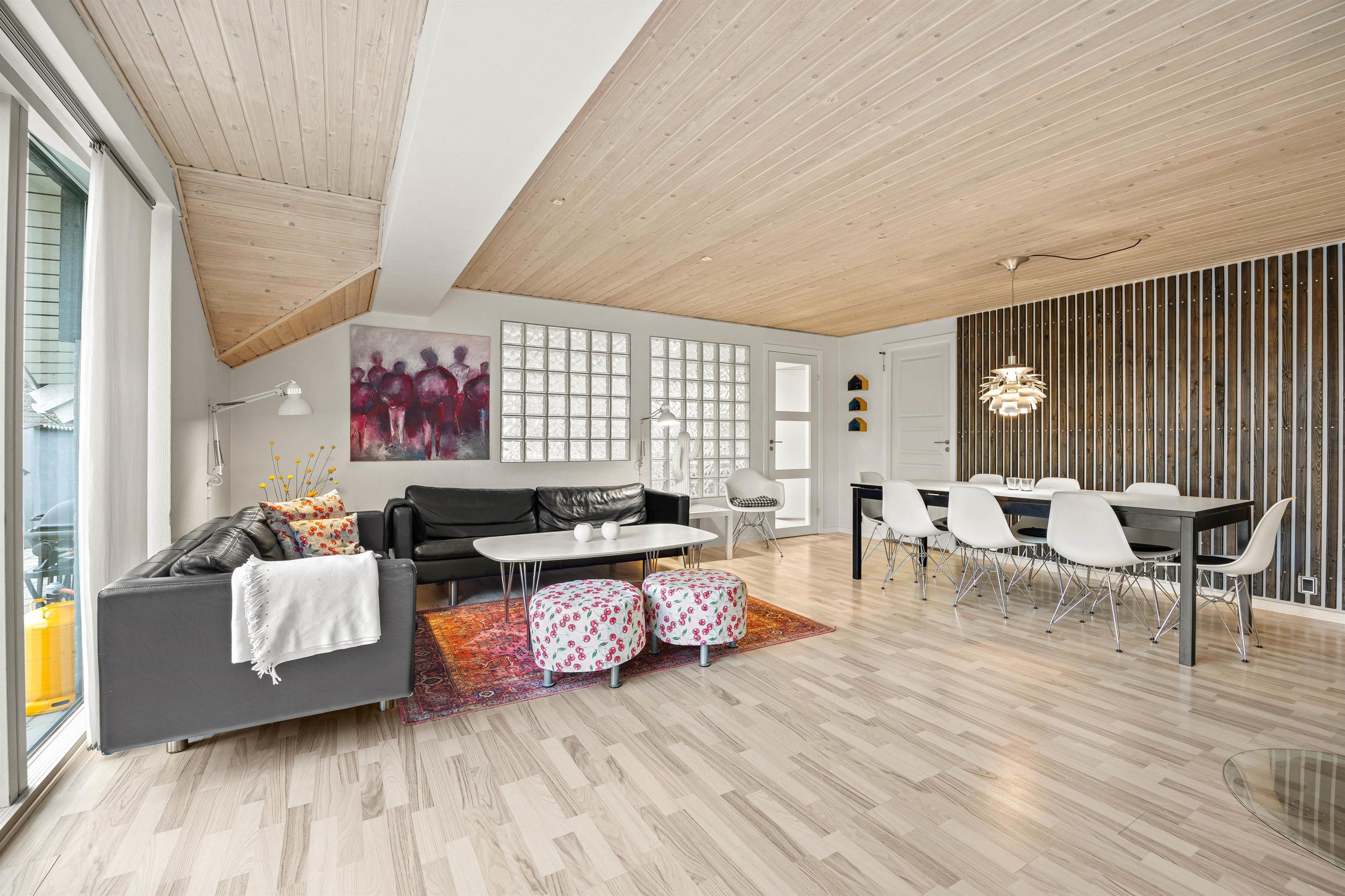 Swimmingpoolen er altid klar til fri afbenyttelse og mange timers sjov og spas venter forude. Udenfor sæsonen er saunaen og spaen ligeså et stort hit, hvis man ønsker lidt ekstra wellness. Den stilfulde indretning gør sommerhuset smagfuldt og moderne, og med den kombinerede køkken og stue indbyder også dette rum til mange timers hygge og samvær med brætspil, gode middage eller bare snak og en god kop kaffe.