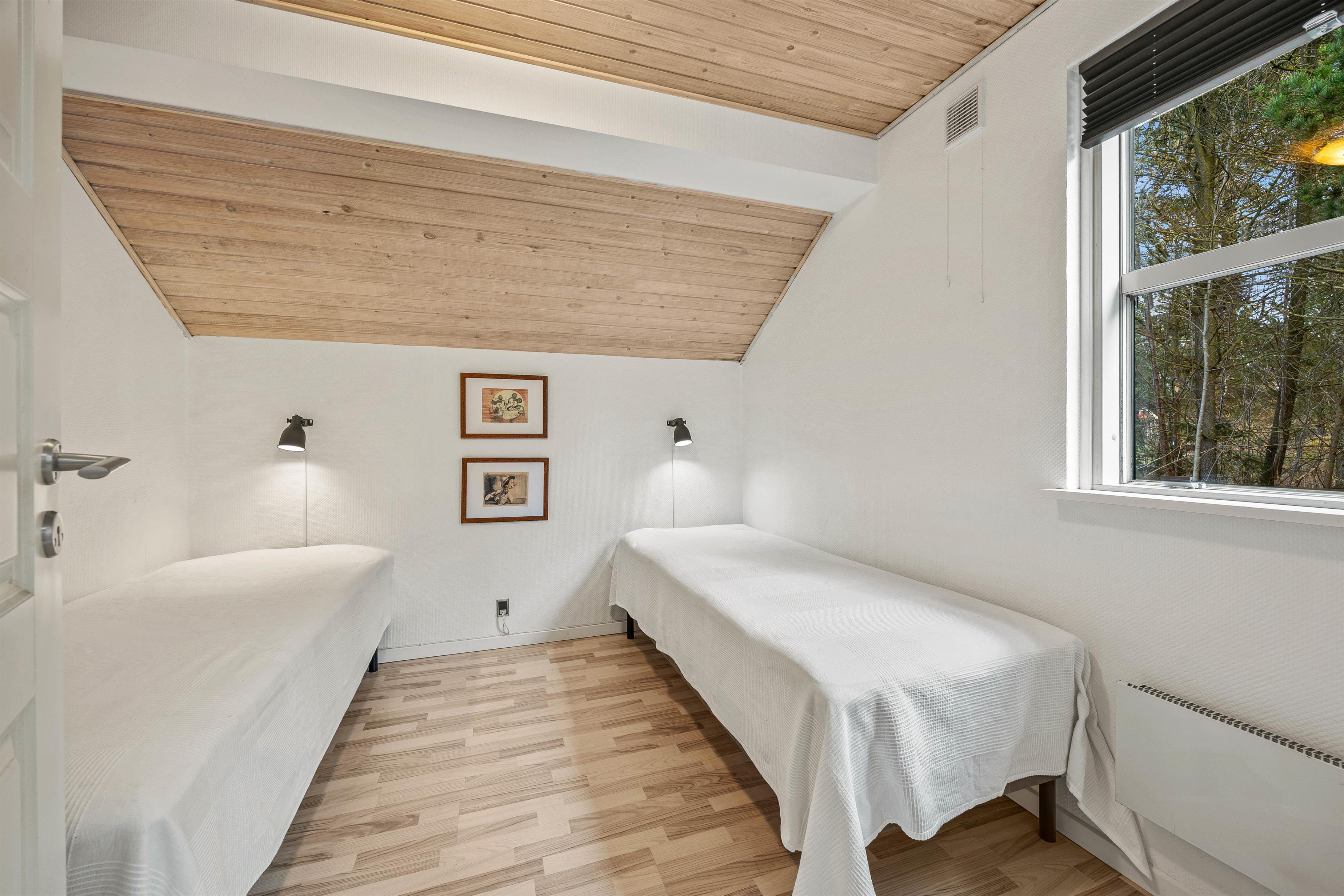 Der er i alt 4 soveværelser, hvoraf 3 er med dobbeltsenge og 1 med 2 enkeltsenge. Der er 2 badeværelser i sommerhuset, hvoraf den ene er i forlængelse med pool afdelingen.