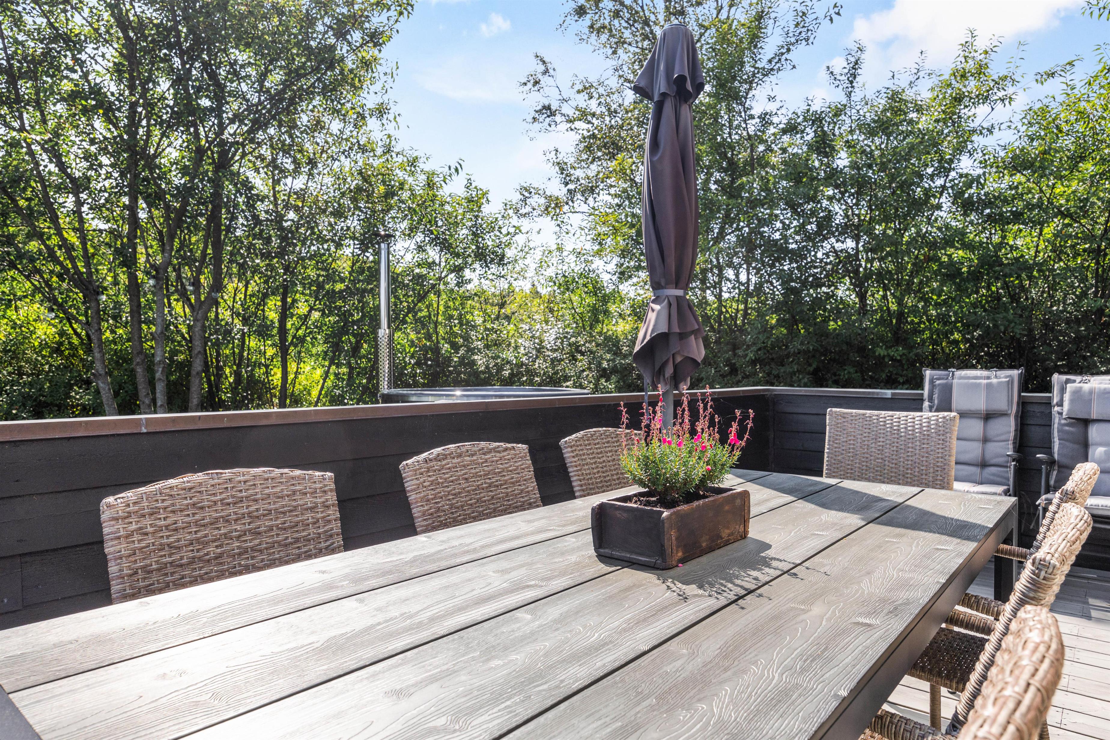 Et af højdepunkterne ved dette hyggelige sommerhus i Henneby er den lukkede terrasse, hvor I kan nyde den omkringliggende natur i fulde drag uden at gå på kompromis med privatlivet. Komfortable havemøbler indbyder til hyggelige stunder udendørs, hvad enten det er til solrige eftermiddage og hyggelige grillarrangementer med venner. Den store græsplæne giver rig mulighed for både leg og afslapning, og det skønne vildmarksbad byder på en unik oplevelse under åben himmel – såvel døgnet som året rundt.