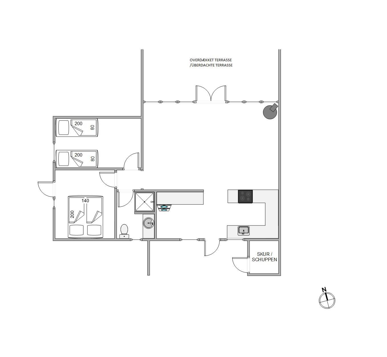 De 4 sovepladser er fordelt over 2 rummelige soveværelser. Det ene soveværelse er udstyret med en dobbeltseng, imens det andet soveværelse er udstyret med 2 enkeltsenge.