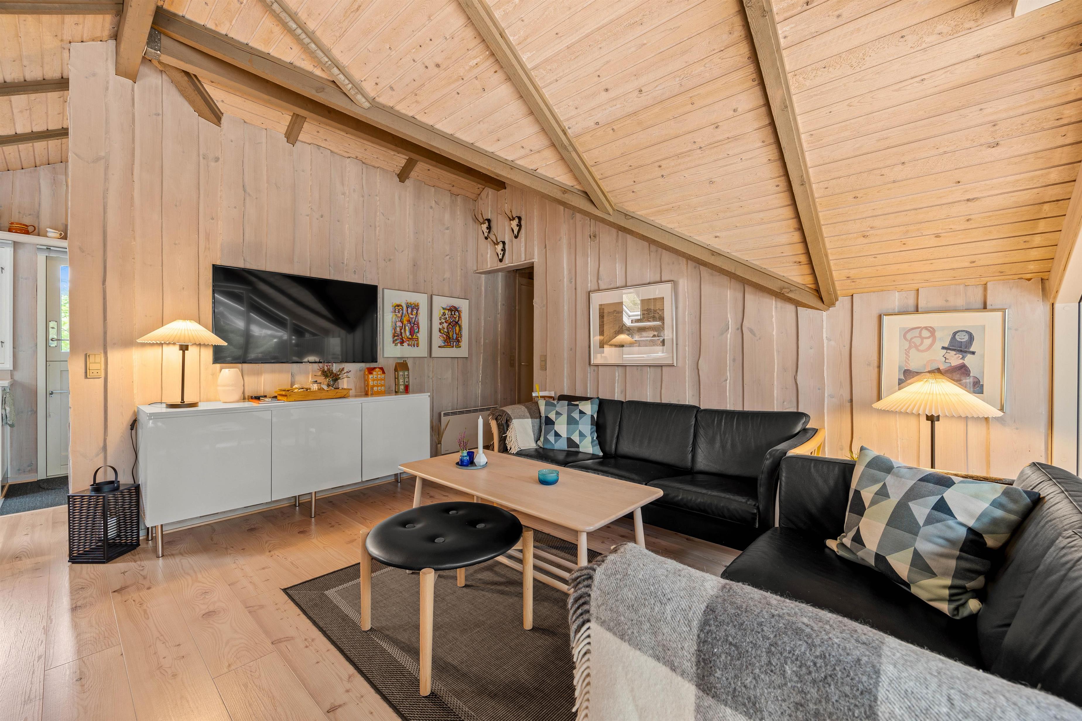Sommerhusets 57m2 er indrettet yderst godt, og rummer også et badeværelse med varme i gulvet. Det flotte lysindfald fra tagvinduet gør rummet endnu mere lyst og rummeligt.