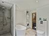 På sommerhusets badeværelse venter jer et højdepunkt: saunaen! I saunaen kan I nyde mange afslappende stunder, hvor I får slappet fuldstændig af i den dejlige varme. Her vil I helt sikkert kunne komme helt ned i gear.