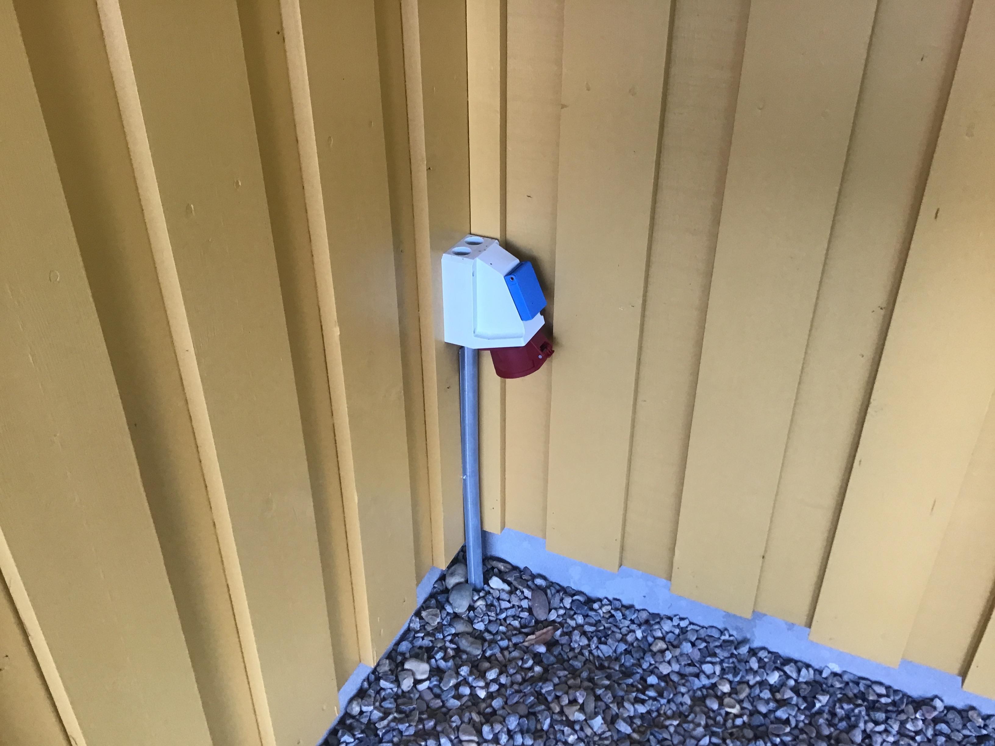 Skulle I få brug for at få ladt jeres el-bil op, kan dette gøres ved hjælp af CEE kombistik (kraftstik) - eget ladekabel medbringes.