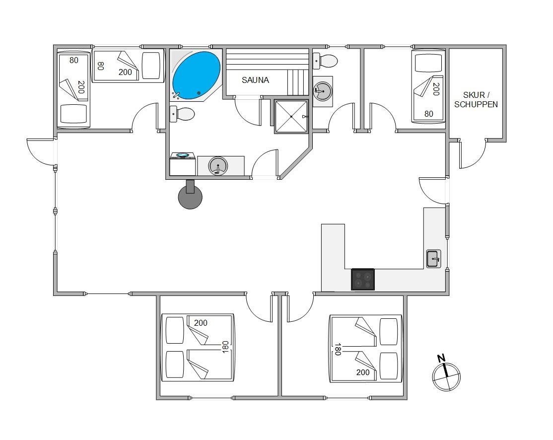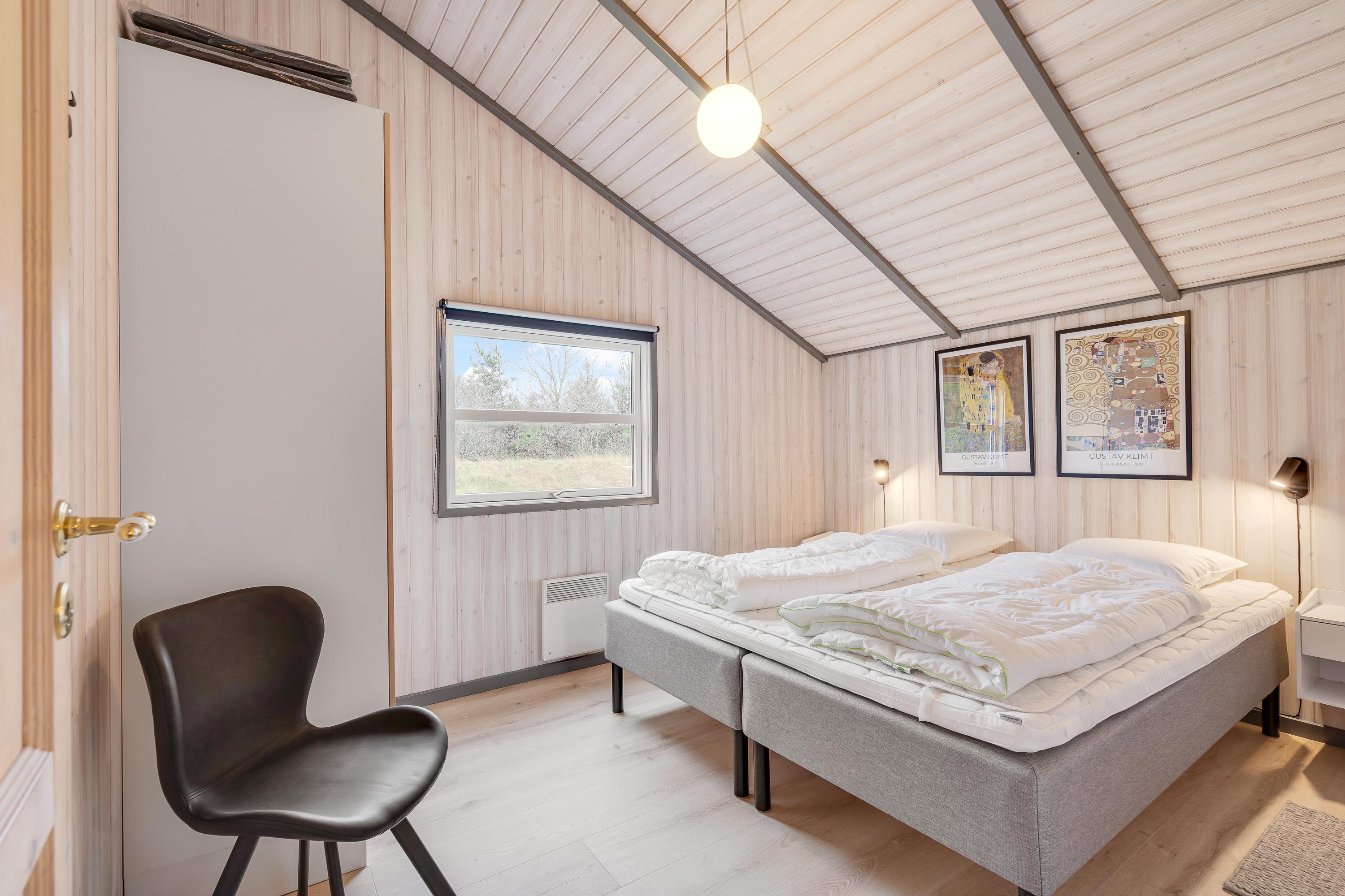 Om I ankommer med en stor familie, har bedsteforældre med eller tager på ferie med et vennepar, er der her på Gl. Strandvej 19 god plads til alle - med en god og praktisk værelsesfordeling. I har 2 soveværelser med gode dobbeltsenge, 1 værelse med enkeltseng og det sidste værelse med 2 enkeltsenge. Både værelser og stue har laminatgulv.