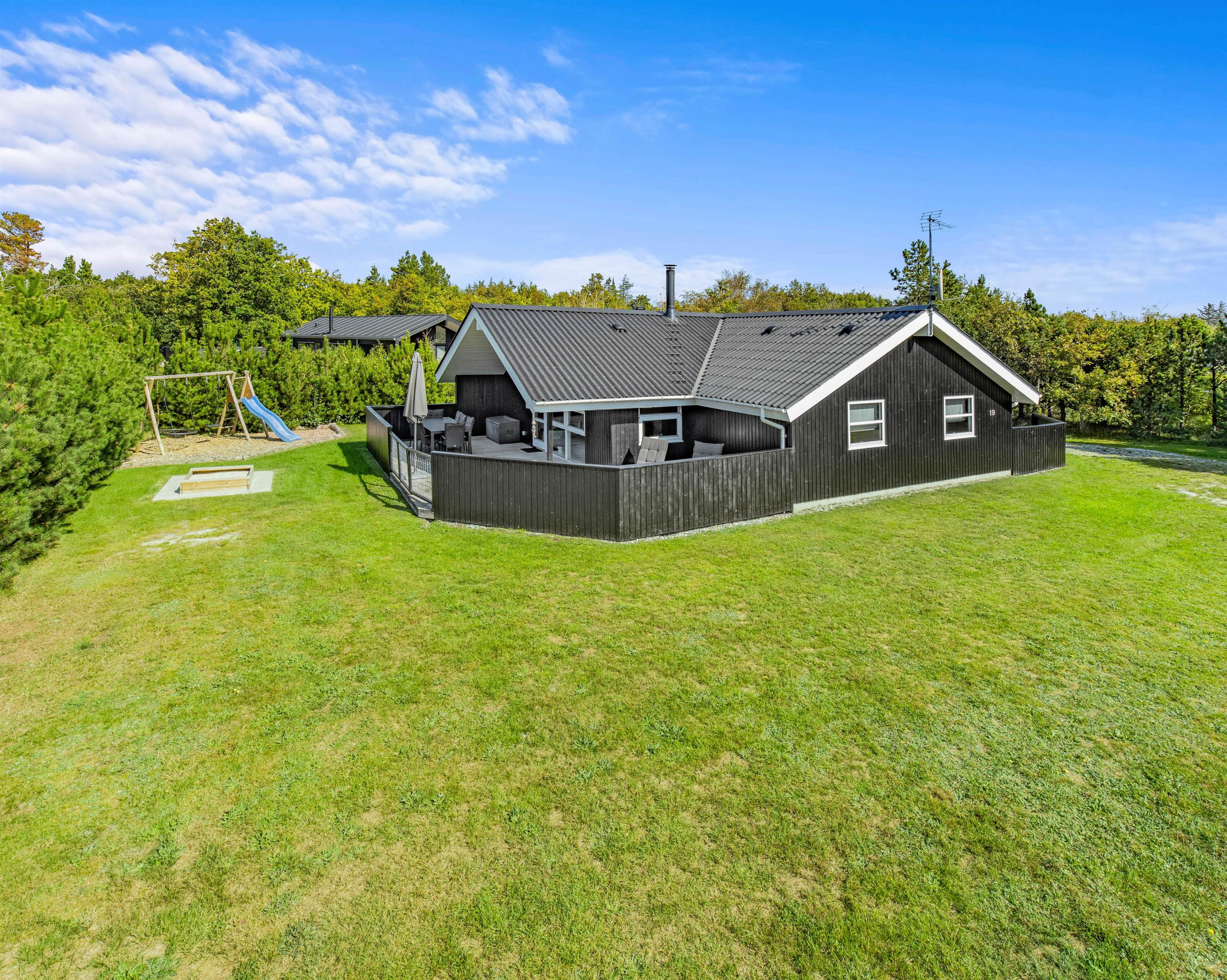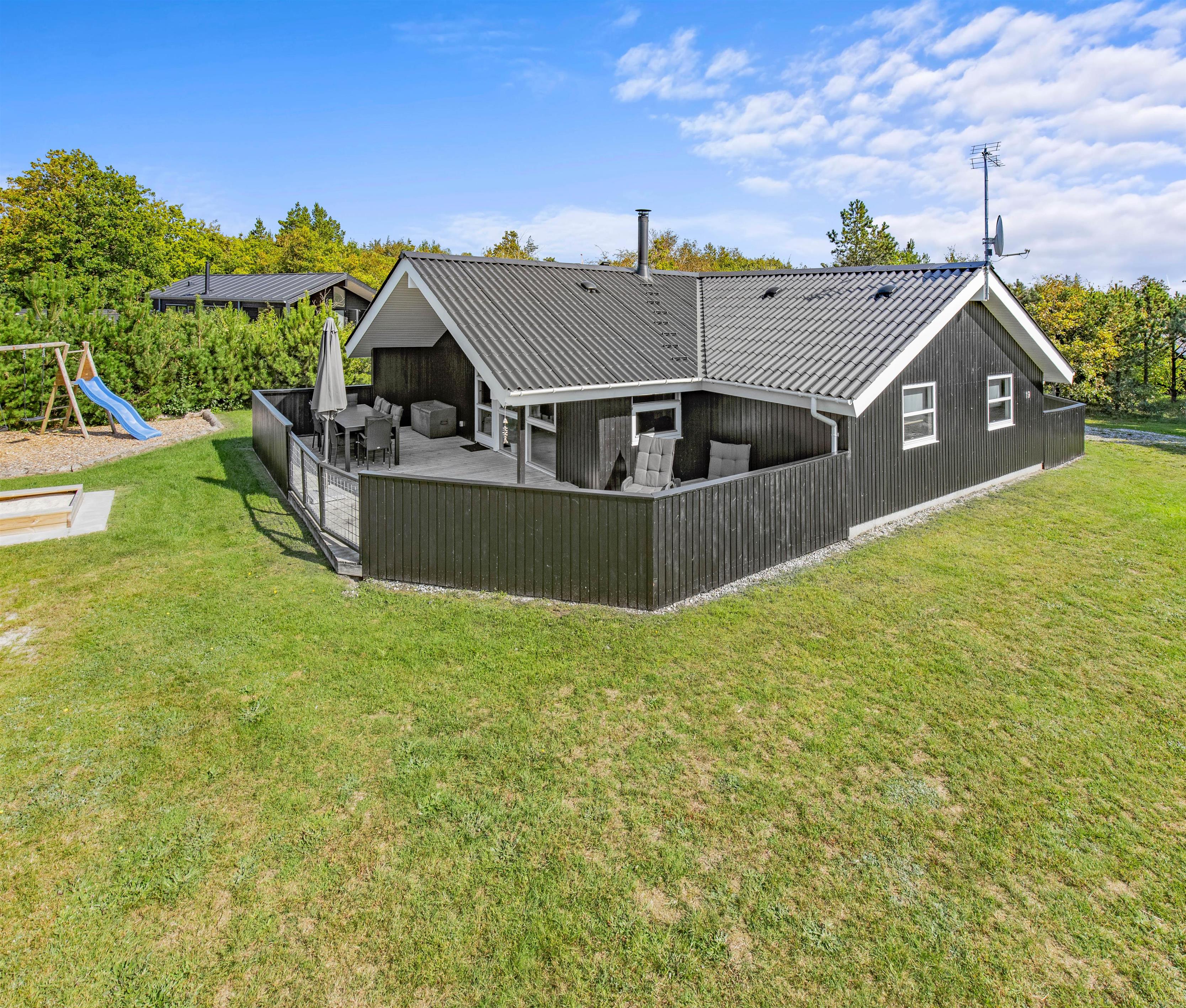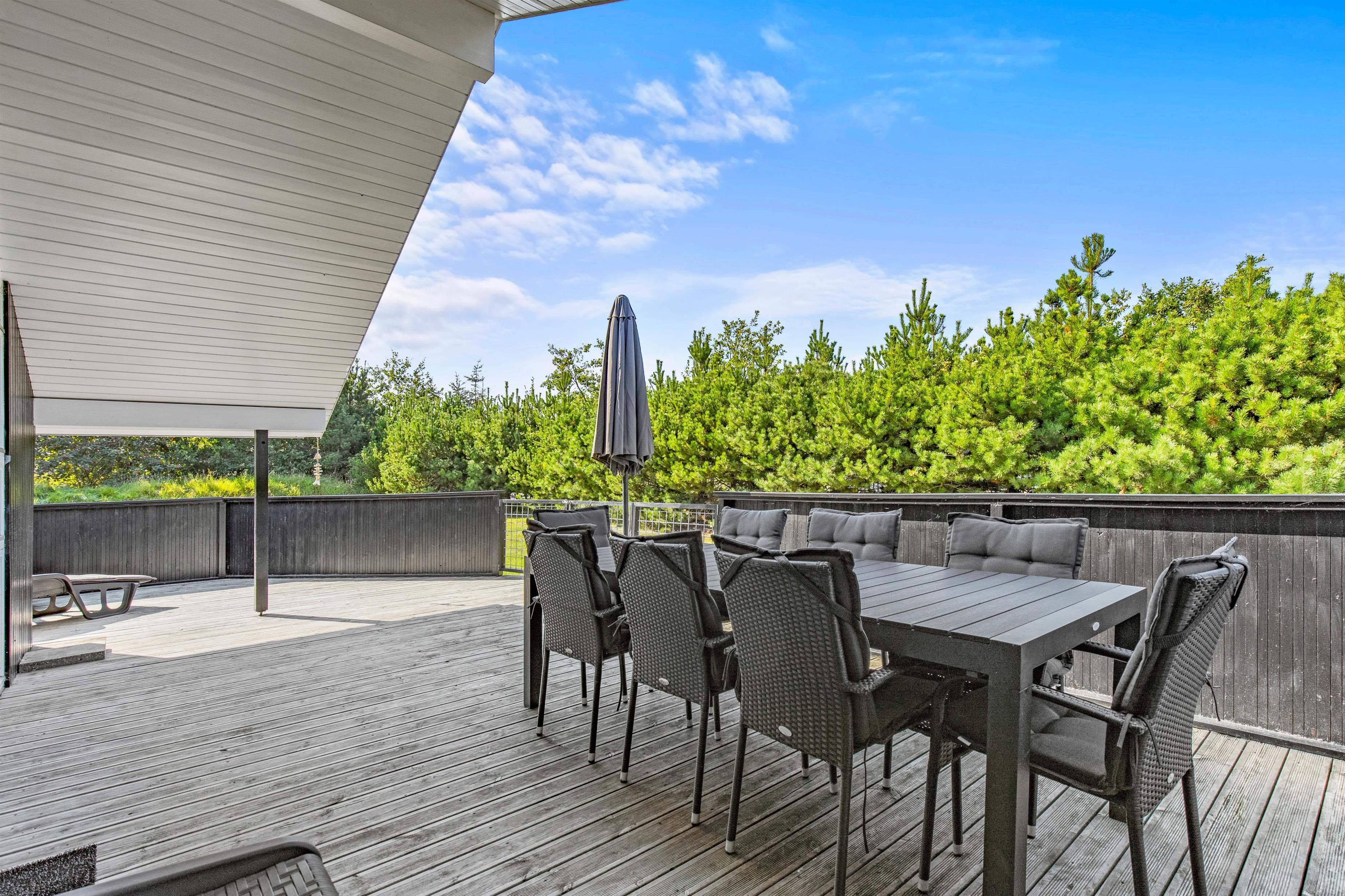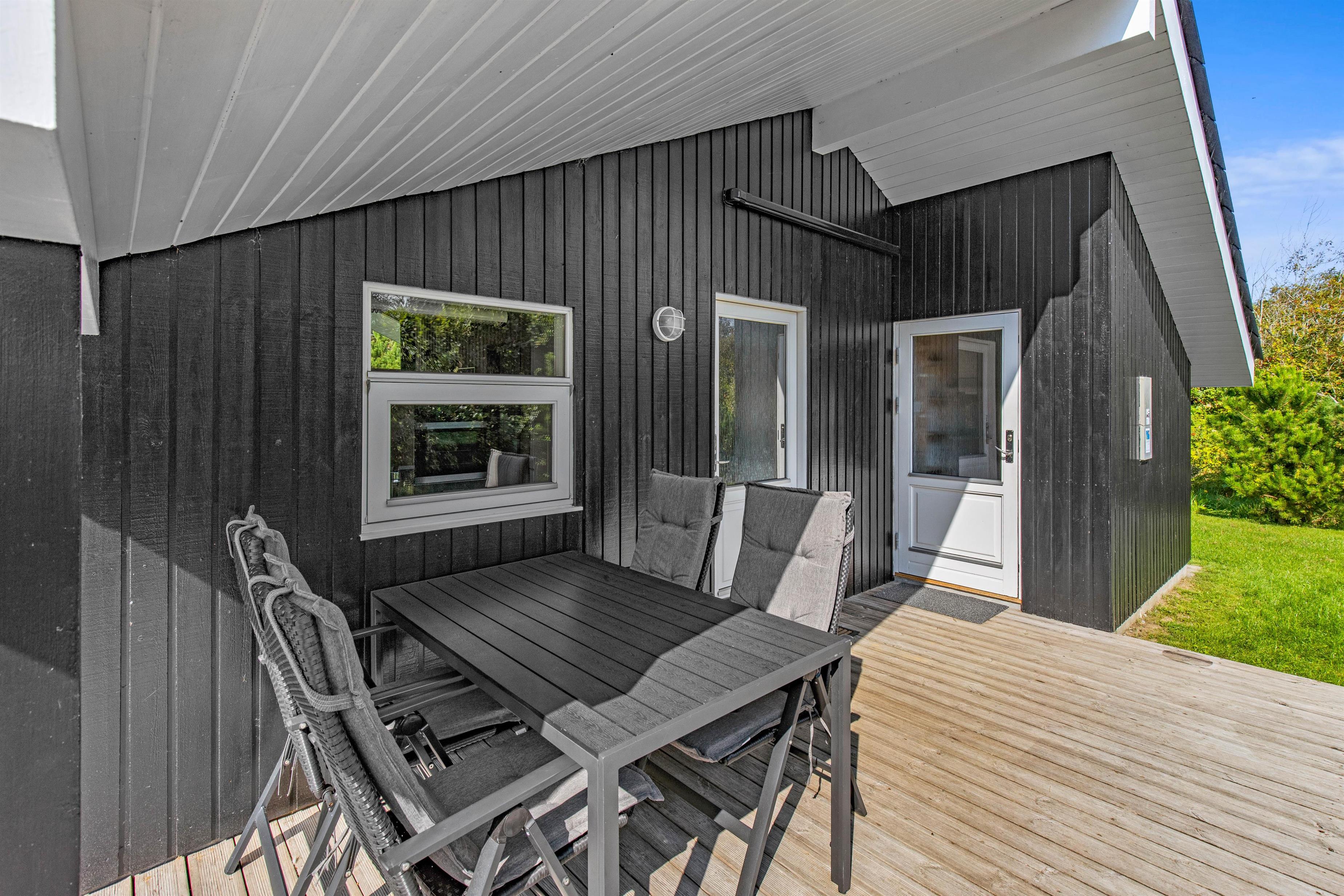 Dette fine feriehus i Henne er veludstyret og har 4 soveværelser, 1 badeværelse med spa og sauna og 1 gæstetoilet. Feriehuset blev renoveret i efteråret/vinteren 2021/2022, så I kan være sikker på, at alle detaljerne er på sin plads. Med plads til op til 7 personer og jeres hund kan I nyde jeres ferie her og ligge på solvognen på den lukkede terrasse helt uden at bekymre jer om, at hunden løber væk. Henne Strands bymidte med butikker, cafeer og restauranter ligger kun ca. 2 kilometer fra feriehuset, og med cykelstien, der starter lige uden for feriehuset, kan I nemt tage cyklen til Henne Strand. Vil I have ungerne med til vandet, er der kun ca. 10 kilometer til den familie- og børnevenlige strand ved Børsmose, hvor I kan køre bilen helt ned på stranden.