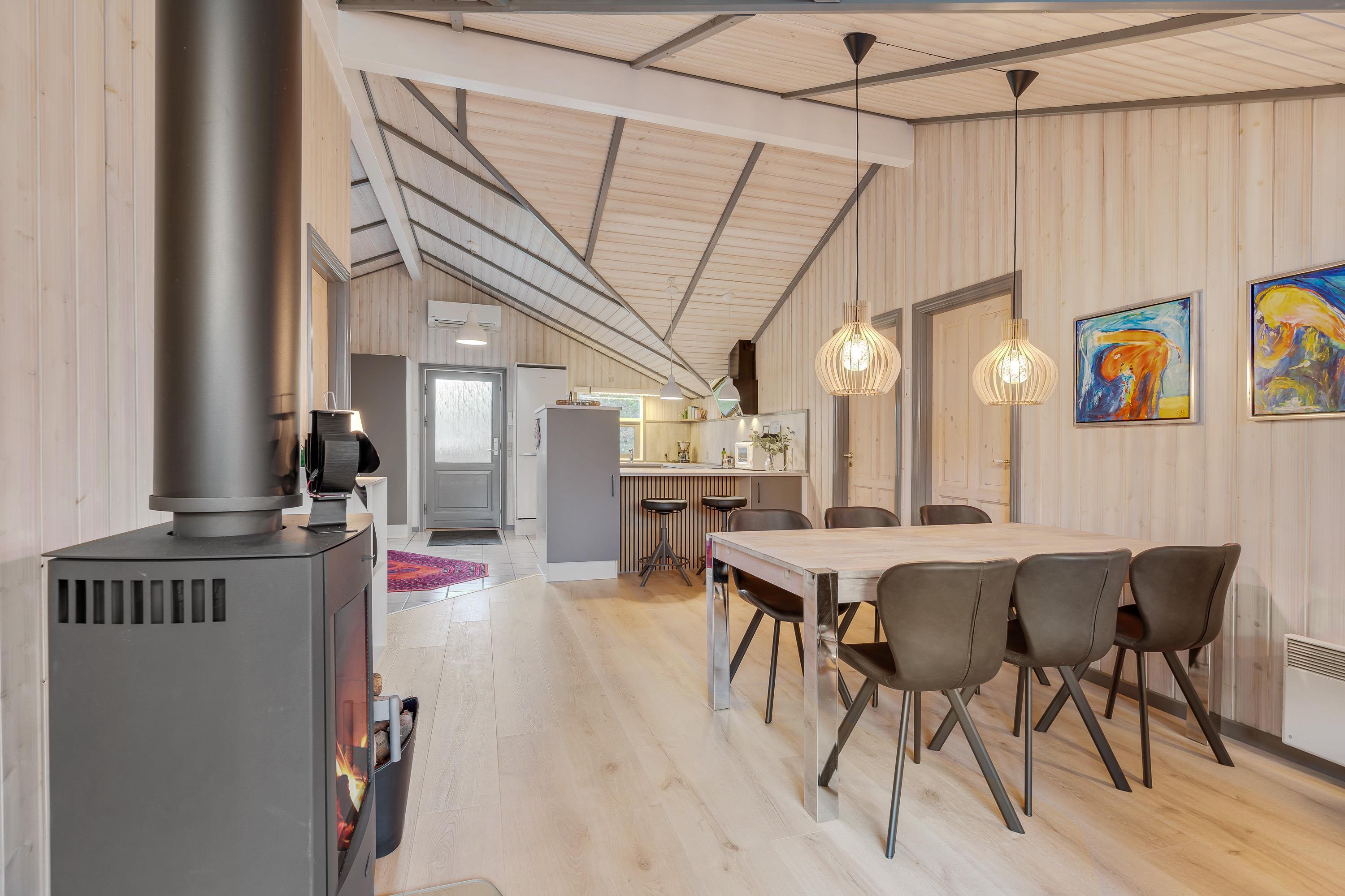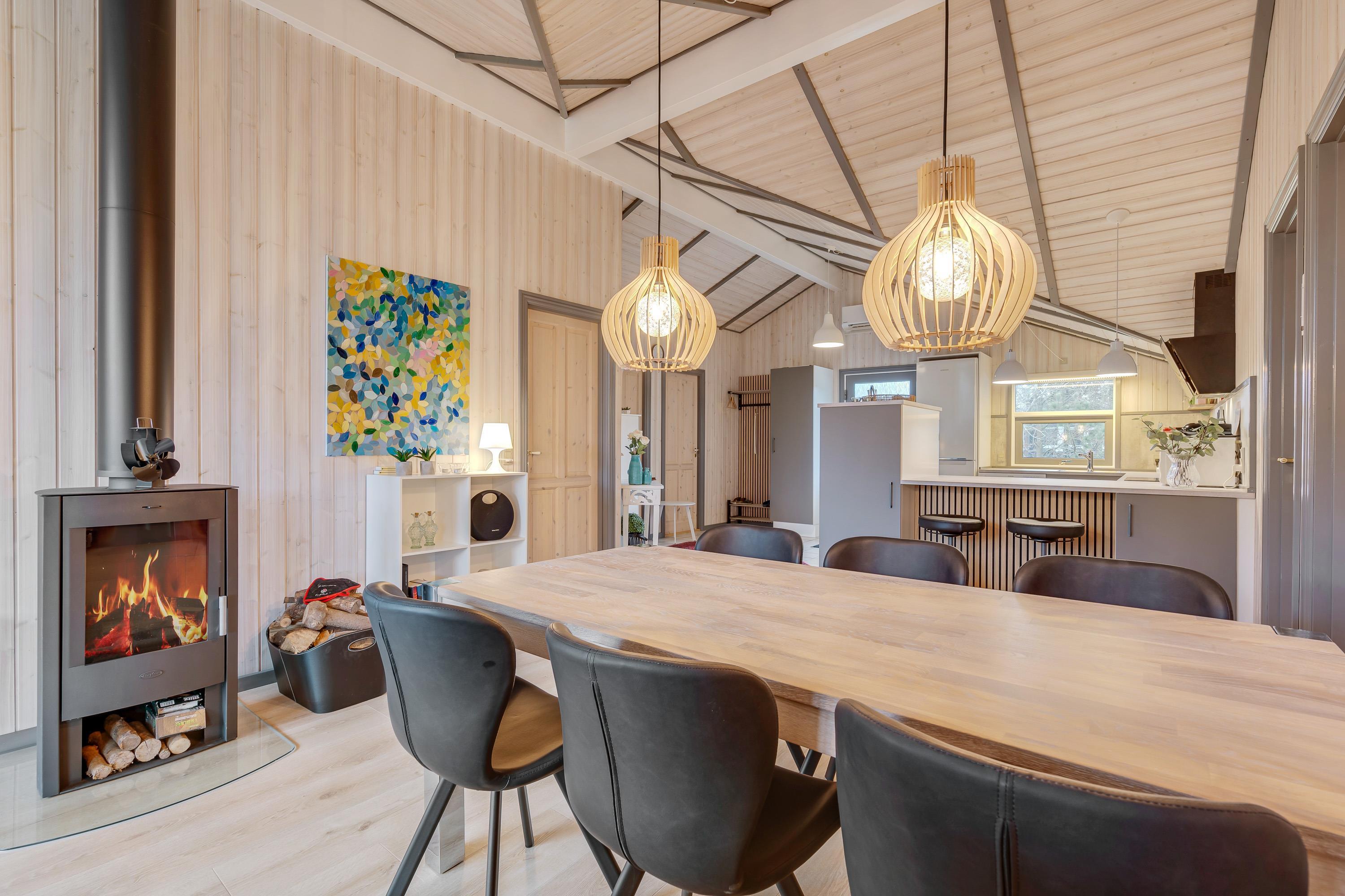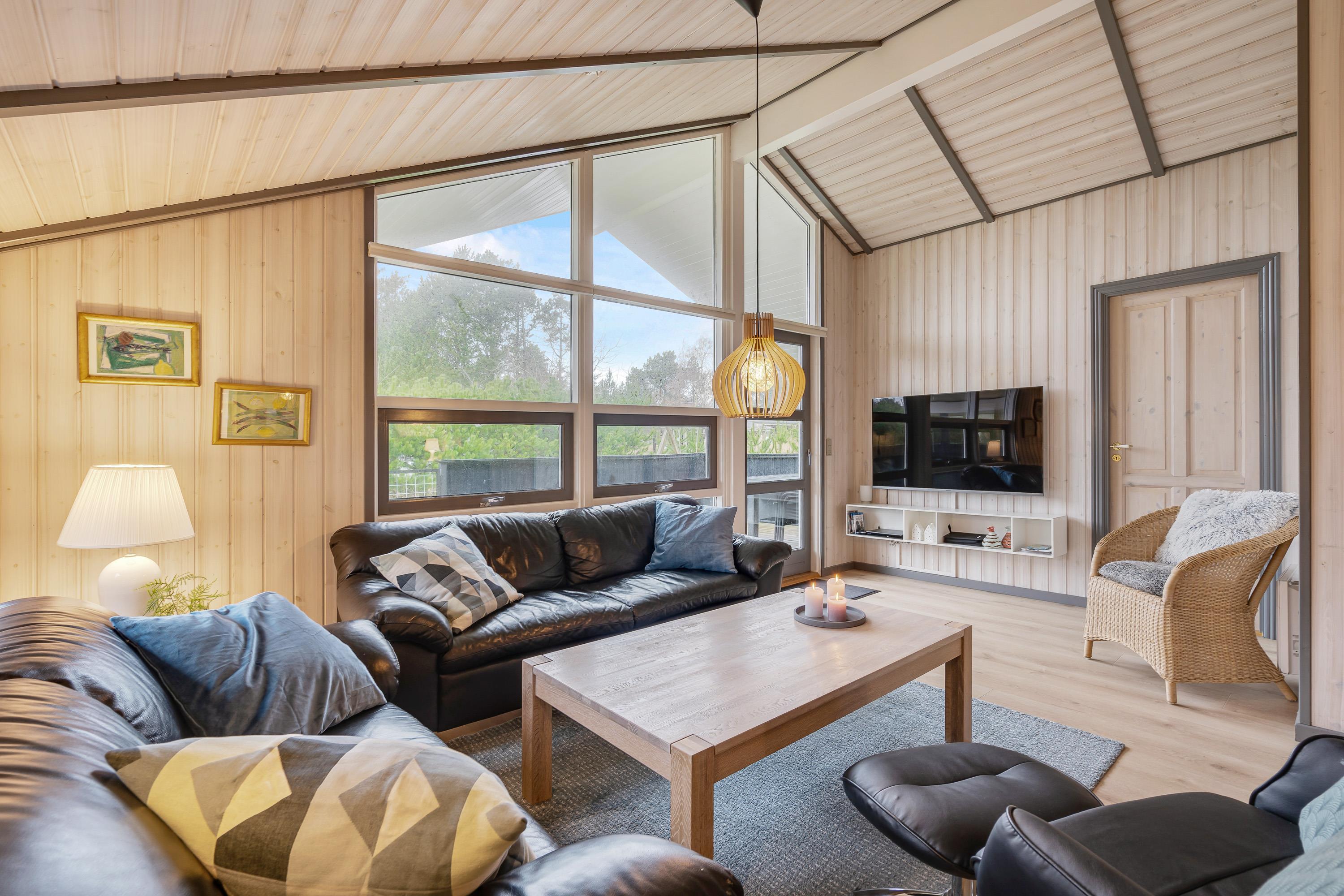 Hyg jer ved brændeovnsilden i opholdsstuens store sofahjørne med en bog eller en god film – eller få jeres bedste feriefotos uploadet til Facebook – I har gratis internetforbindelse i feriehuset.