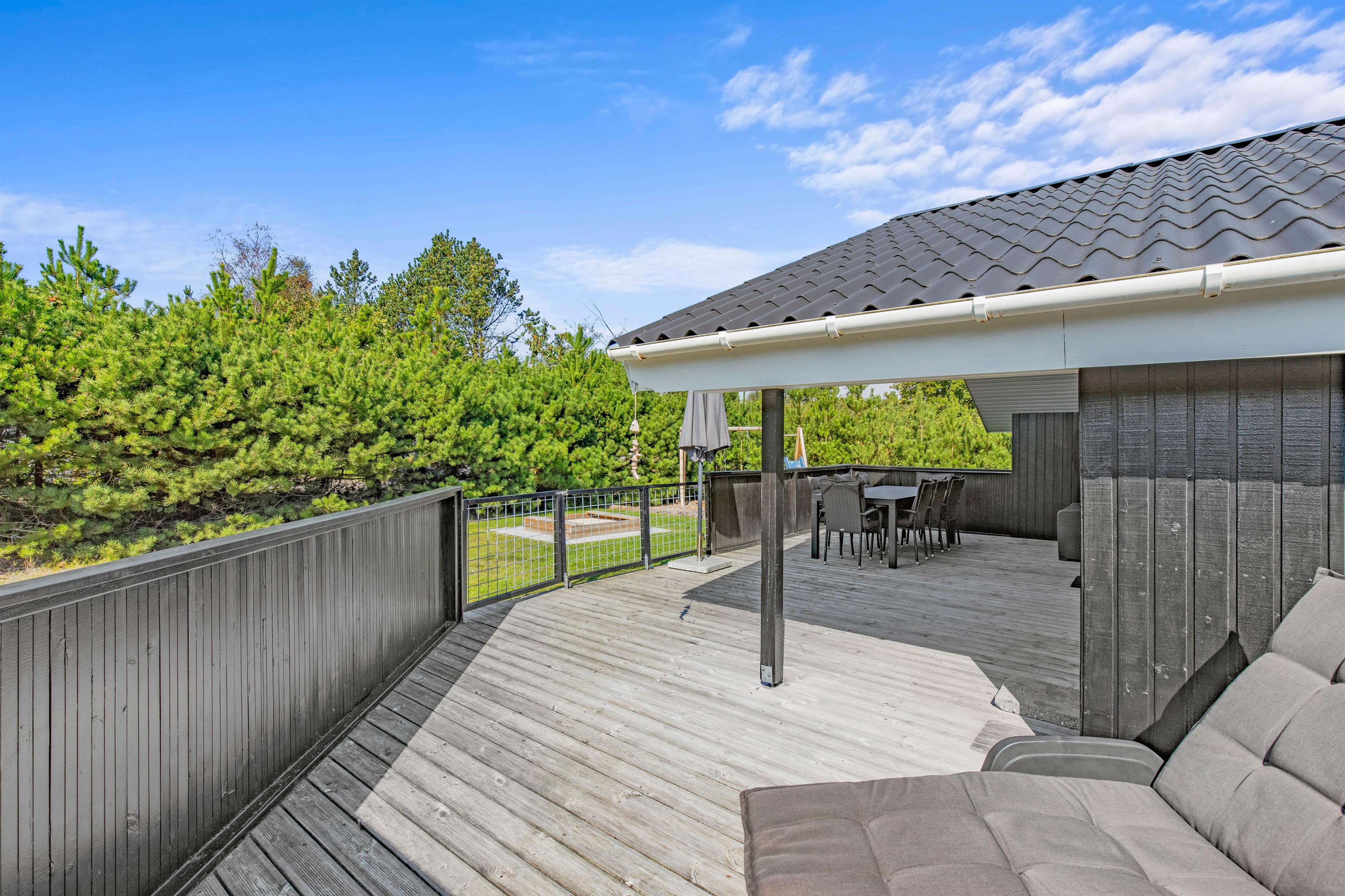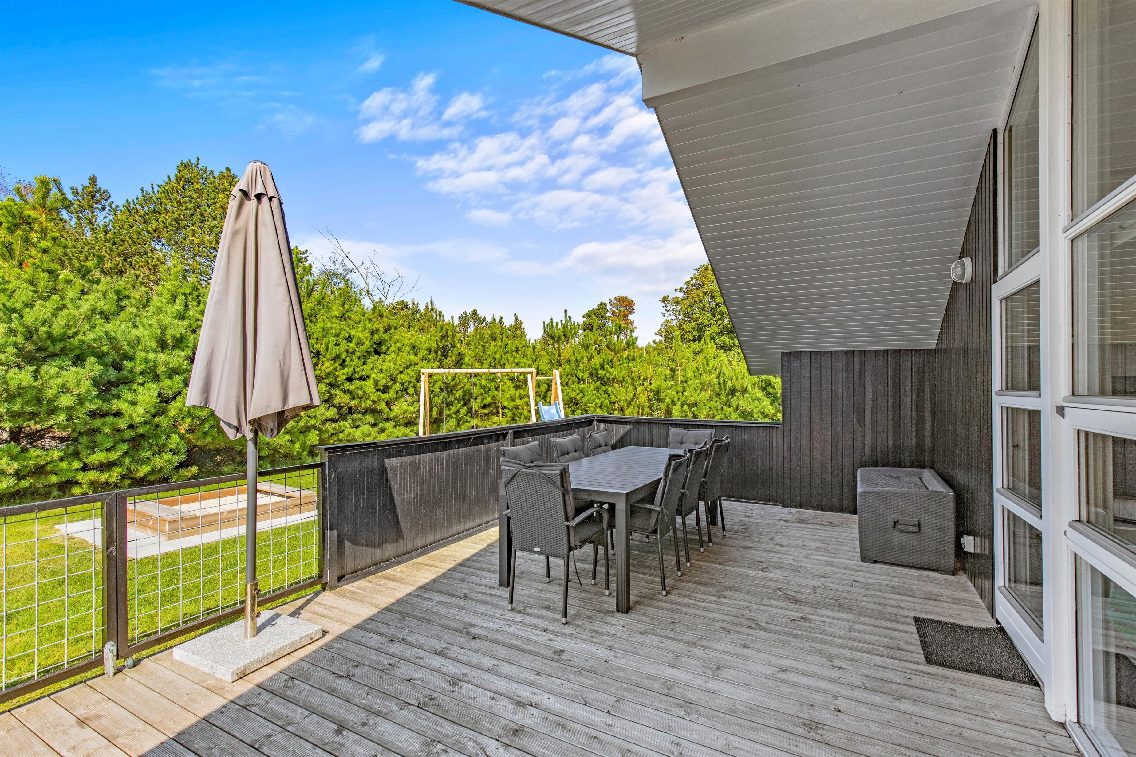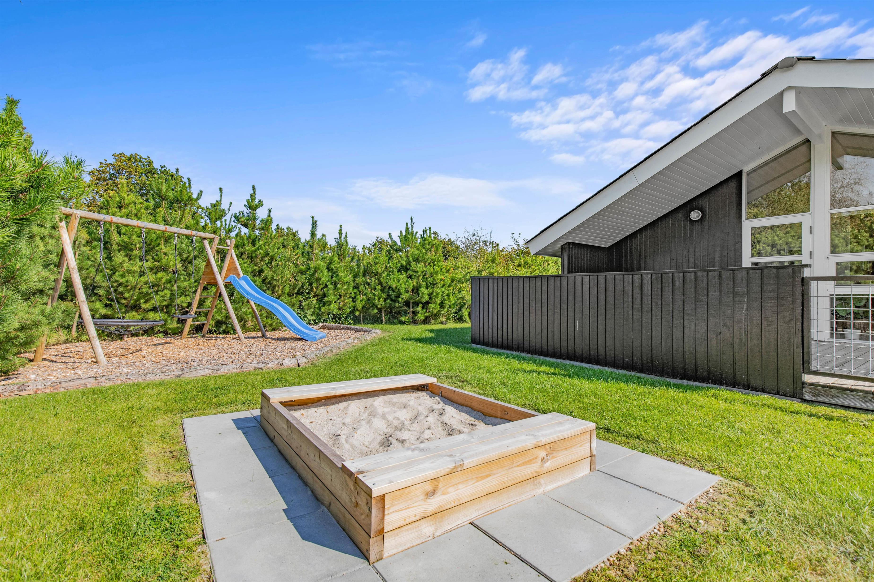 På terrassen kan alle finde en skøn plads, også hunden. Om der skal grilles under udhænget eller slappes af på liggestolen i solen med en bog – her er mulighed for det hele. Desuden er den lukkede terrasse perfekt til hunden, som kan gå frit rundt på terrassen uden opsyn. Og er der noget hunde elsker, så er det masser af frisk luft. Derudover indbyder den store grund med sandkassen og gyngestativet til leg og spil i haven for de mindste.