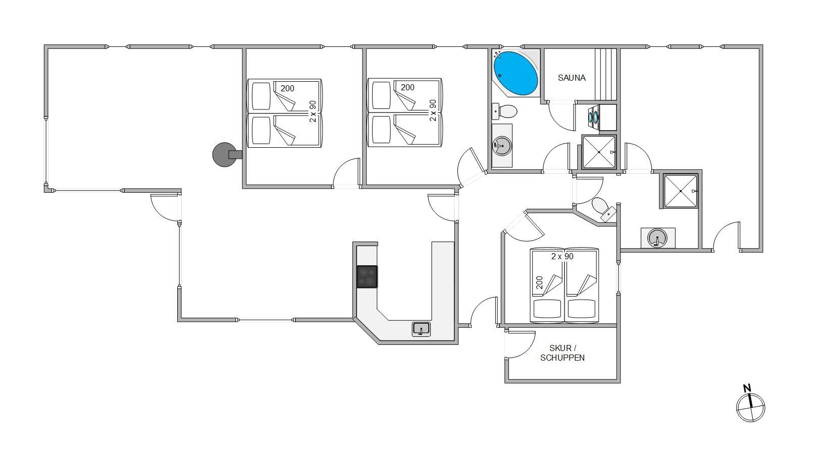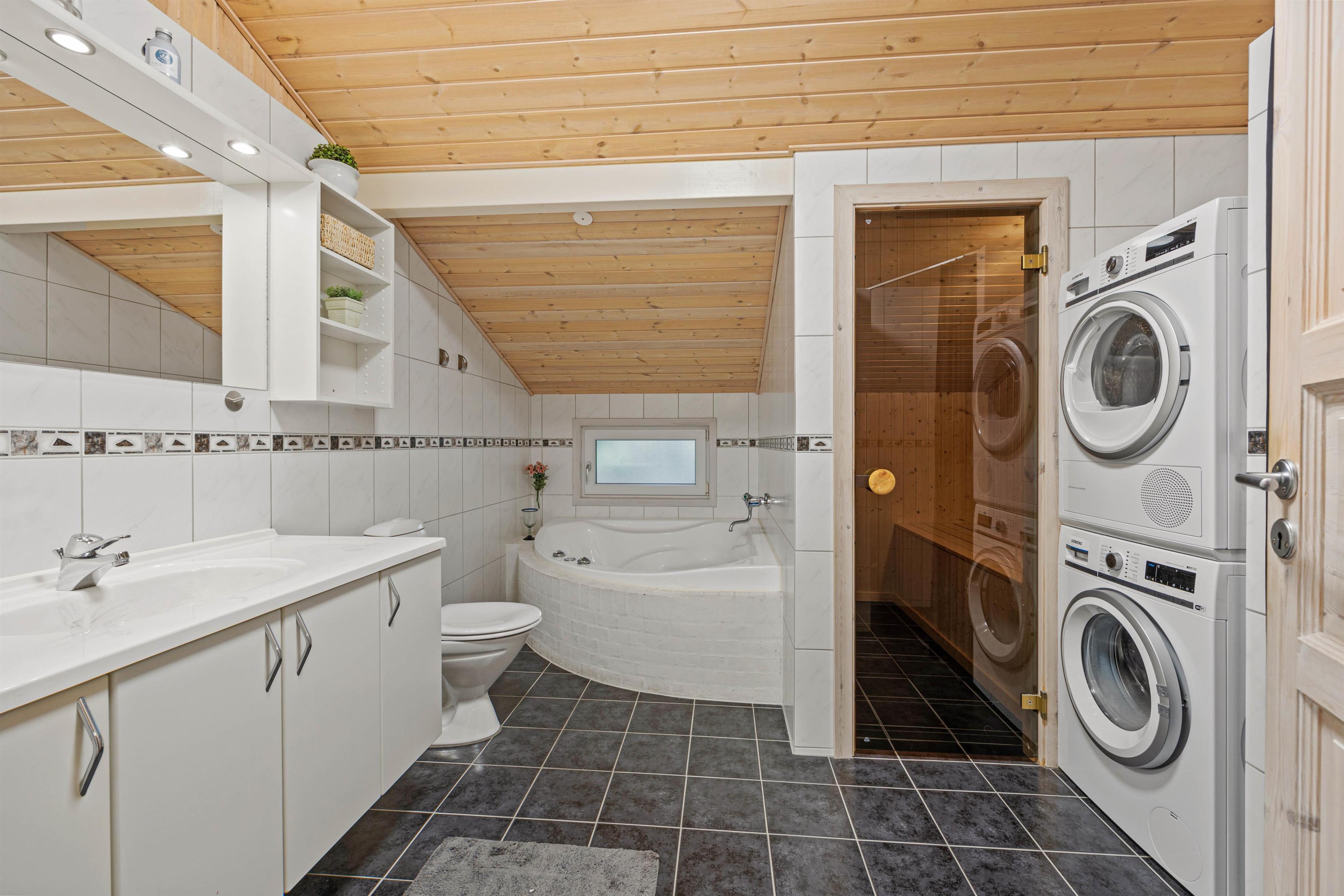 Er I til afslapning og wellness? Så kan I søge ud på feriehusets ene badeværelse, hvor der står både en spa og en sauna klar til at forkæle jer efter en lang gåtur ved stranden eller i den tætliggende Blåbjergplantage.