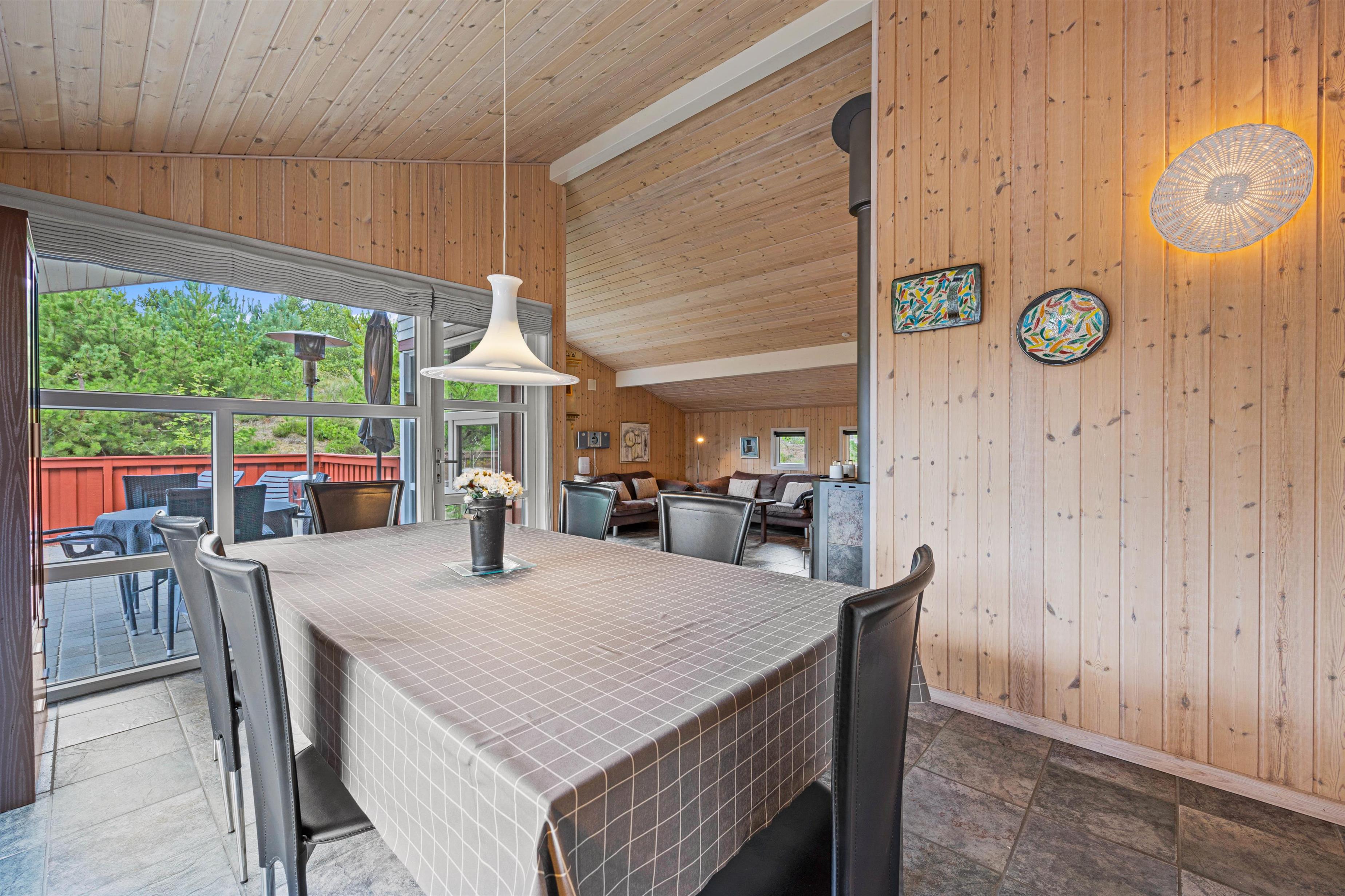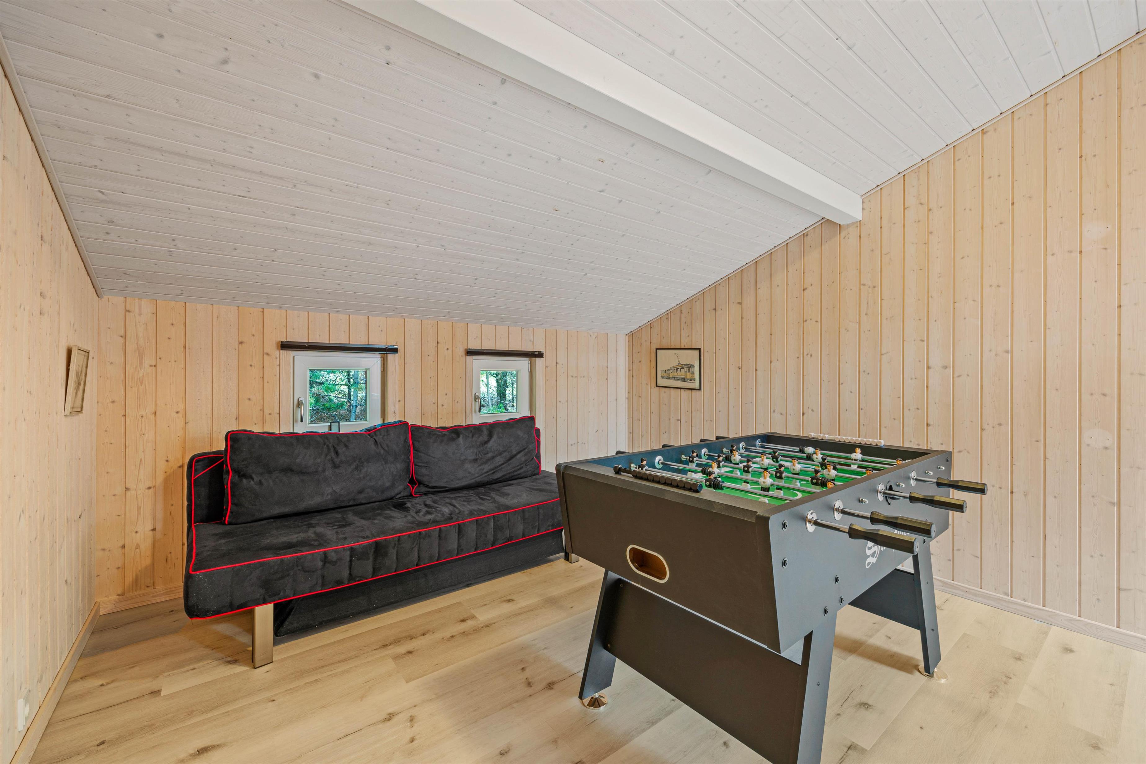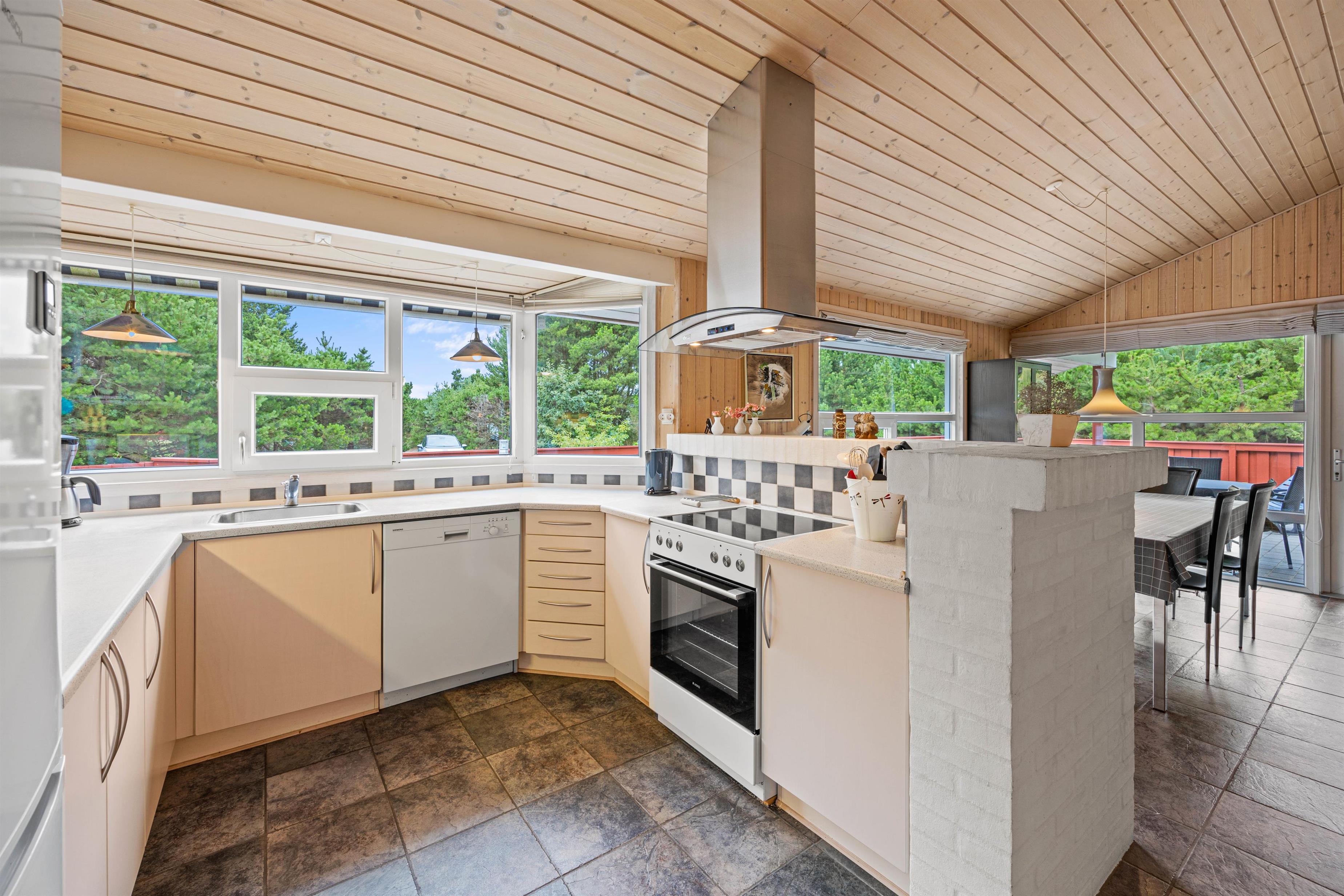 I feriehuset på Rævestien 13 bliver I mødt af en indbydende indretning, hvor I vil føle jer godt tilpas, så snart I træder indenfor. Alrummet, der forener køkken, stue og spiseplads, udgør feriehusets hjerte, og vil uden tvivl også blive jeres store samlingspunkt på ferien. Her har I mulighed for at være sammen om at se film, spille spil og lave mad.