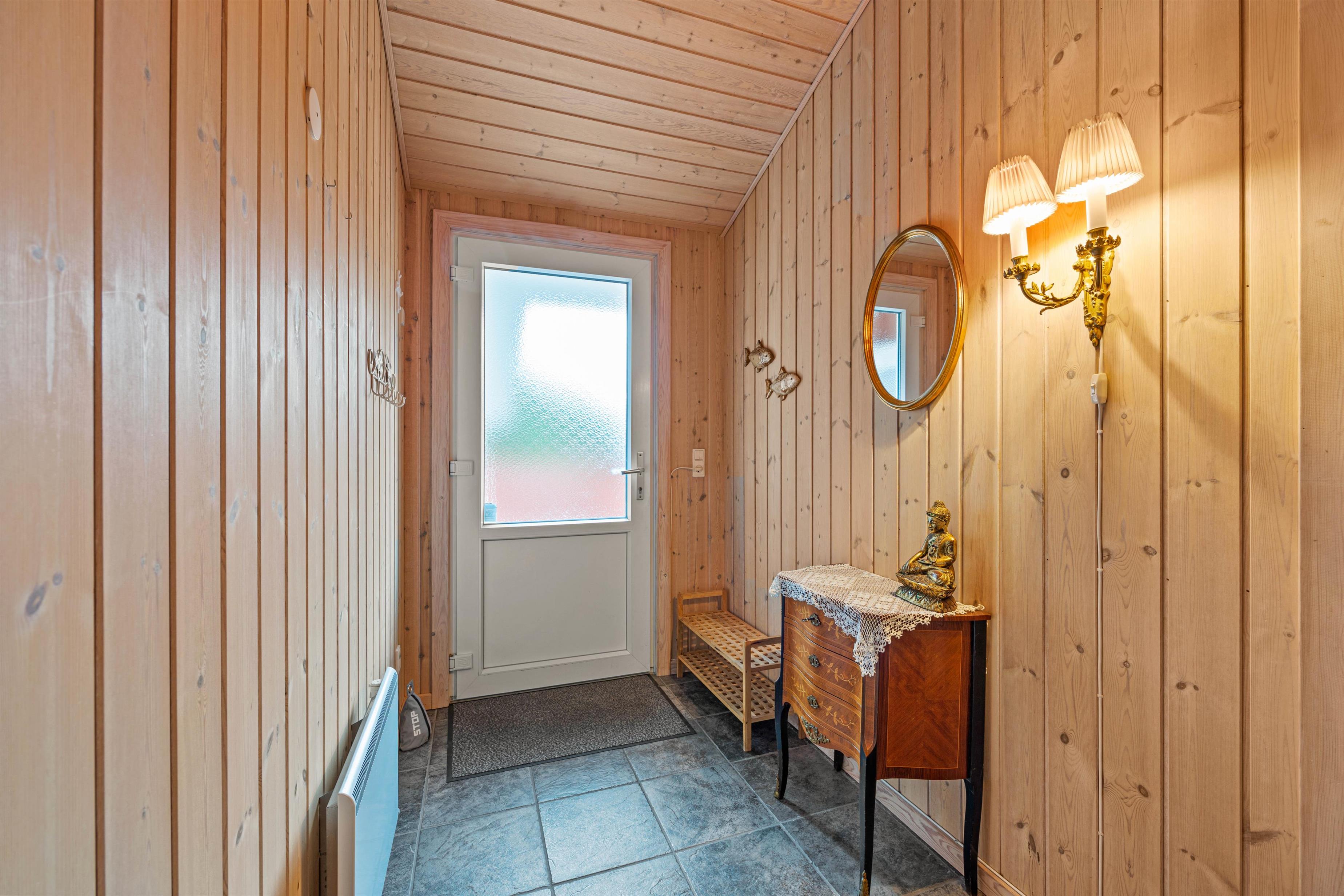 I alrummet fuldender brændeovnen feriestemningen med sin knitrende flammer, mens den samtidig spreder den dejlig varme i rummet. Derudover sørger gulvvarme i alle rum samt den energivenlige varmepumpe for et godt indeklima i hele huset.