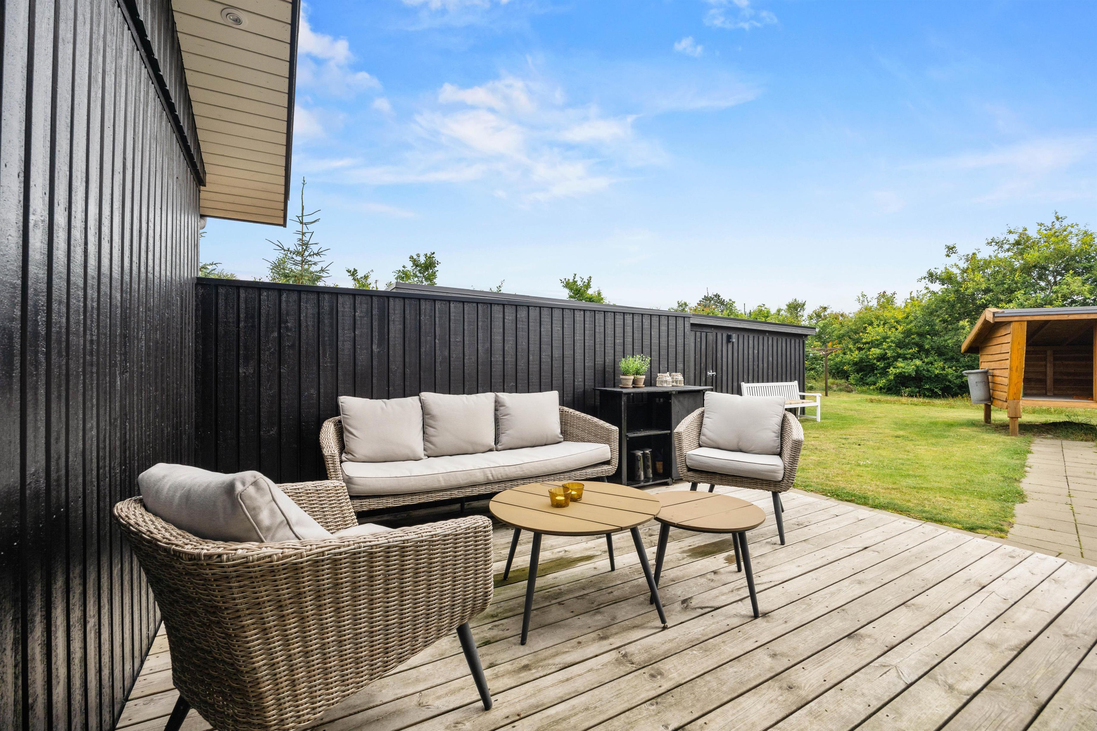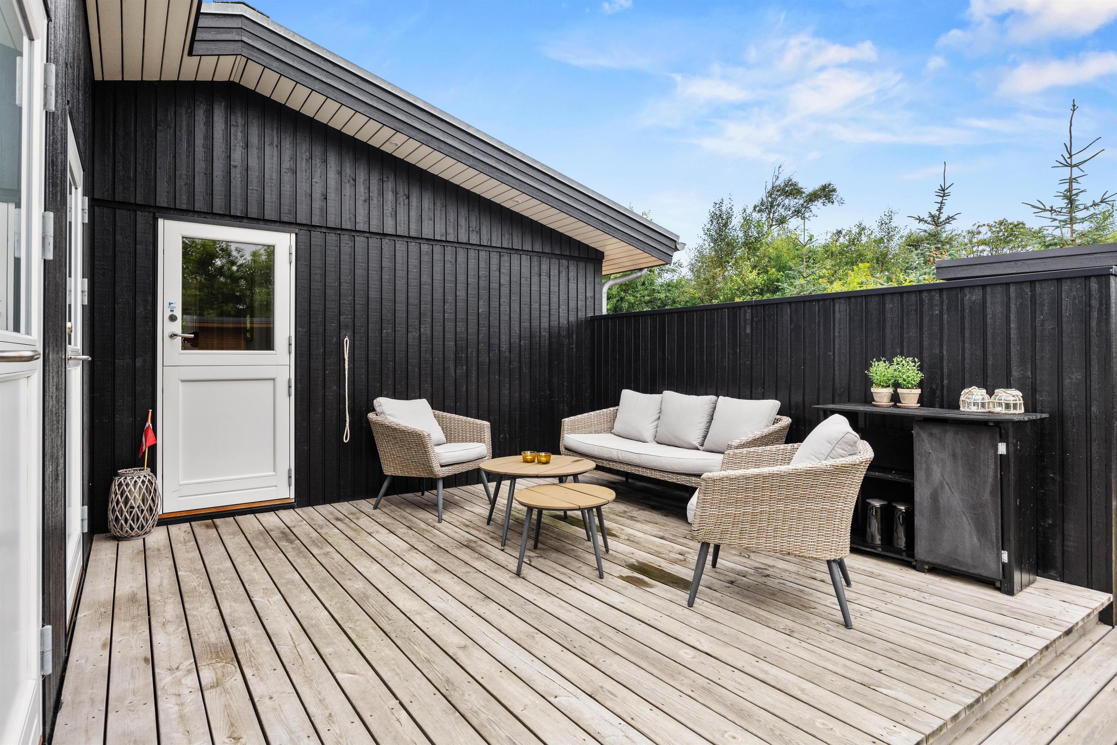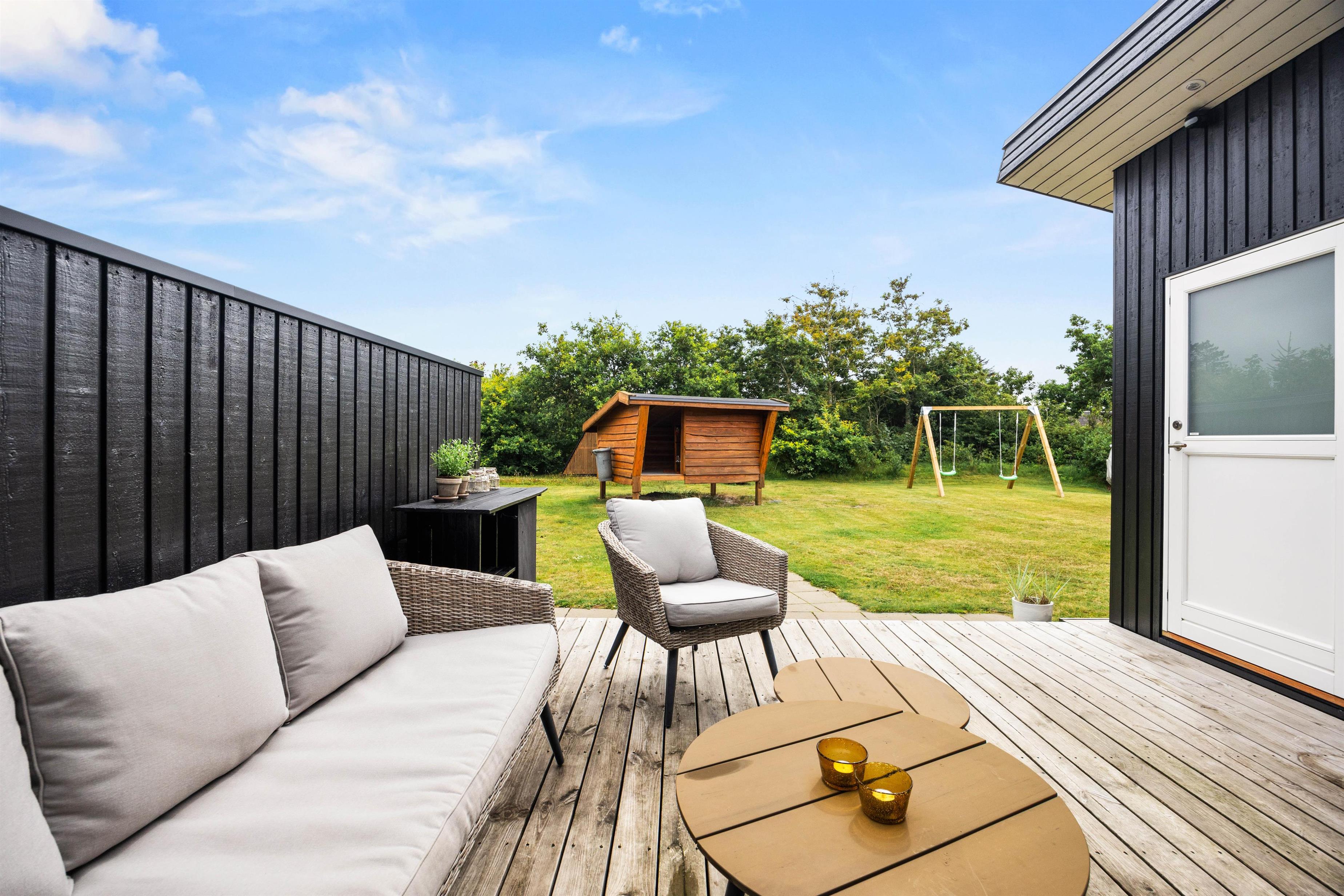 Start din feriedag med at nyde en kop kaffe i morgensolen på den skønne terrasse med loungemøblerne. Du kan roligt liste derud i nattøj, da terrassen ligger privat og ugeneret på sommerhusets østside. Når resten af flokken er vågnet, og morgenbrødet er hentet fra købmanden ved campingpladsen eller bageren i Henne Strand, kan dagen rigtigt begynde.