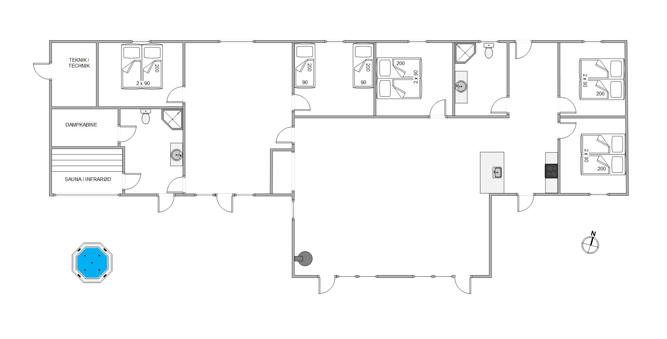 Sommerhuset, som er bygget i 2026, byder plads til på til 10 personer, og er dermed et ideelt 5+-stjernet ferieparadis til familieferier eller en udflugt med vennerne. Sommerhusets 2 badeværelser og 5 soveværelser er alle indrettet med gæsternes komfort i tankerne. Dette sommerhus er desuden allergivenligt, hvilket gør det til et godt valg for alle, som ønsker en bekymringsfri ferie.