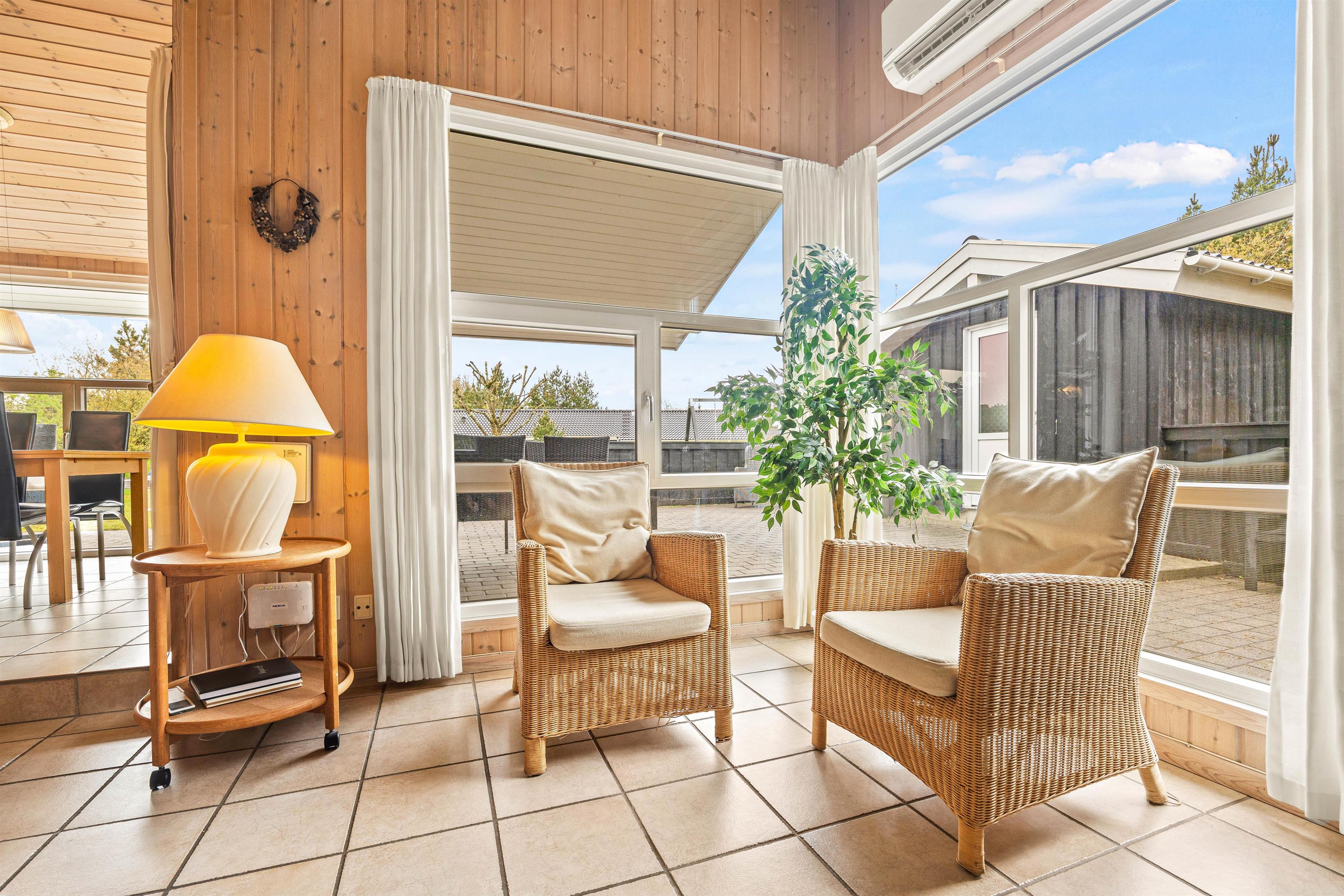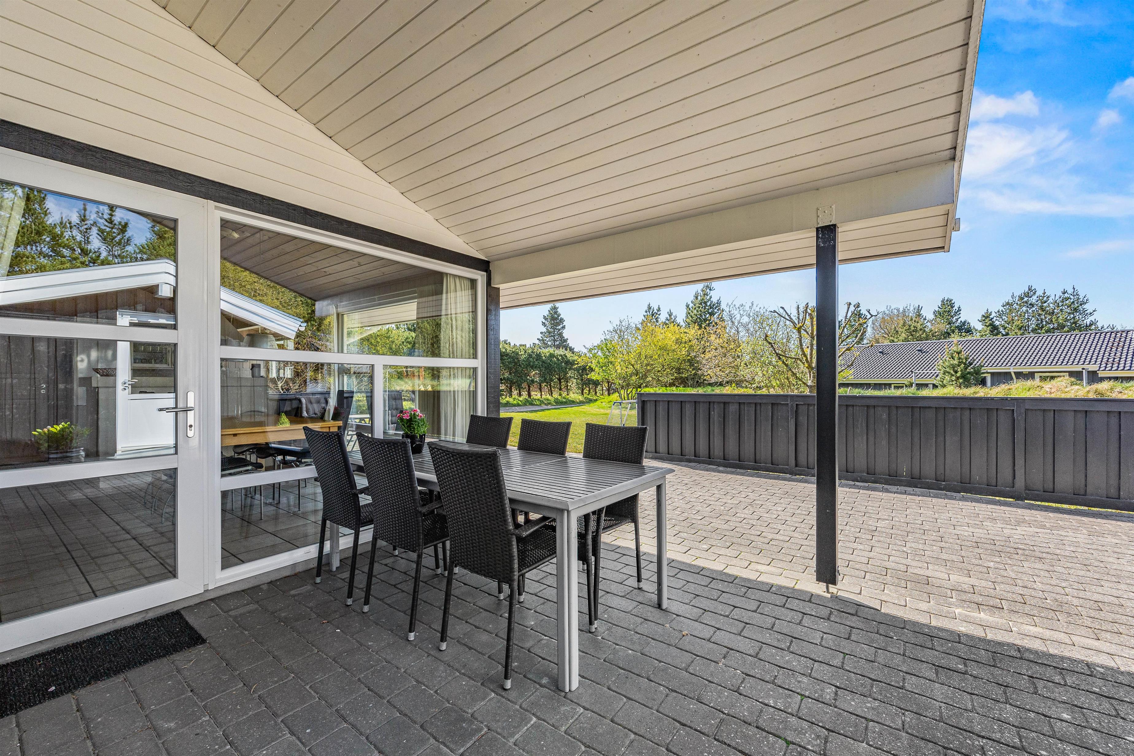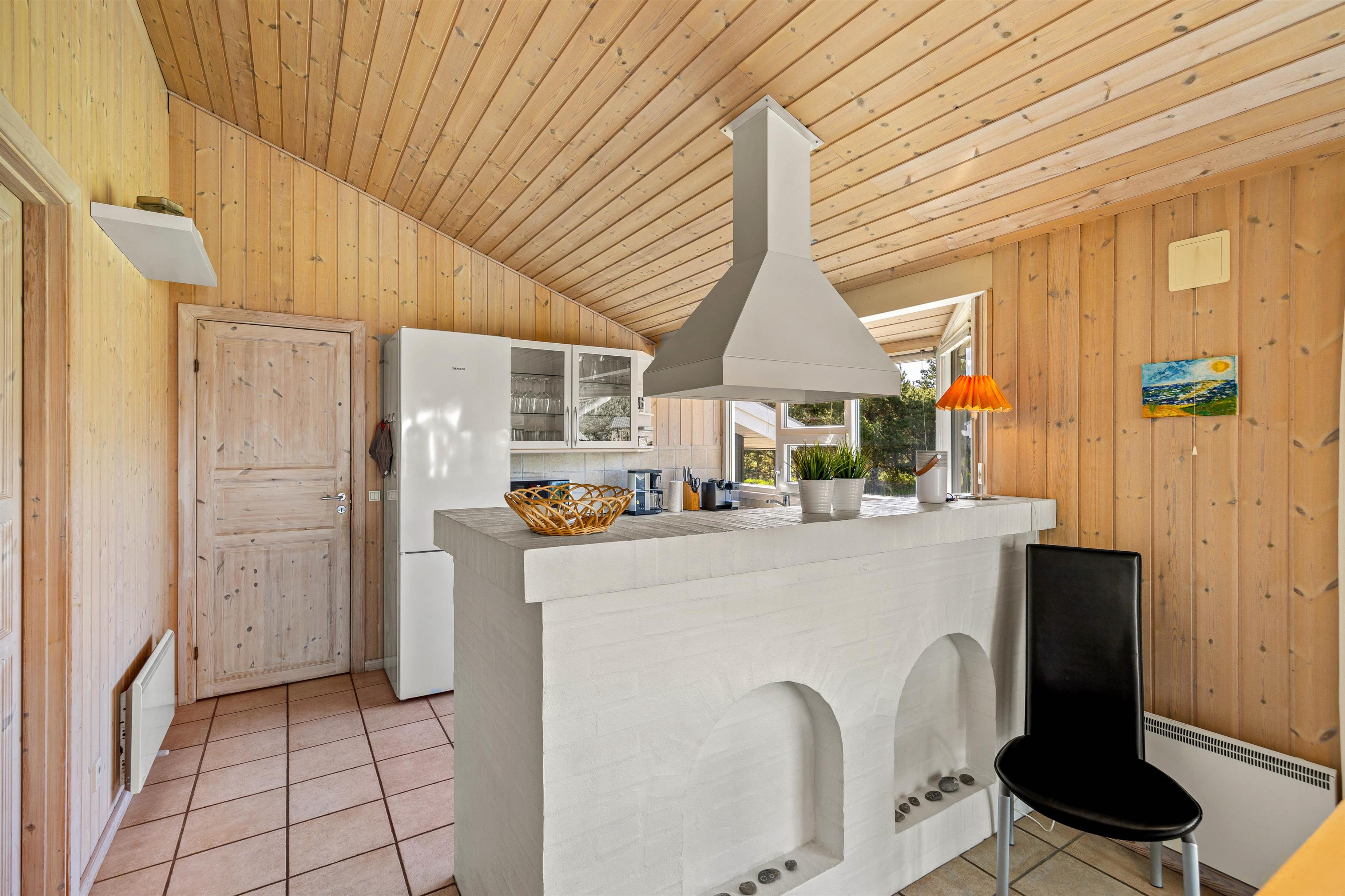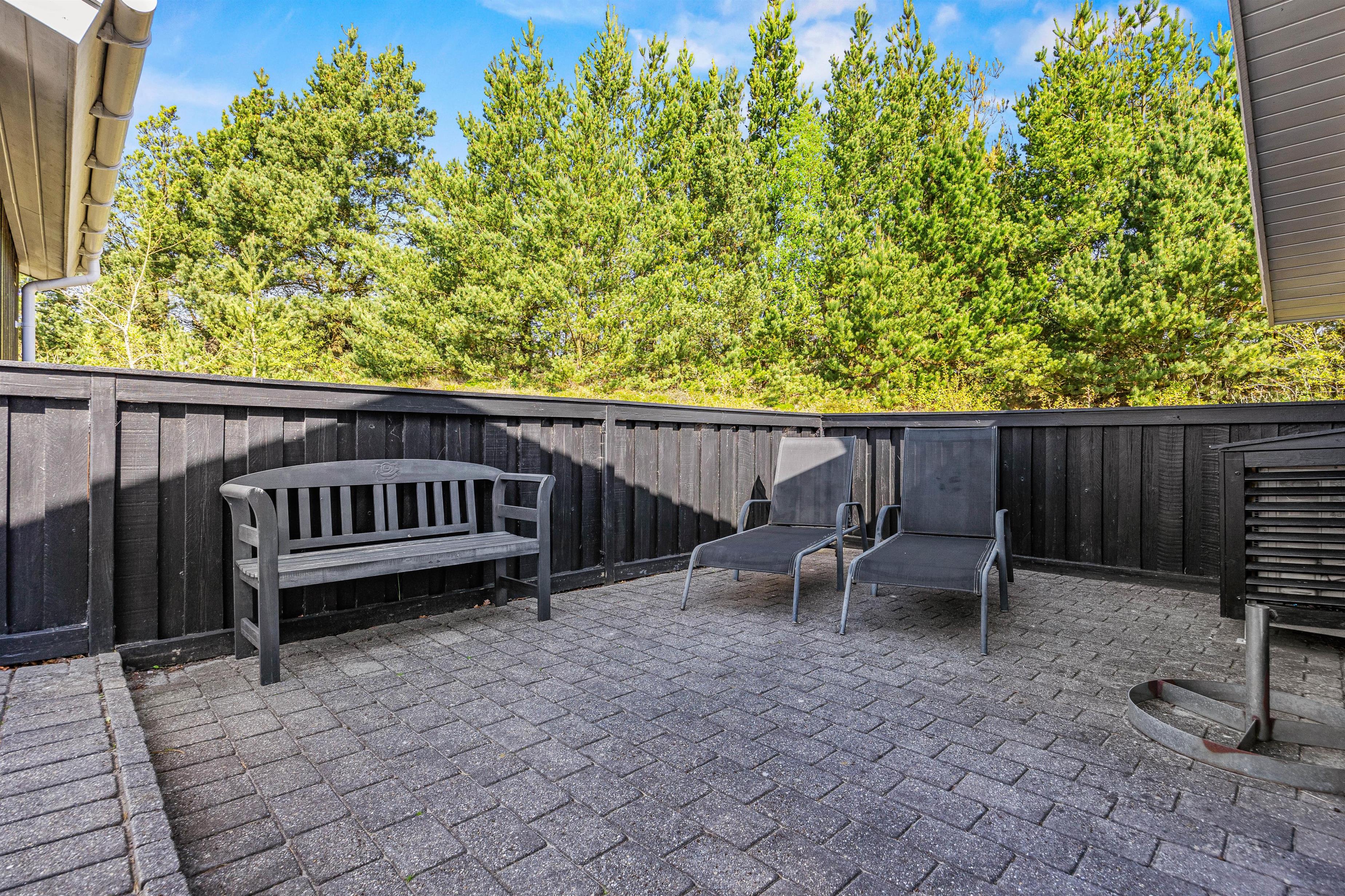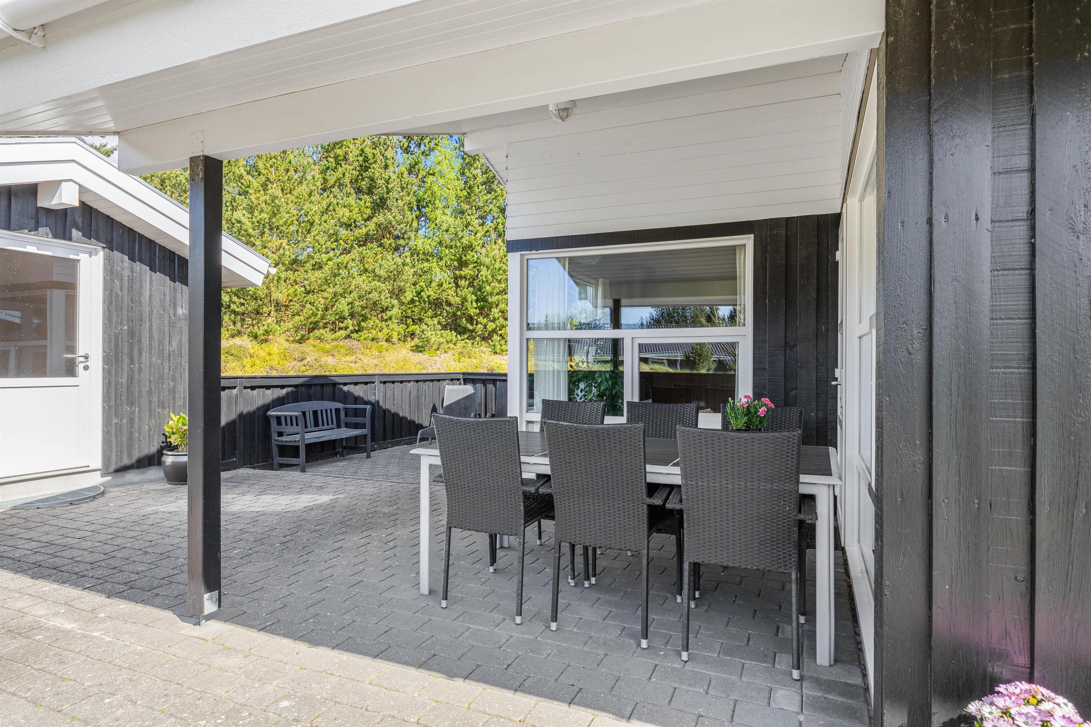 Feriehuset er beliggende for enden af en rolig sidevej. Her kan I nyde privatlivet og det dejlige vejr på den store fliseterrasse. Havemøbler og liggestole står allerede klar! Start dagen med en lækker brunch, mens dagens program planlægges – slut også dagen her med en hyggelig grillaften. Her kan I dække op på den overdækkede del af terrassen, hvorfra det er muligt at se børnene, der leger på den grønne græsplæne, bygger sandslotte i sandkassen eller leger på gyngerne. Dét er rigtig sommerhus-hygge!