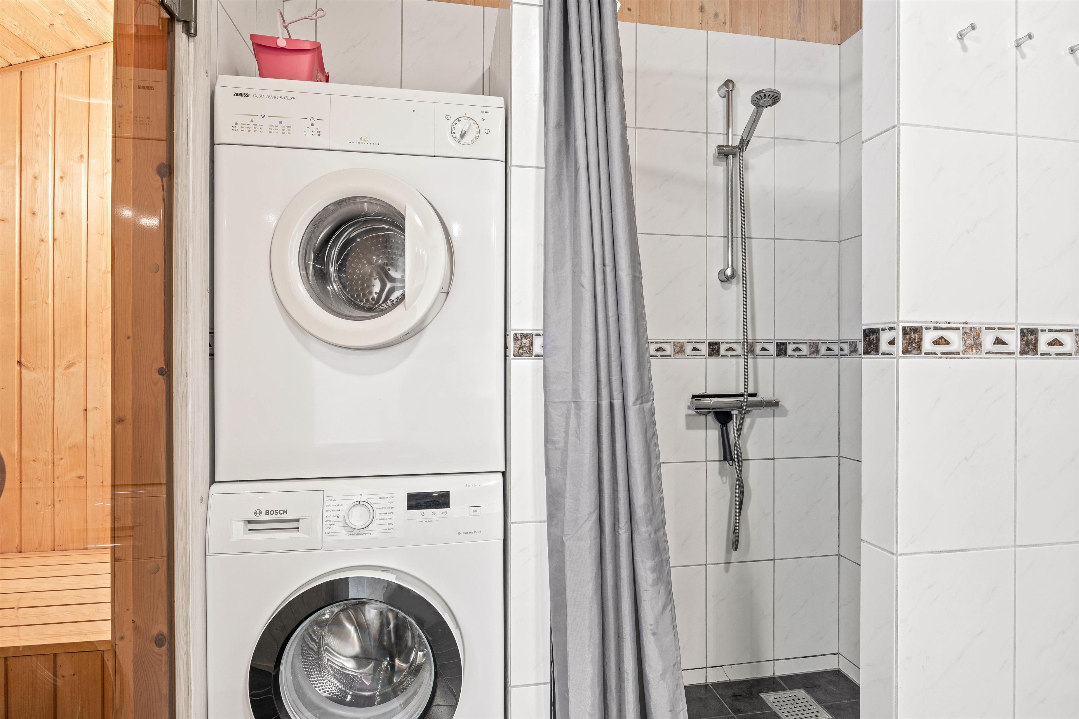 I feriehuset er en energibesparende varmepumpe installeret – den sørger for at skabe et behageligt indeklima året rundt! Vaskemaskine og tørretumbler har I også til rådighed, særligt praktisk med småbørn.