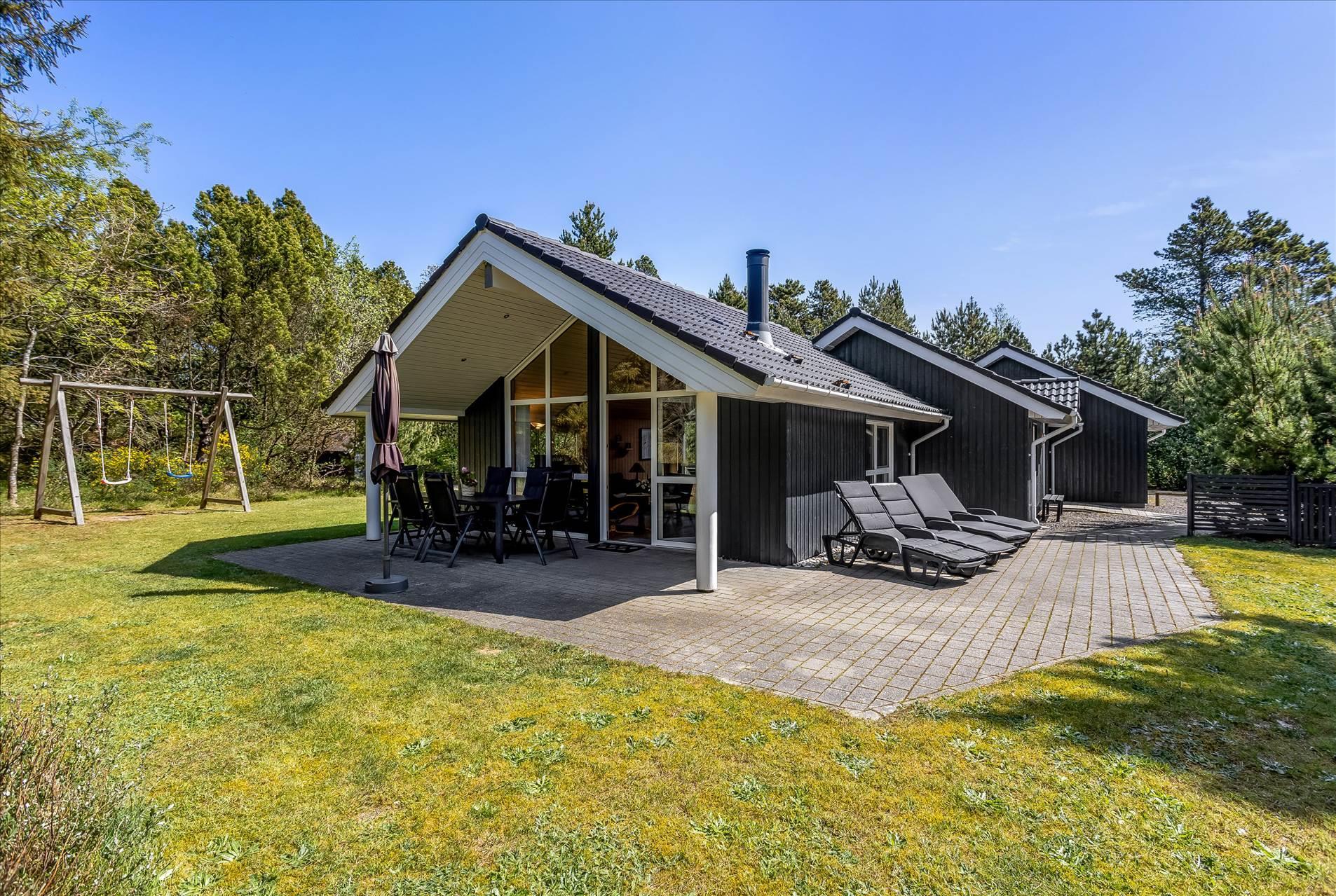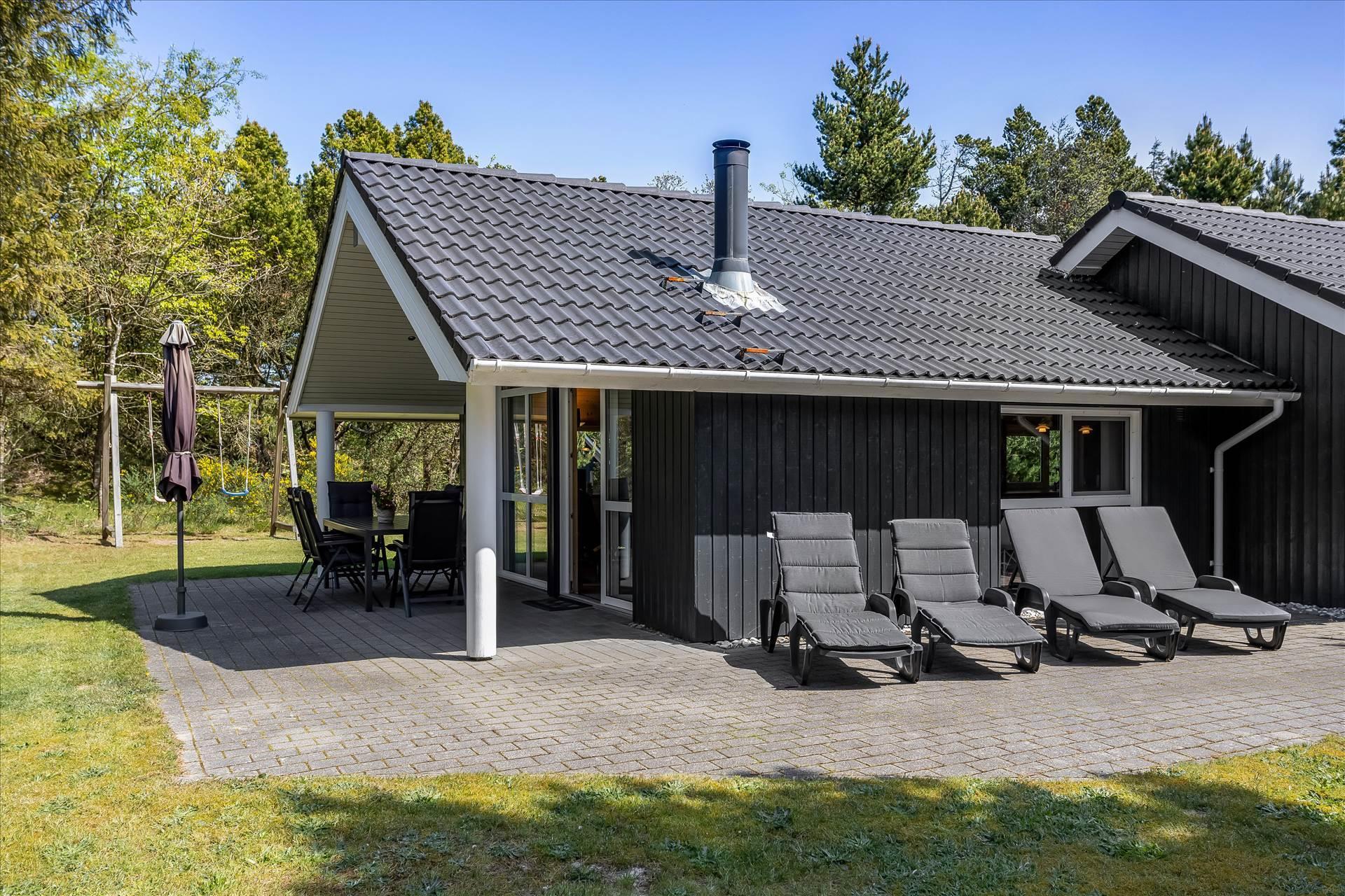 Fra sommerhusets stue er der direkte udgang til terrassen, der er udstyret med gode havemøbler, så I både kan slappe af og slikke sol men også kan hygge med lækker grillmad. Børnene kan hygge sig med leg på den 2740 m2 store grund, hvor der står gynger til deres rådighed.