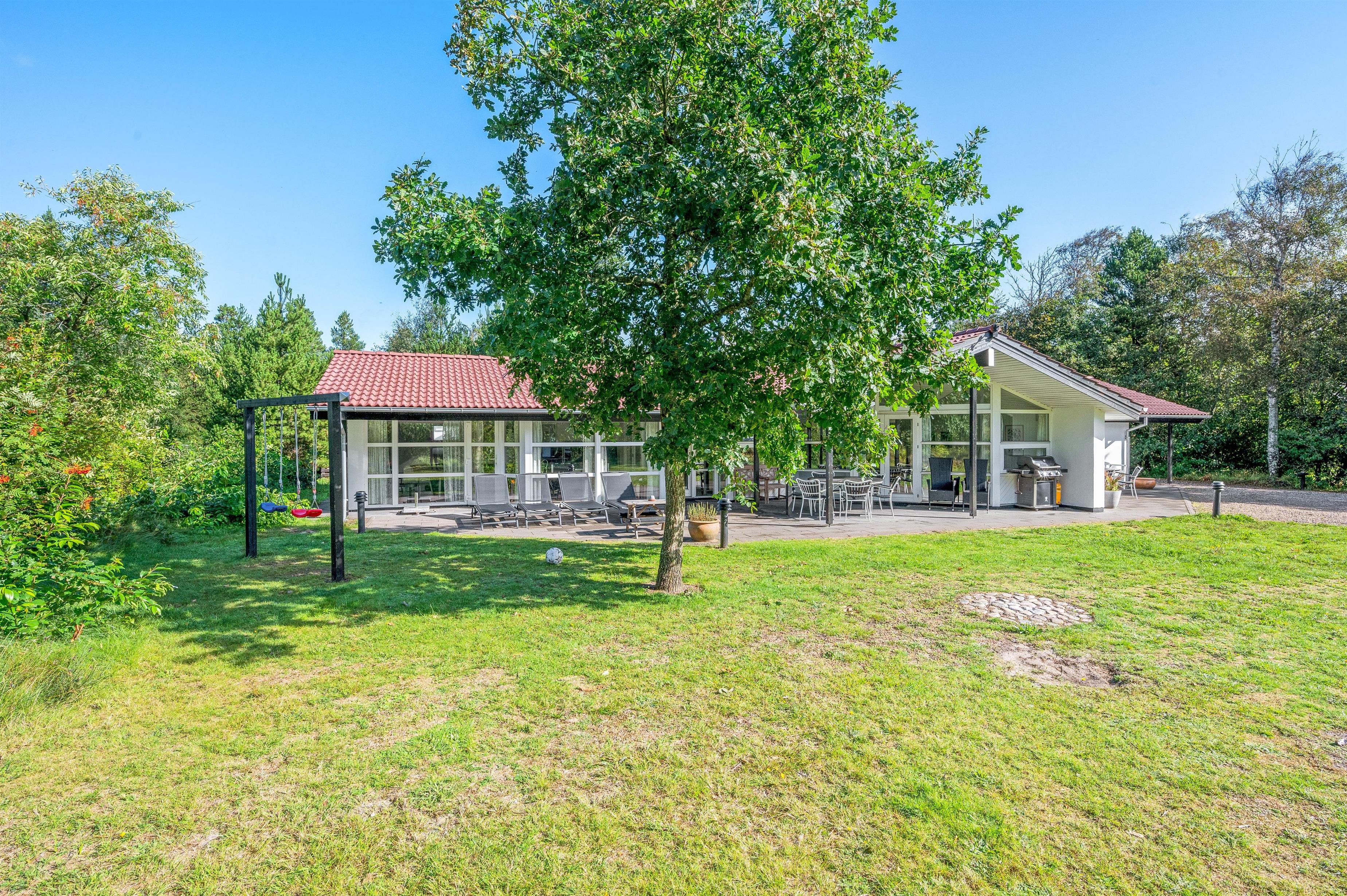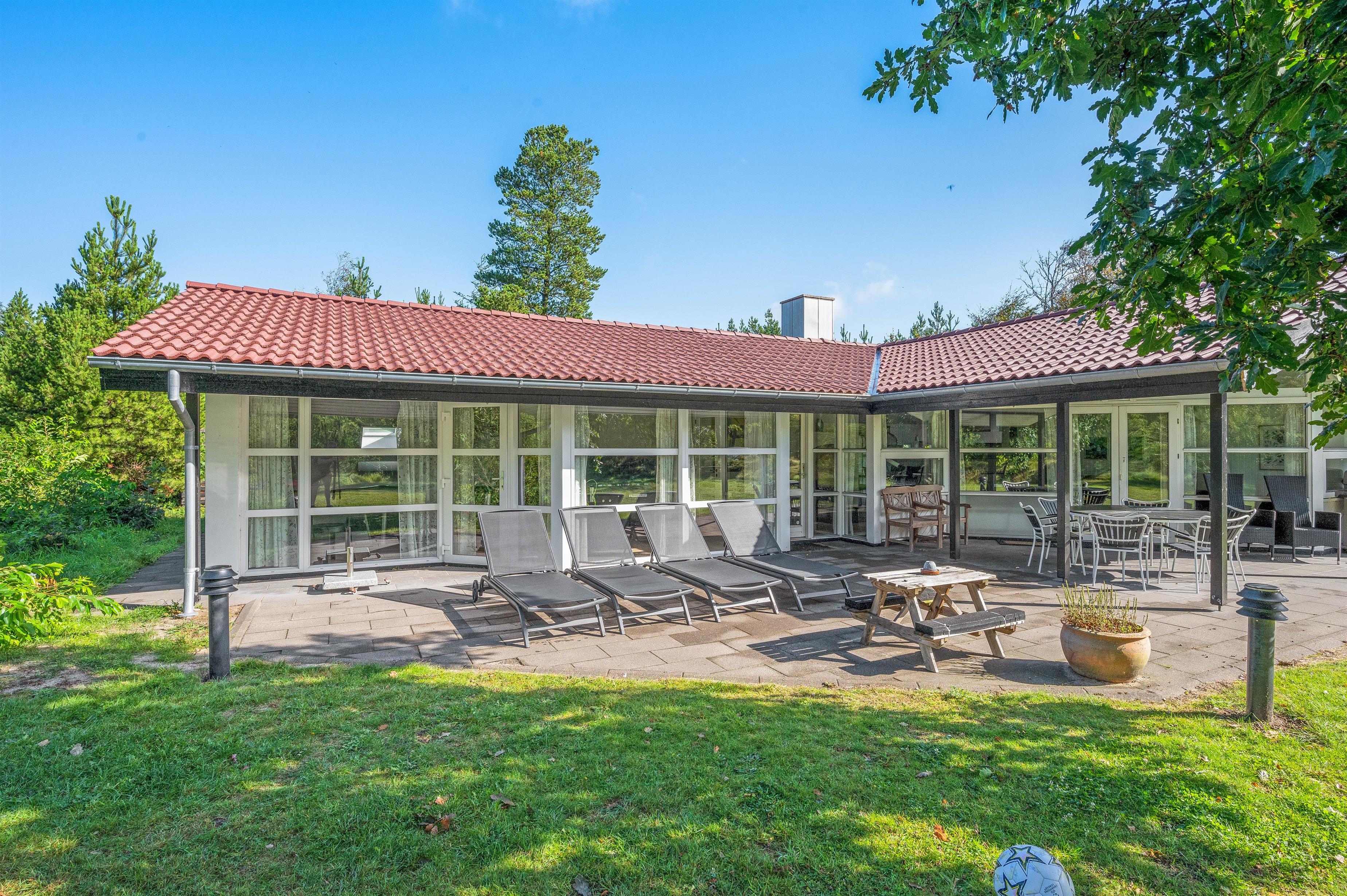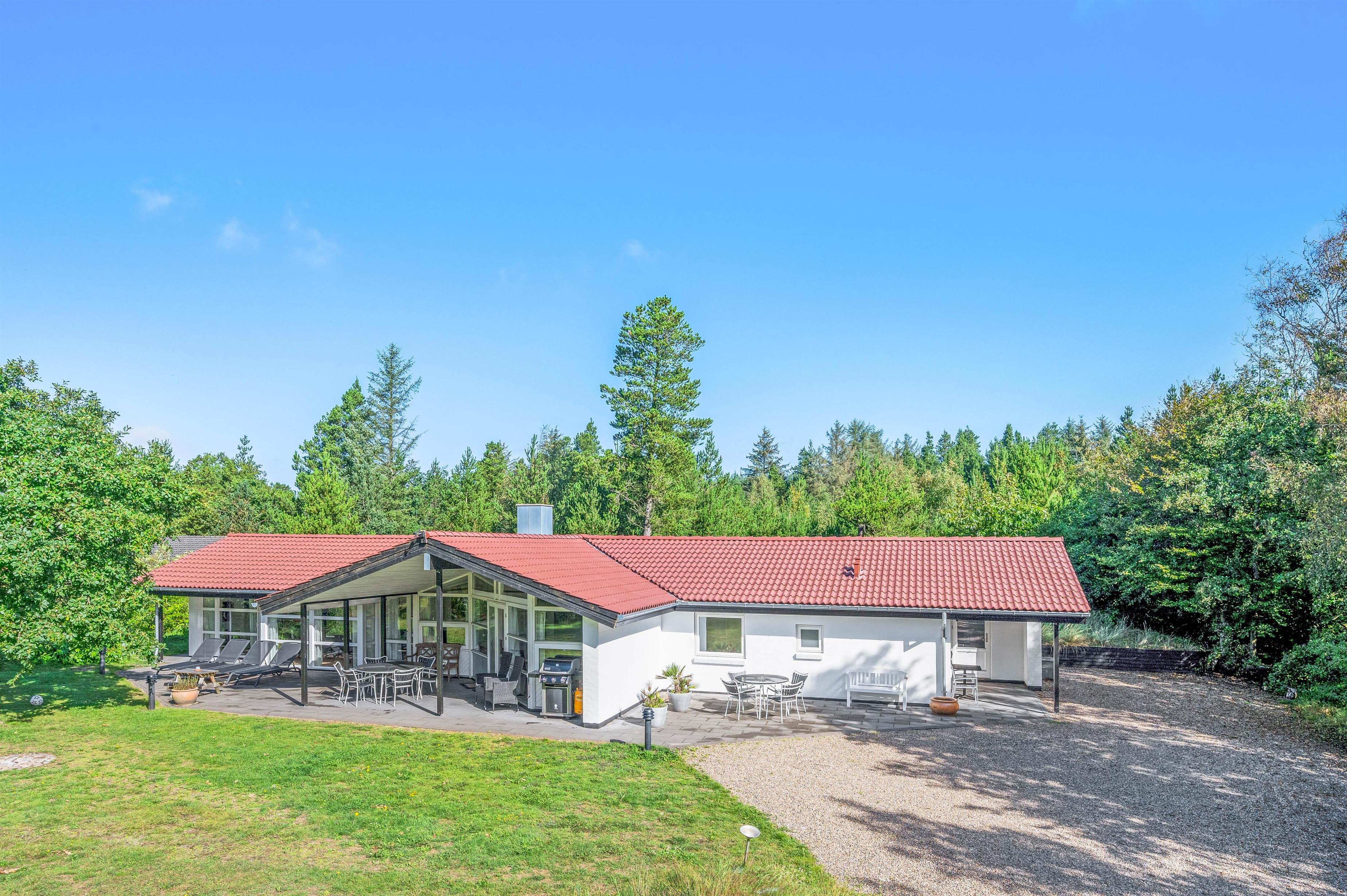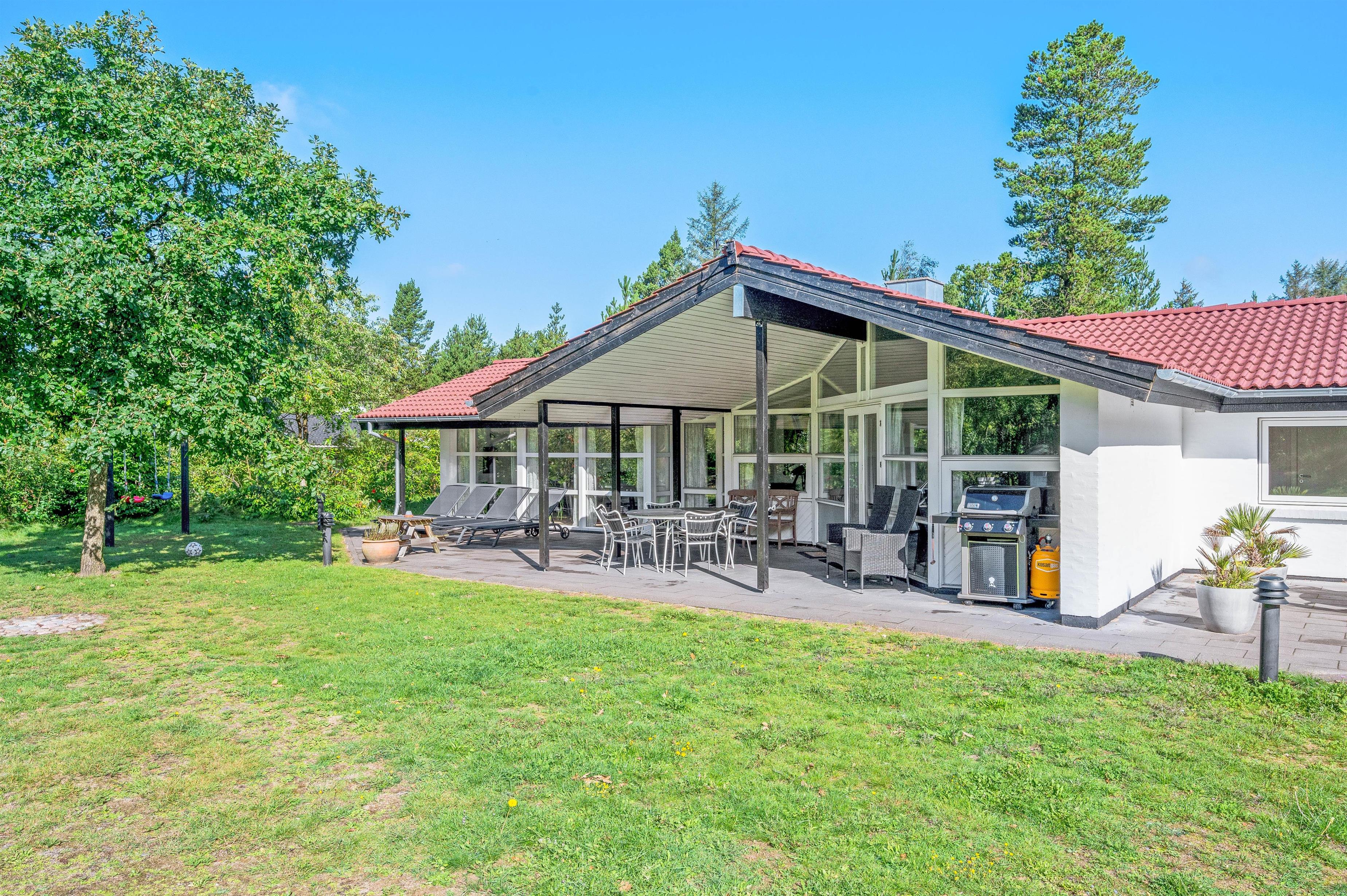 Udenfor er der flere hyggelige kroge, skønne terrasser og gode havemøbler. Den store overdækkede terrasse er perfekt når solen skinner, men også hvis det drypper lidt fra oven. Terrasserne er som skabt til samvær og hyggelige fællesmiddage, udstyret med lækre havemøbler og stor grill. Der er gasgrill på terrassen.