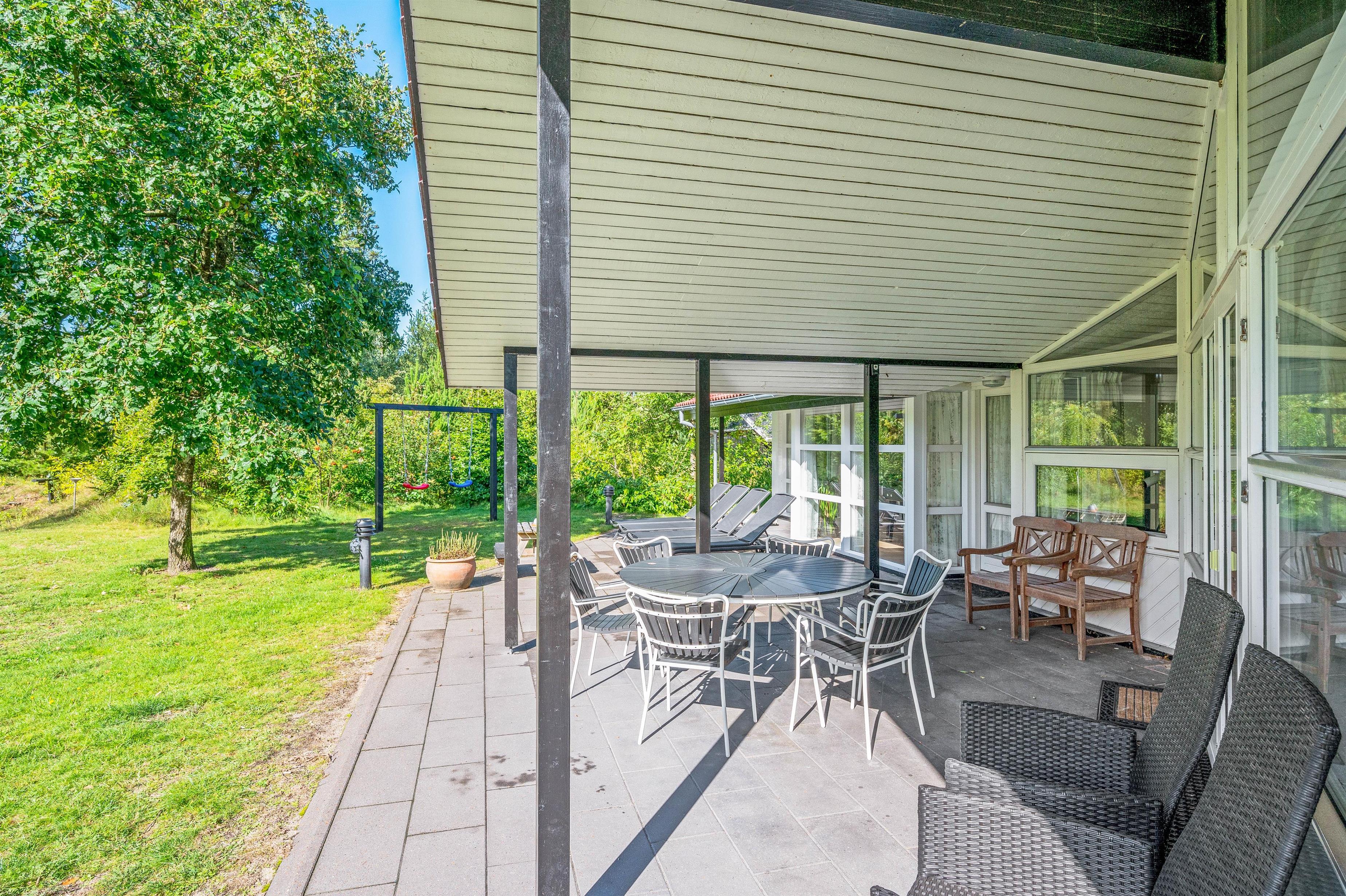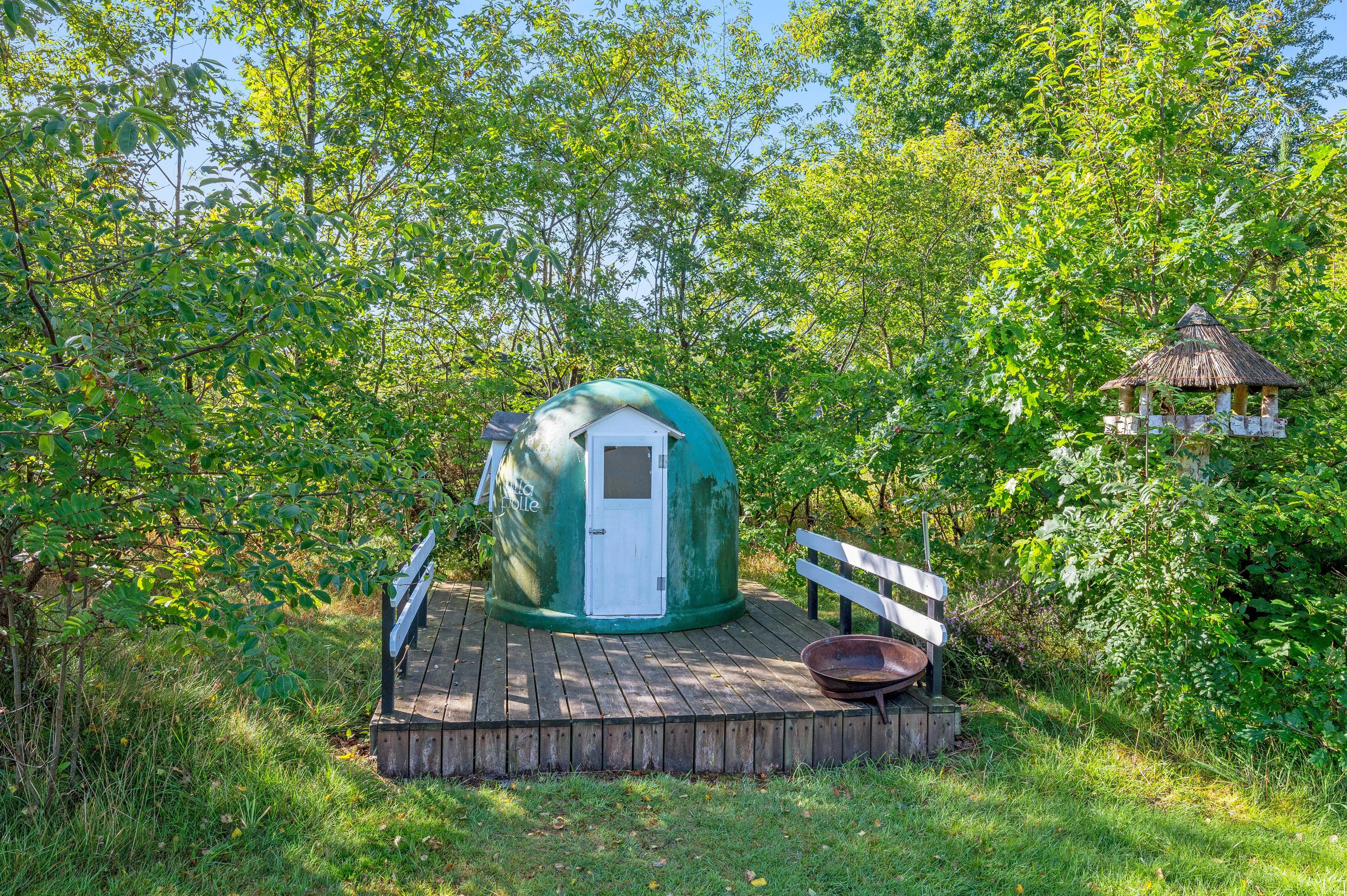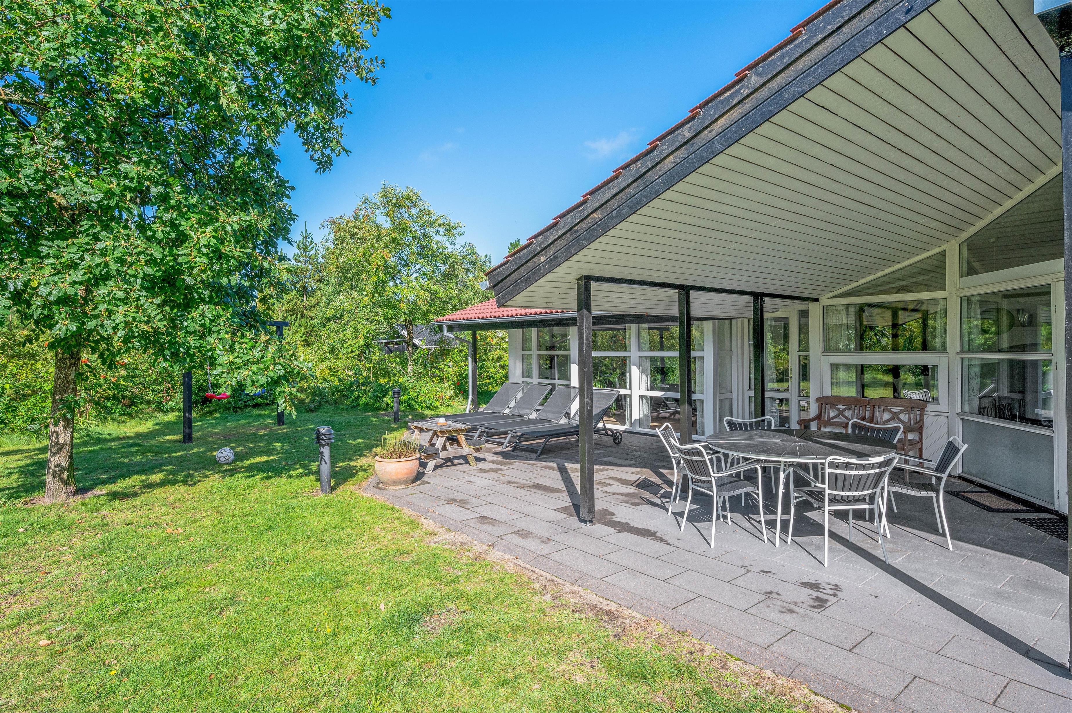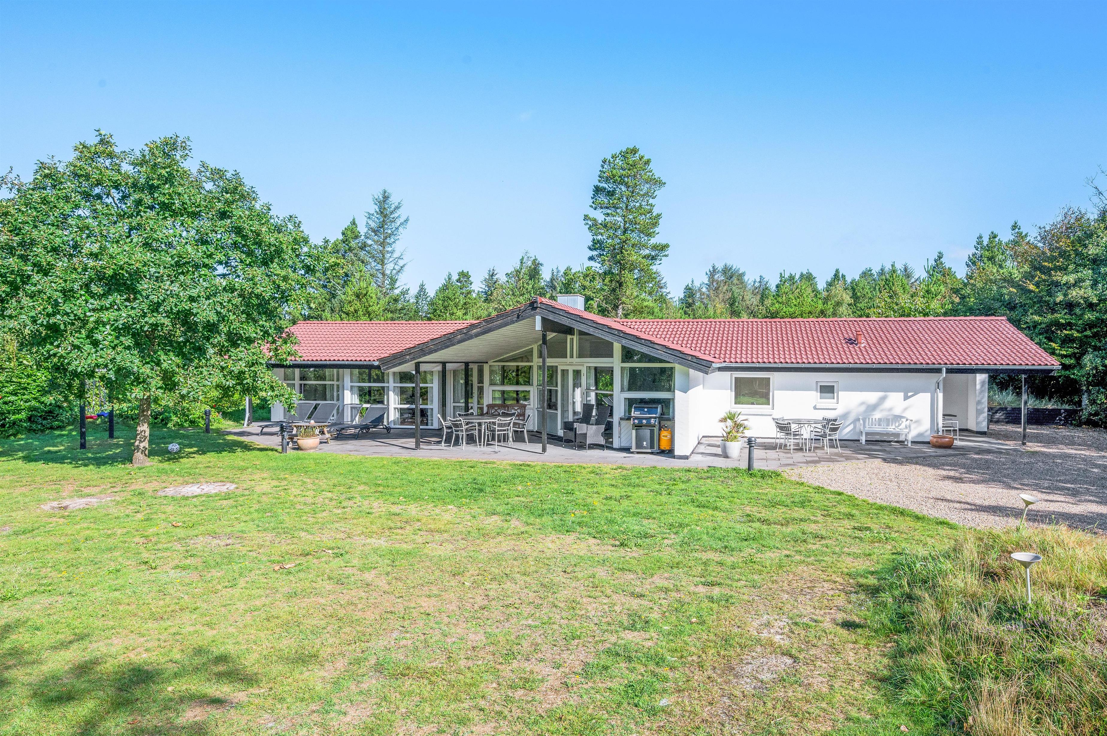 Udenfor er der flere hyggelige kroge, skønne terrasser og gode havemøbler. Den store overdækkede terrasse er perfekt når solen skinner, men også hvis det drypper lidt fra oven. Terrasserne er som skabt til samvær og hyggelige fællesmiddage, udstyret med lækre havemøbler og stor grill. Der er gasgrill på terrassen.
