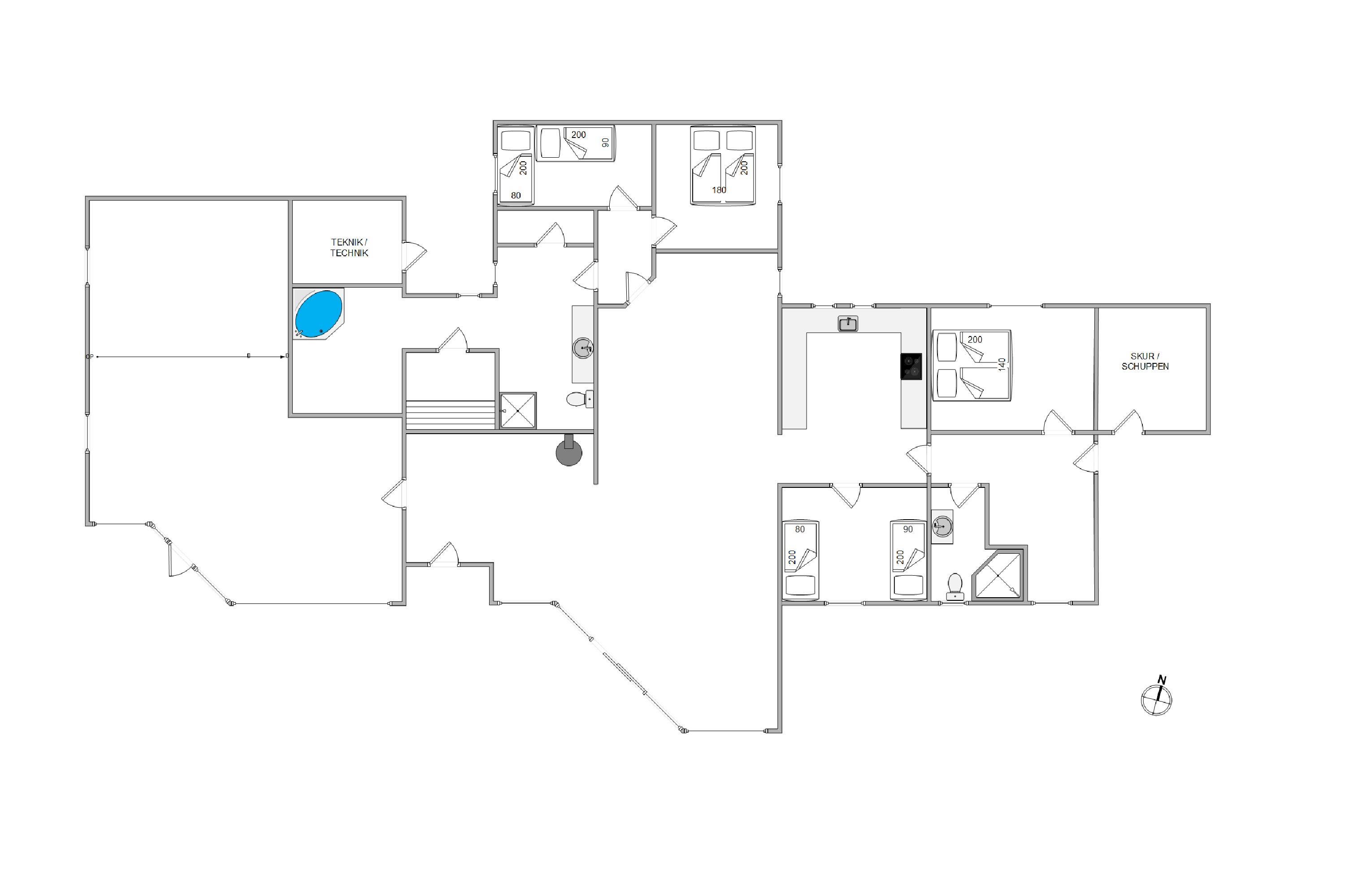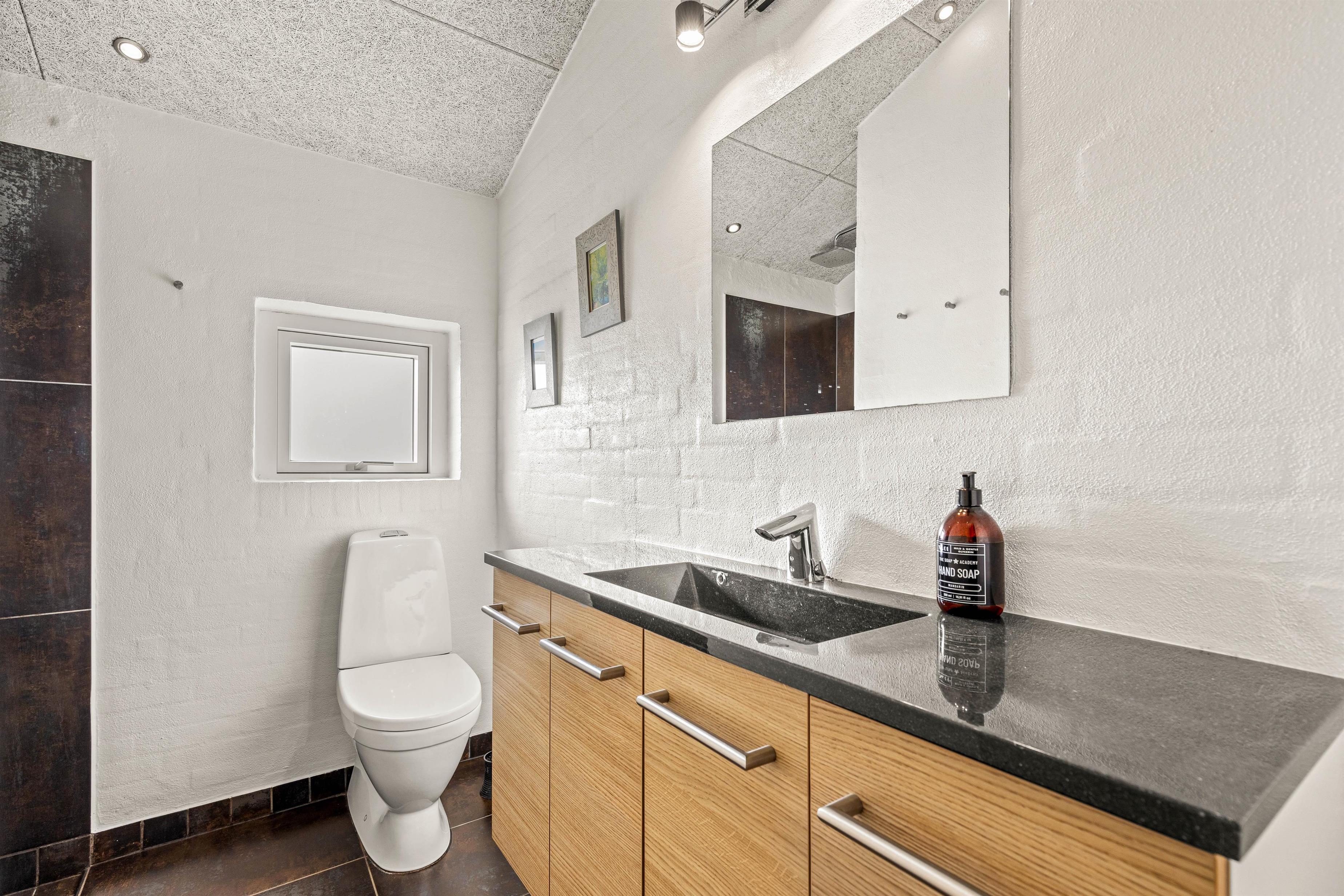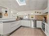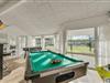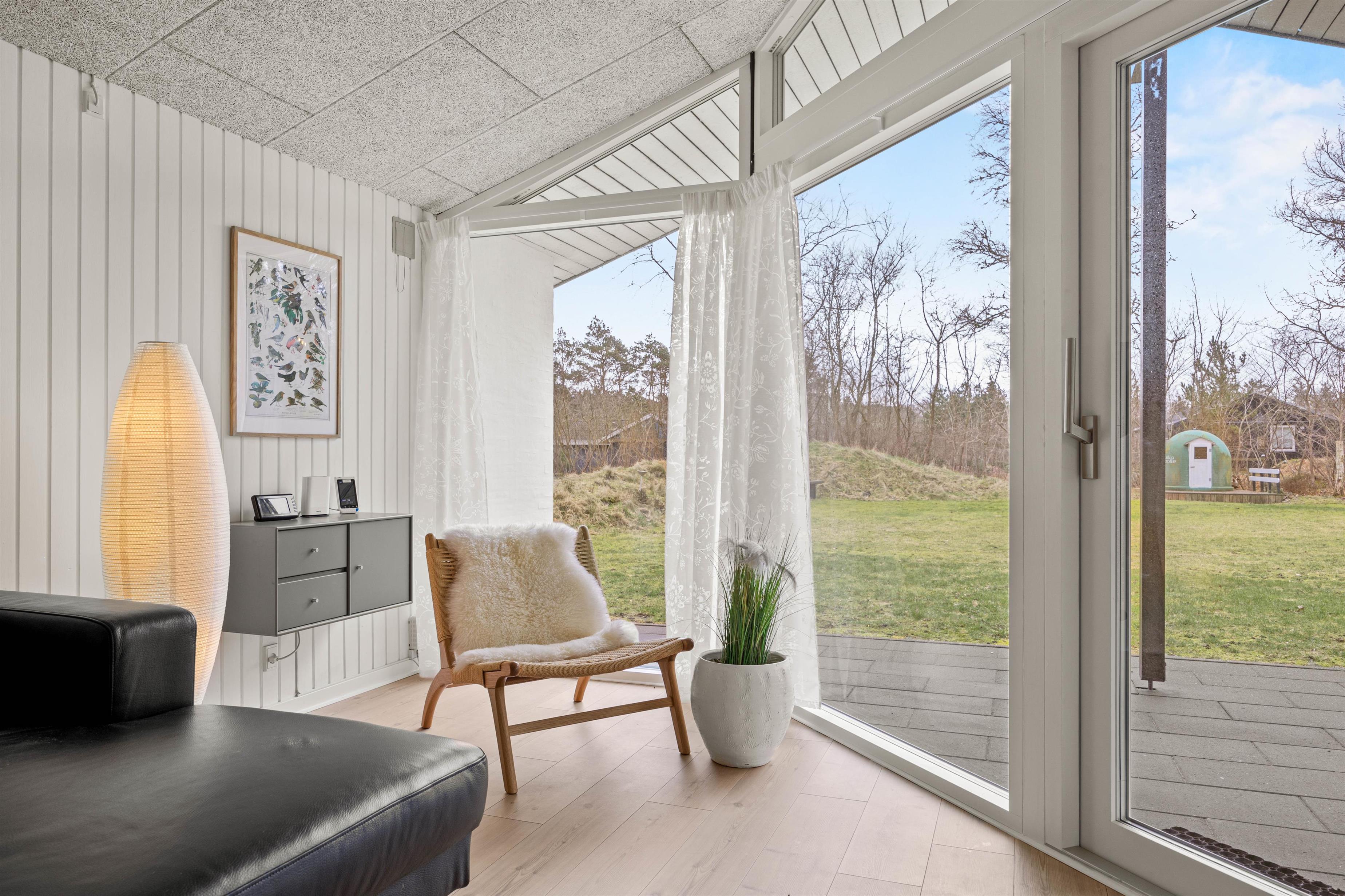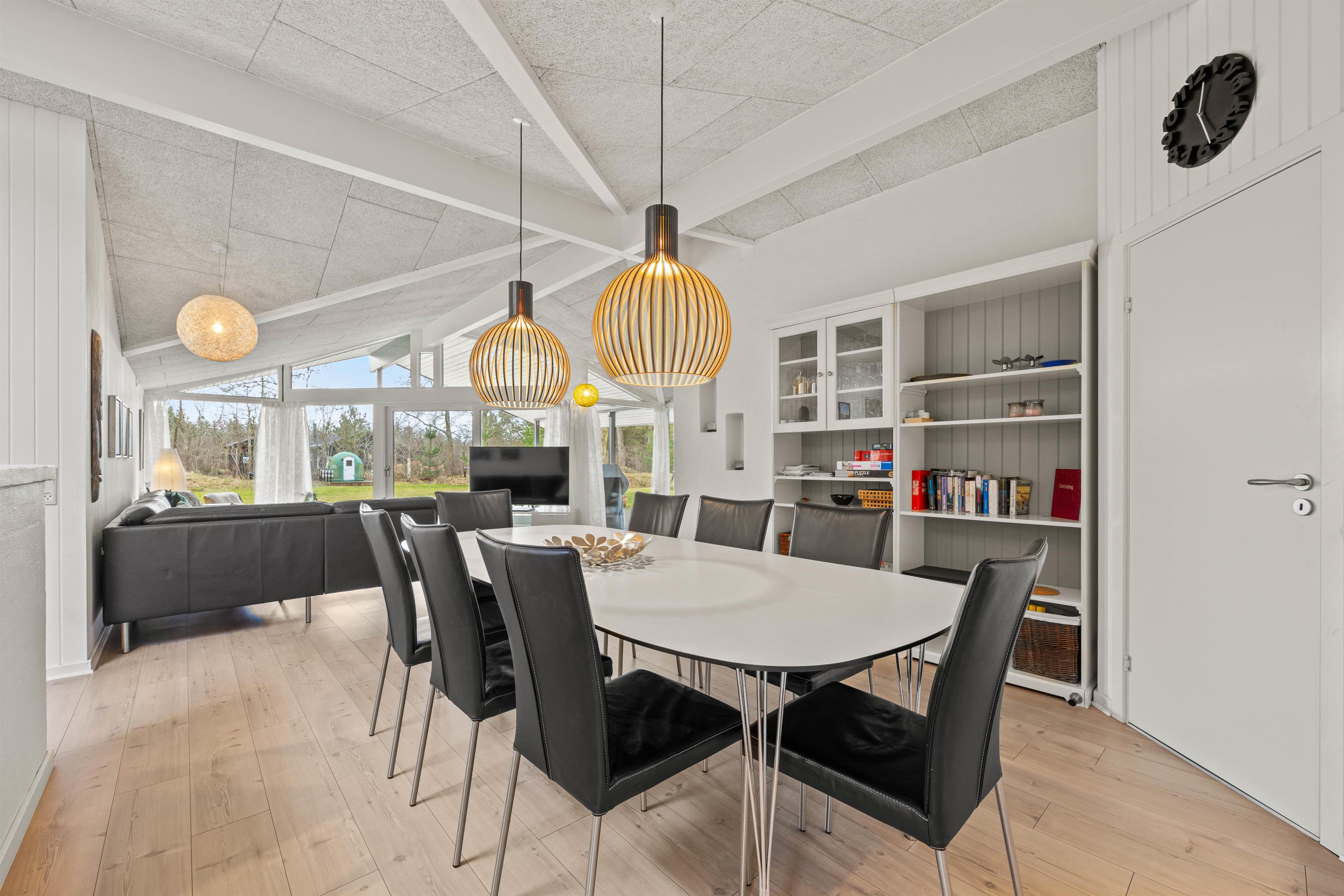 Den lyse indretning, de store vinduespartier og ovenlysvinduer giver en hel særlig stemning i sommerhuset. Lad det store veludstyrede køkken danne rammen om fælles madlavning, hyg jer sammen om spisebordet, eller i en af de fine afdelinger i stuen. Både børn og voksne vil nyde en dyst i bordfodbold, mens andre vil nyde at slappe af i en af sofaerne, med ild i brændeovnen og en god bog.