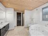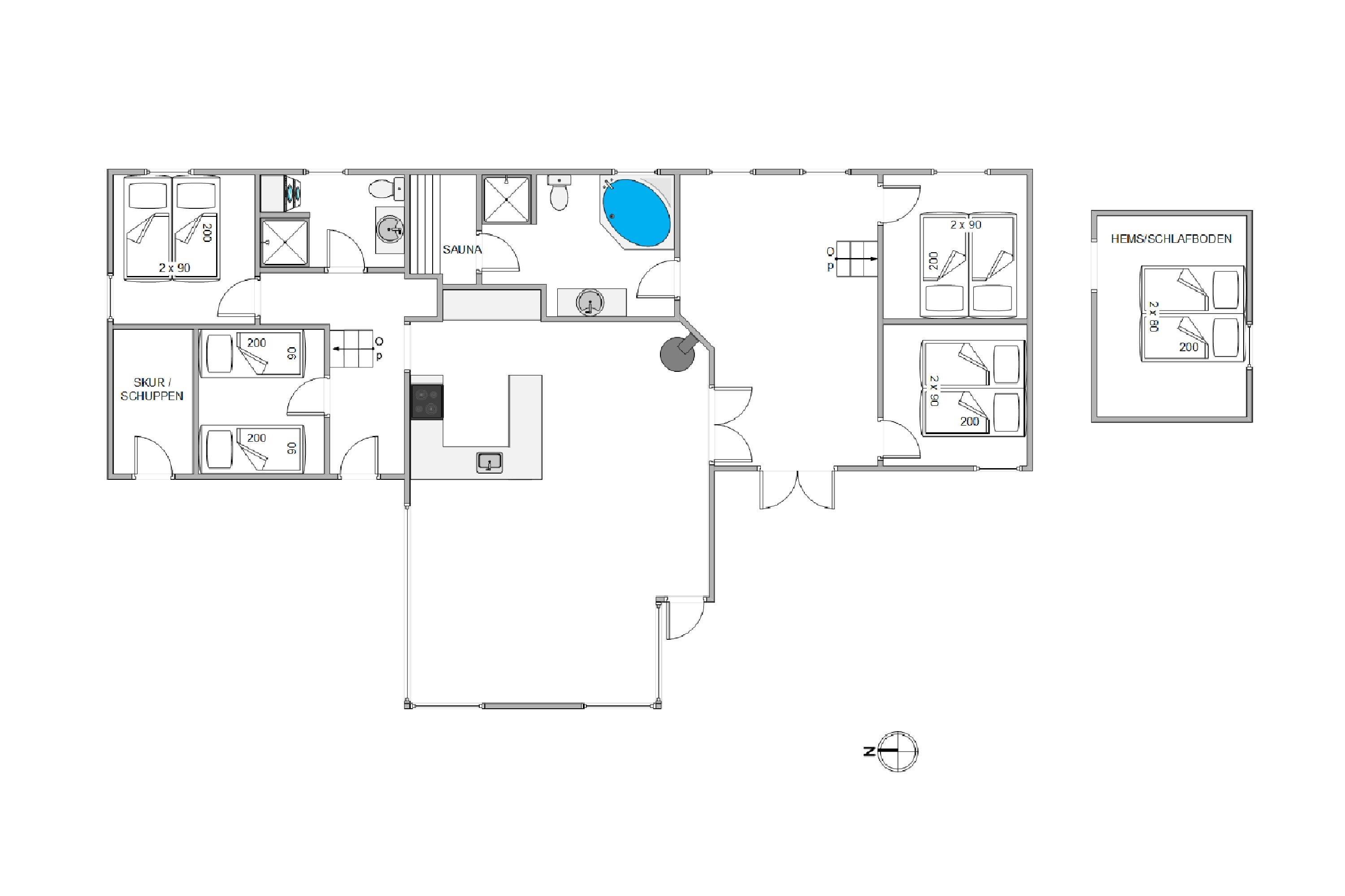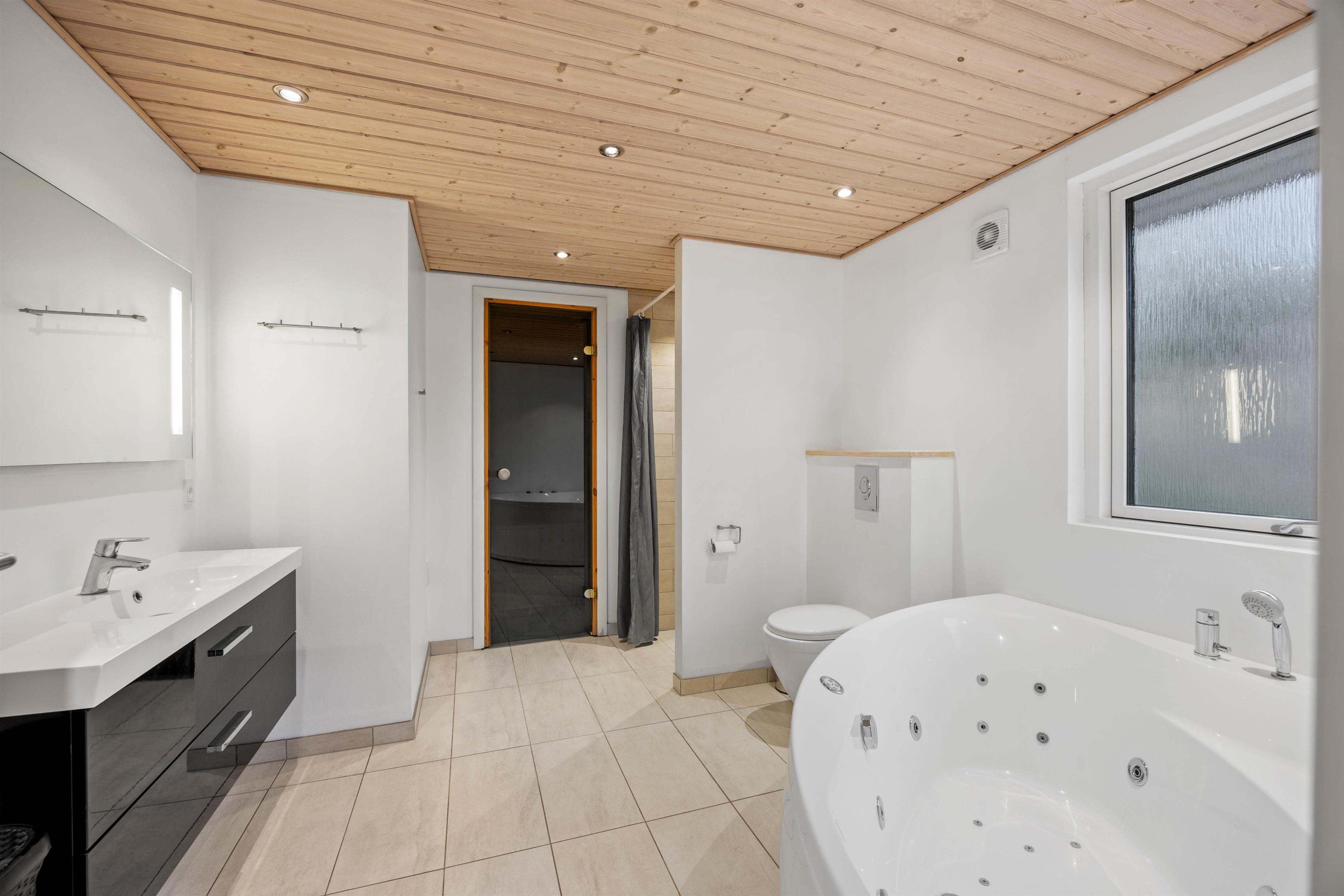 Huset er både enkelt og stilfuldt indrettet med 4 gode soveværelser, hems med 2 sovepladser og 2 badeværelser. På det store badeværelse er der både spa og en stor sauna, som begge er et stort hit for såvel børn og voksne – uanset årstiden.