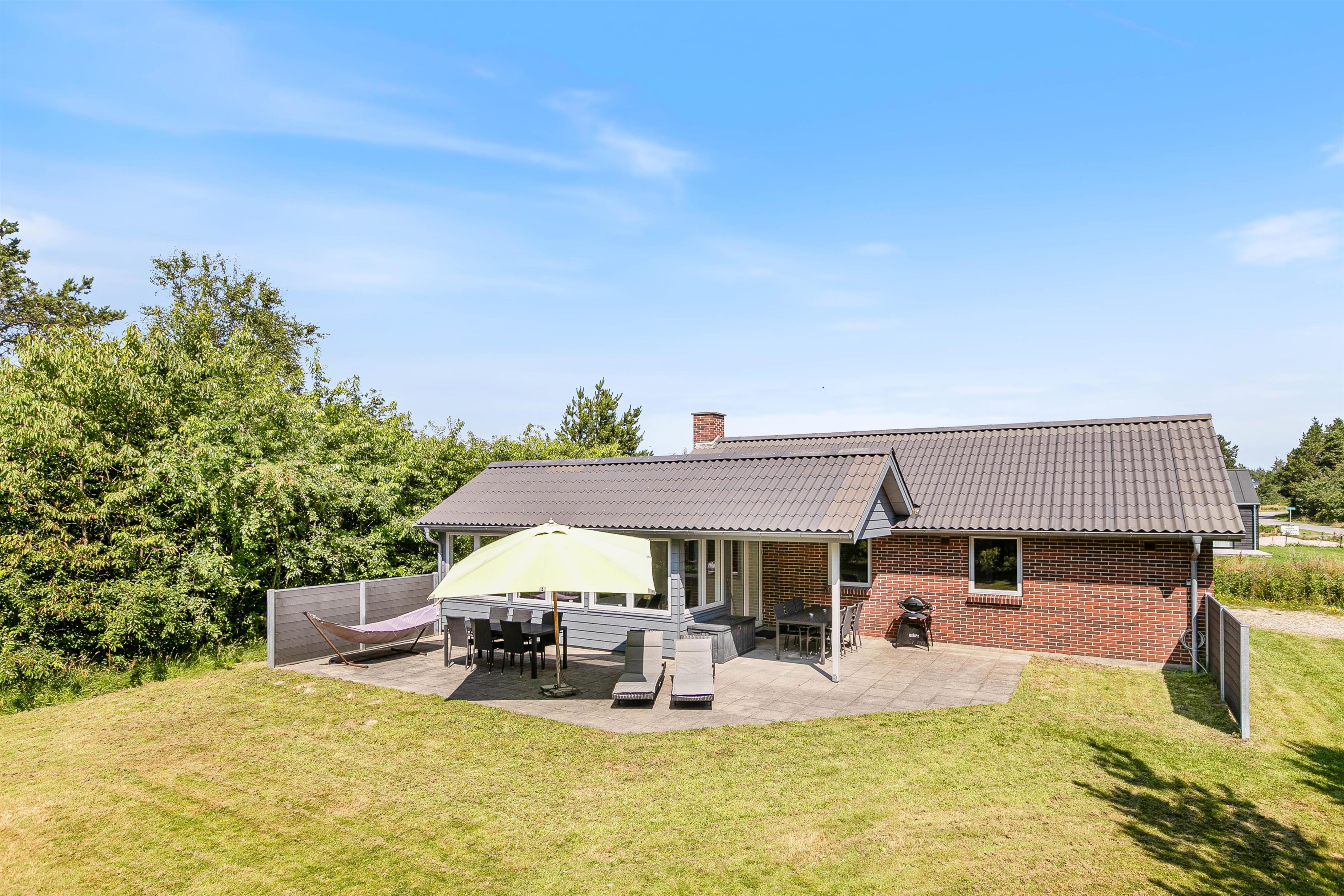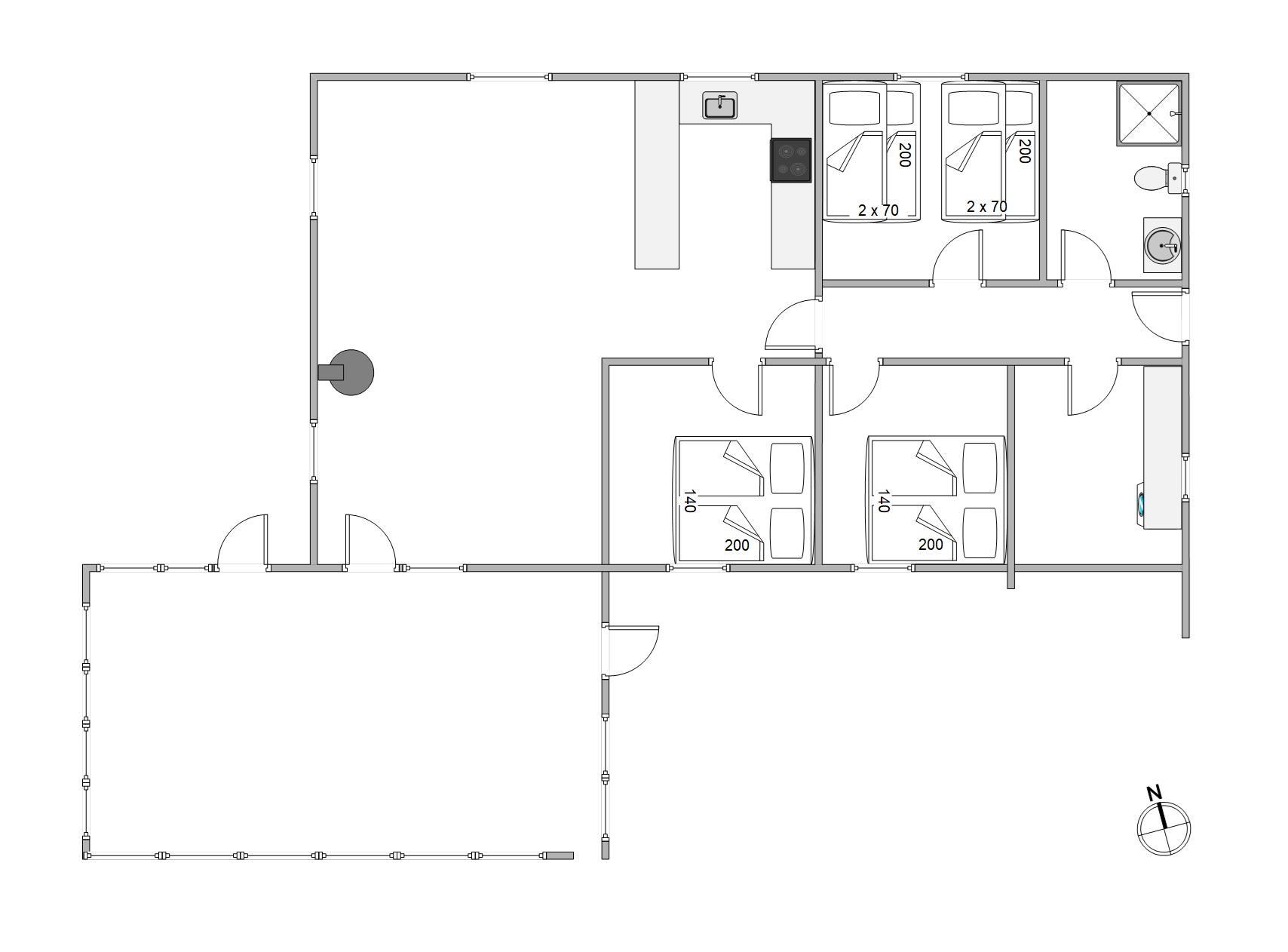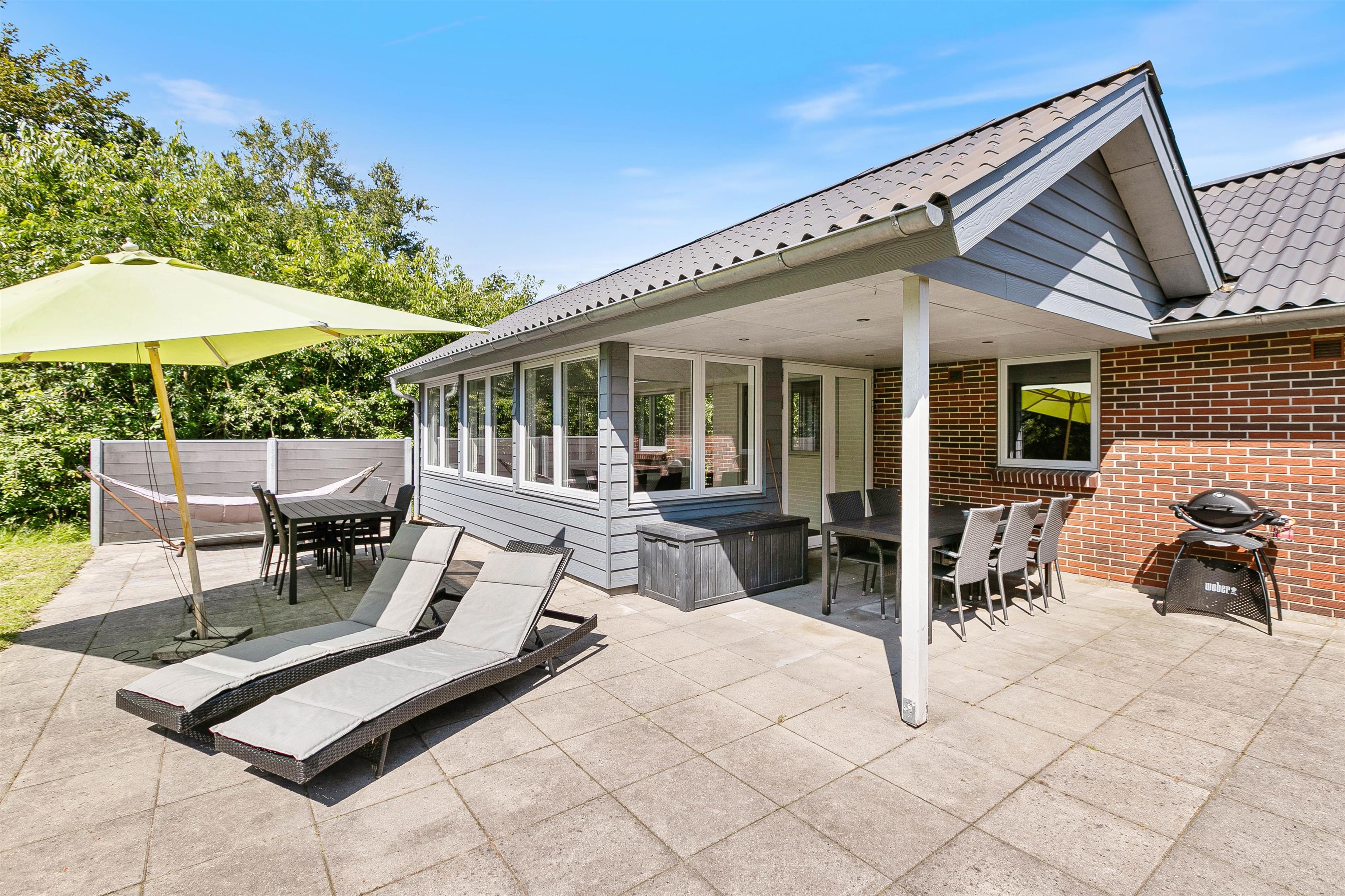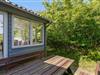 Sommerhusets store plænegrund på 1856m2 inviterer til leg og afslapning i det fri. En gynge og sandkasse vil glæde de mindste, mens I kan nyde en grillmiddag på den overdækkede terrasse eller ude i haven, hvor komfortable havemøblerne står klar. Den overdækkede terrasse tilbyder både skygge og ly, og kan I nyde udendørs livet i al slags vejr.