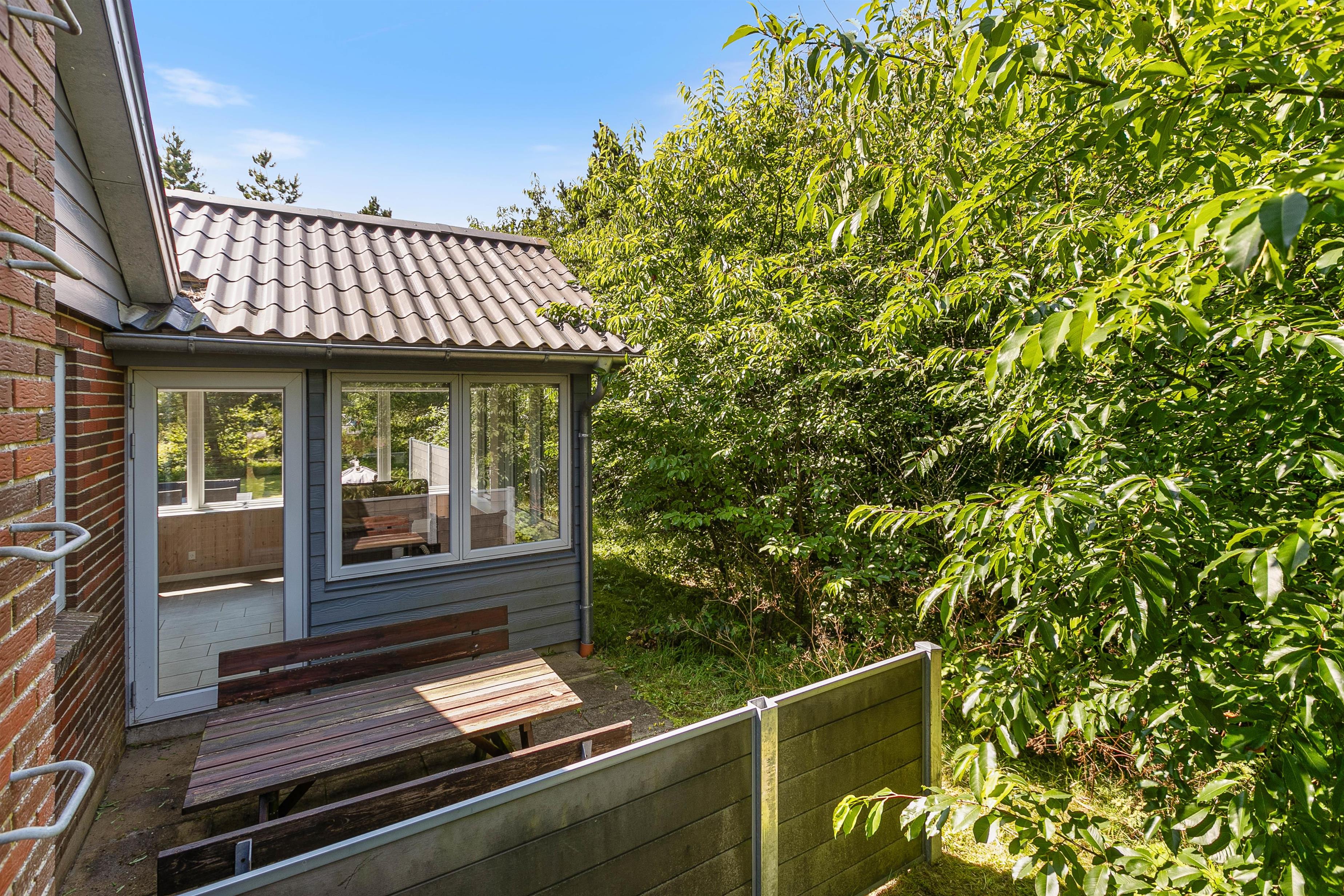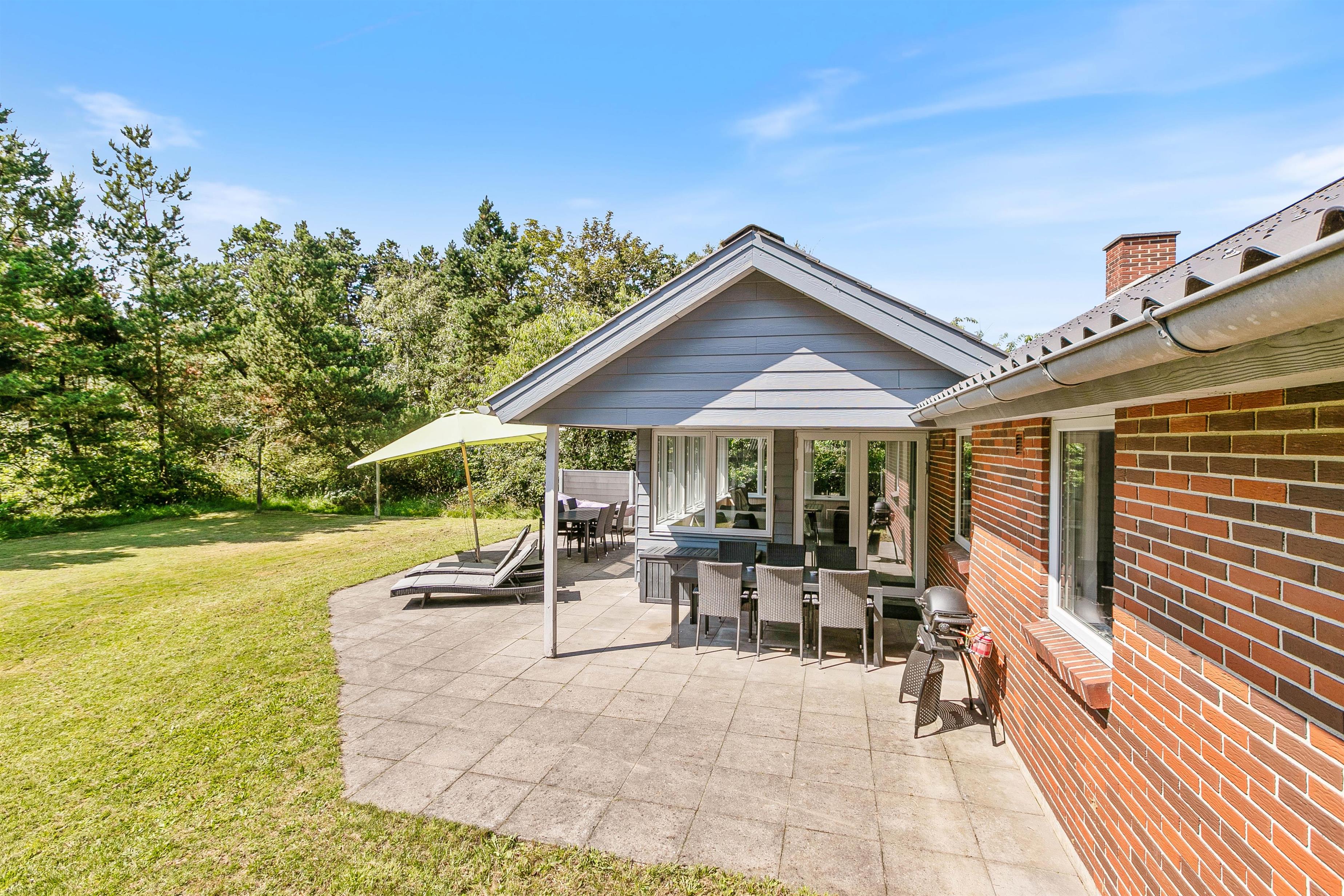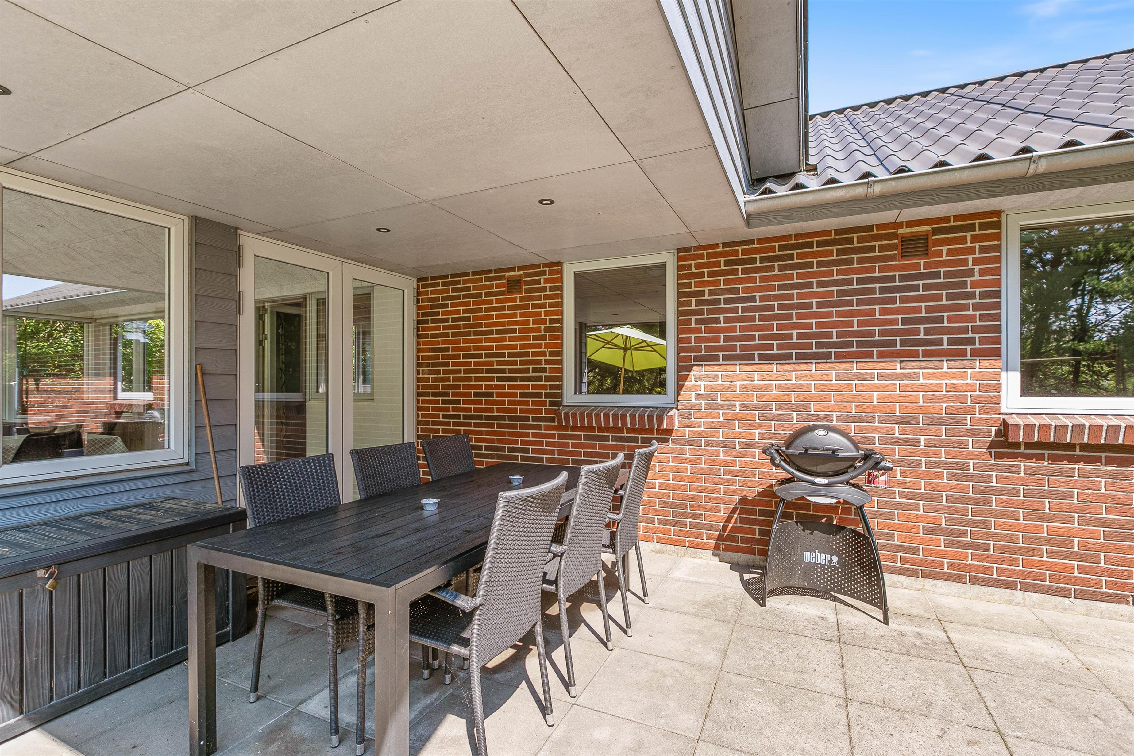 Sommerhusets store plænegrund på 1856m2 inviterer til leg og afslapning i det fri. En gynge og sandkasse vil glæde de mindste, mens I kan nyde en grillmiddag på den overdækkede terrasse eller ude i haven, hvor komfortable havemøblerne står klar. Den overdækkede terrasse tilbyder både skygge og ly, og kan I nyde udendørs livet i al slags vejr.