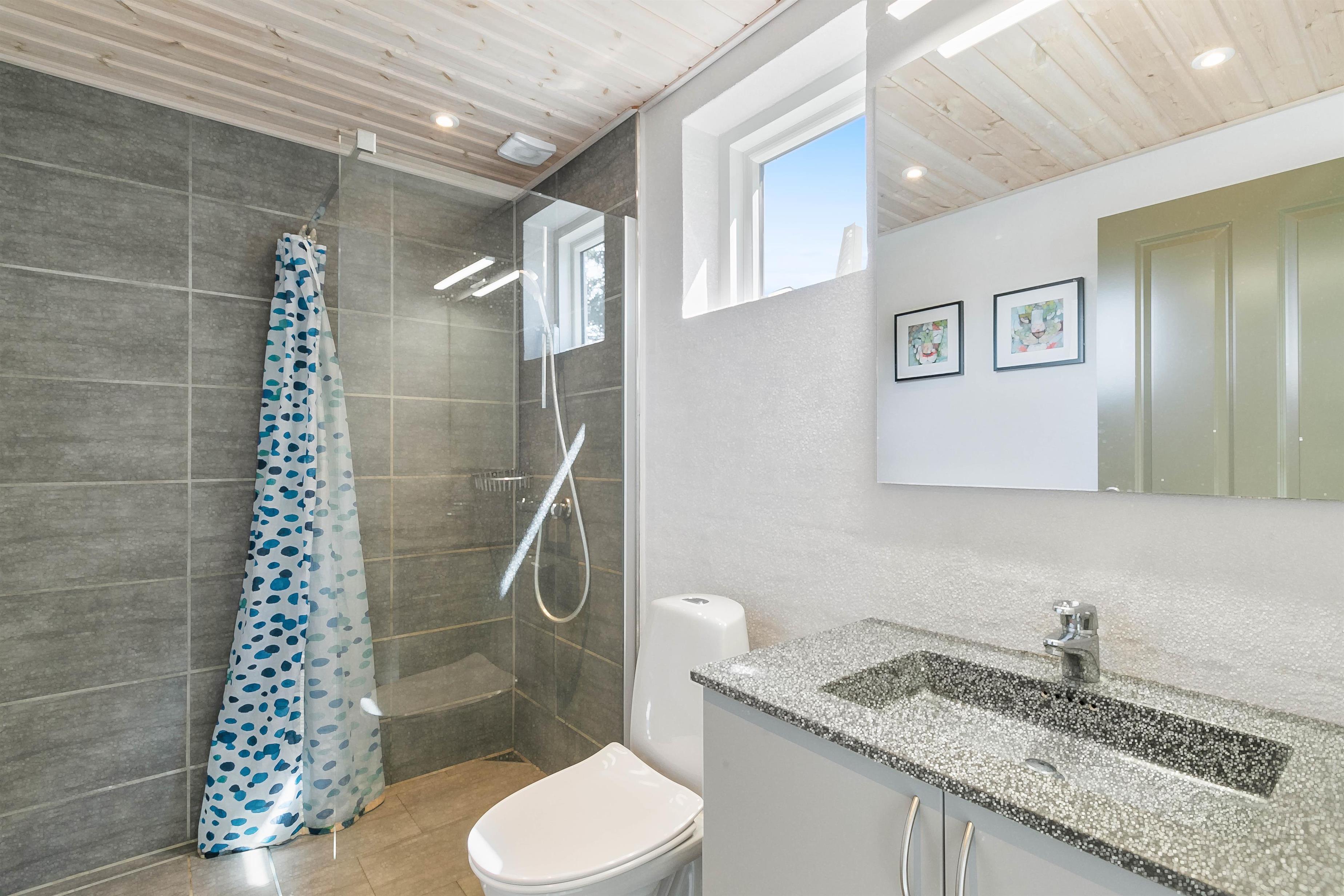 Ikke blot er sommerhuset udstyret med en brændeovn, der skaber en varm og hyggelig stemning, men også en luft til luft varmepumpe samt gulvvarme på badeværelset sørger for behagelig indendørs temperatur året rundt.