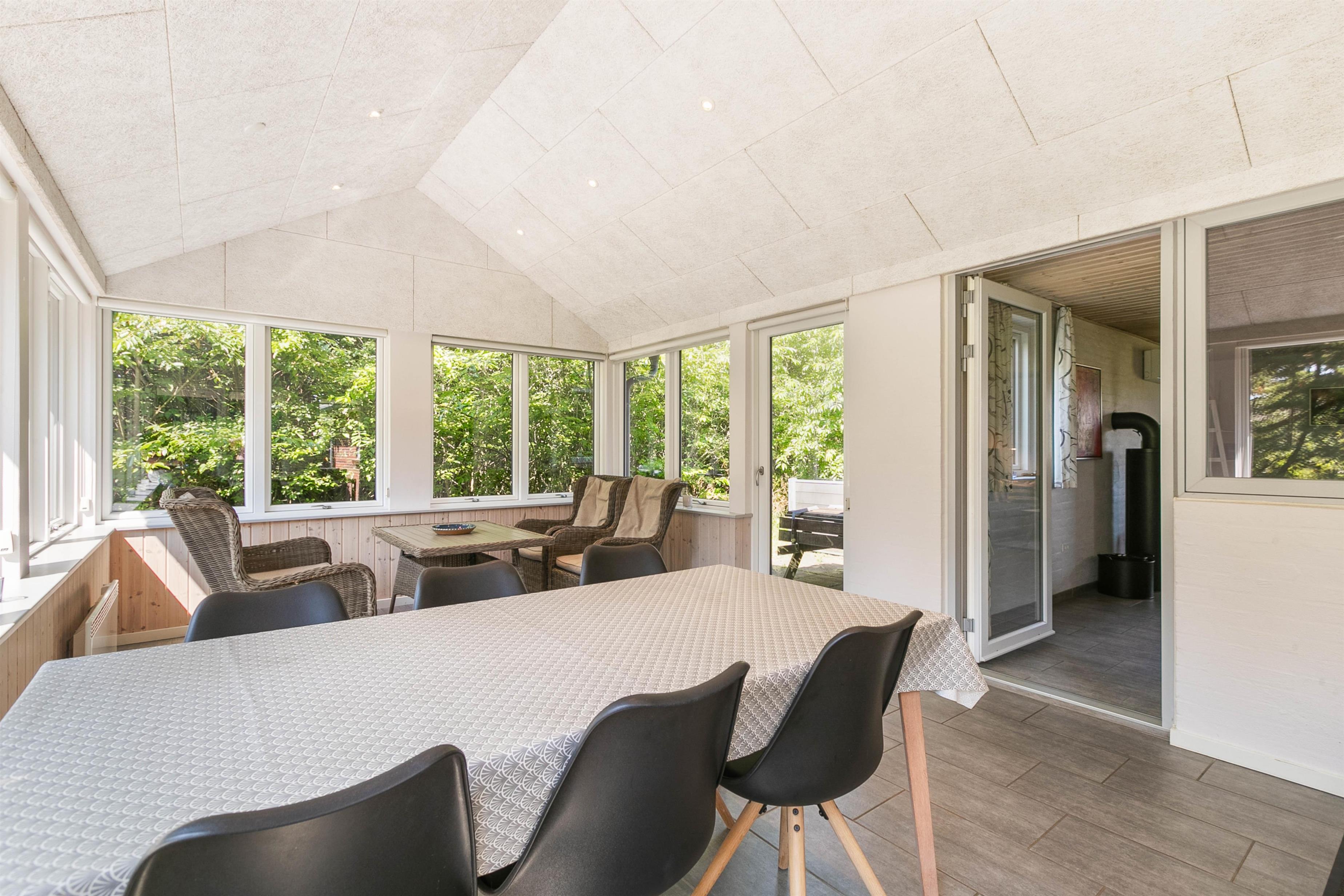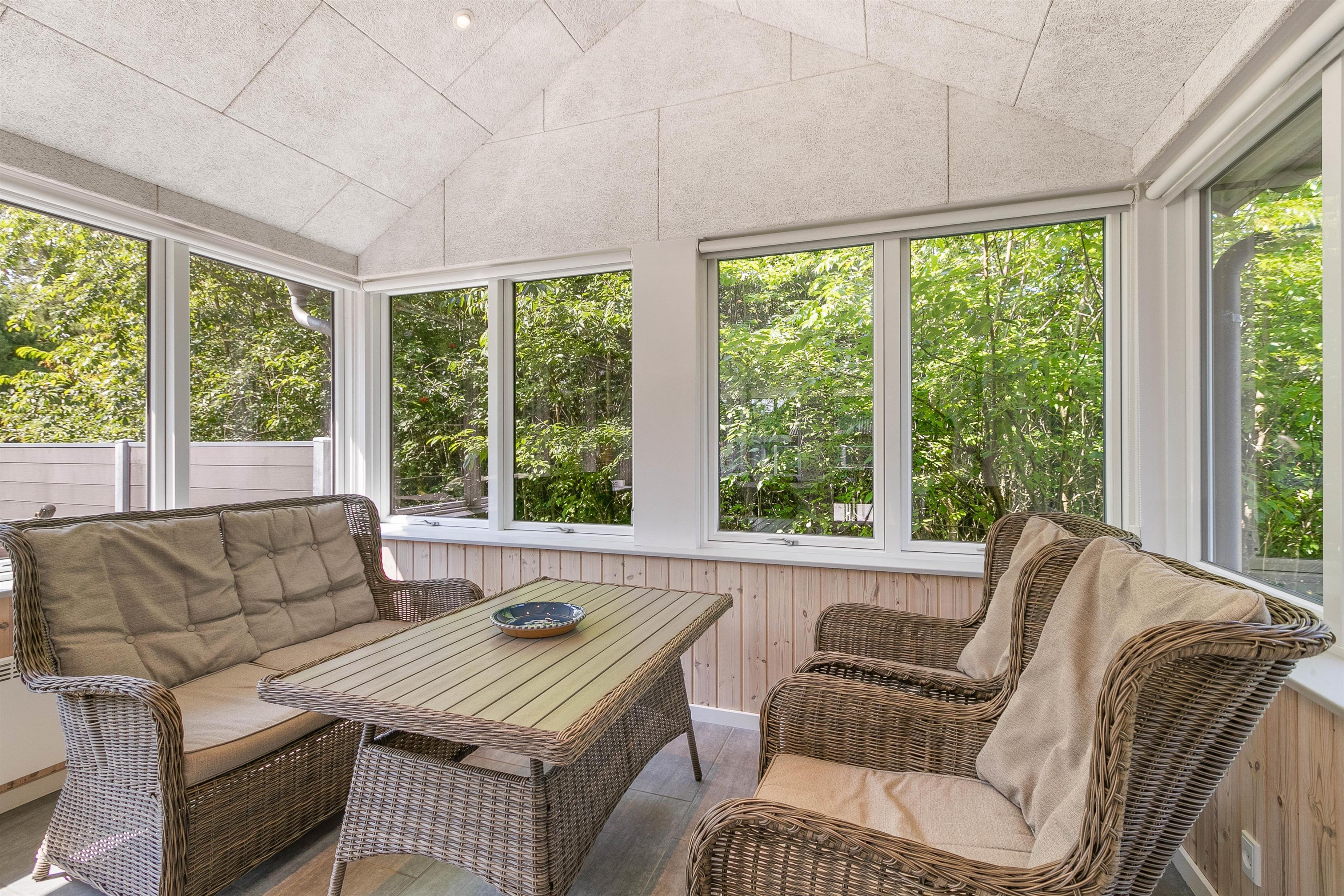 Den lyse og indbydende udestue er det ideelle sted at nyde morgenkaffen, mens solens første stråler blødt oplyser rummet. Her kan I sidde komfortabelt og nyde udsigten over den store grund, samtidig med at I er beskyttet mod vind og vejr. Uanset om det er sommer eller vinter, tilbyder udestuen et fredfyldt pusterum til at læse en god bog, nyde et hyggeligt brætspil med familien, reflektere over dagens oplevelser eller blot for at nyde den enestående natur.