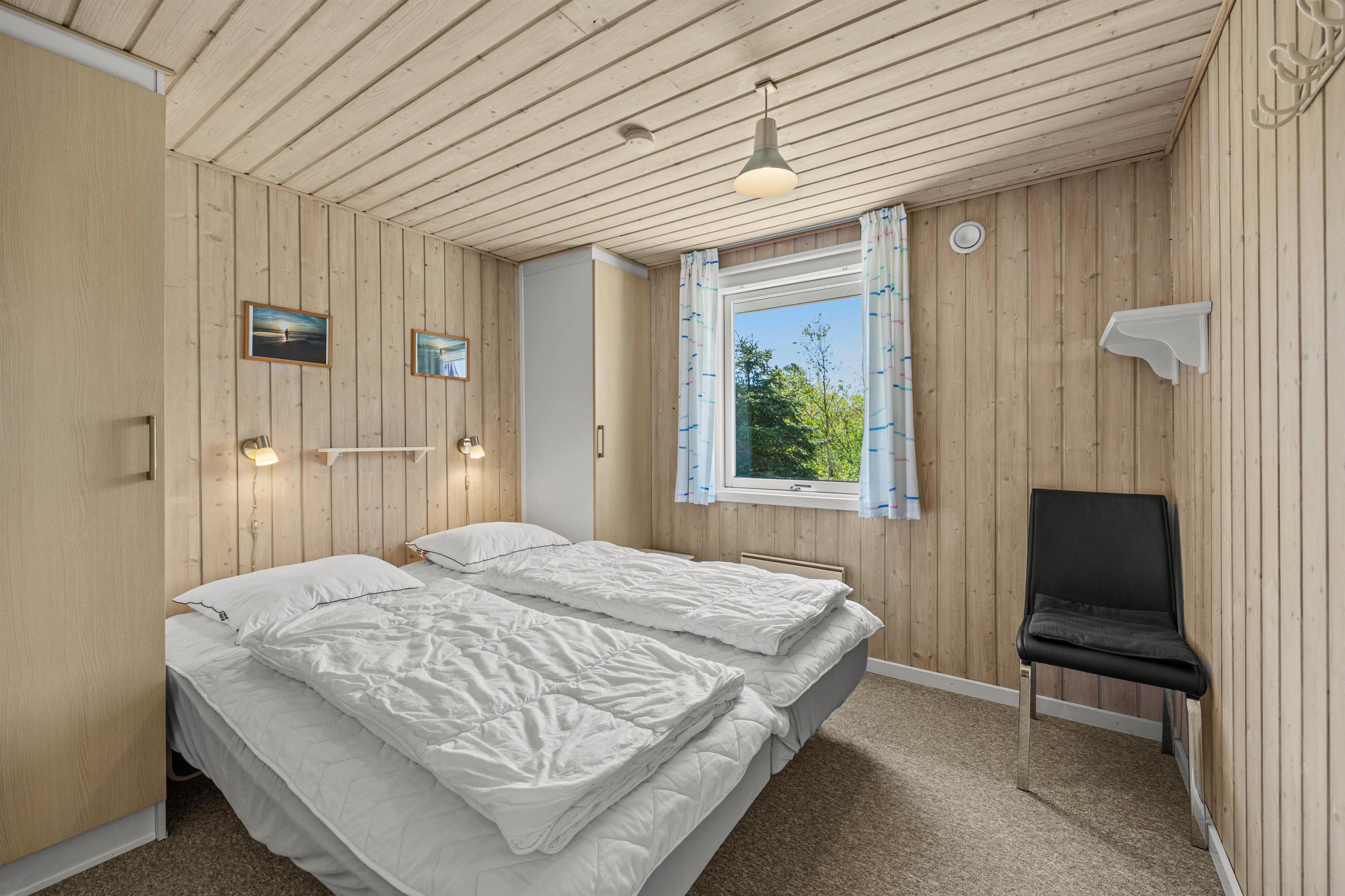 Her er 3 soveværelser, med gulvtæppe ligesom i resten af feriehuset. Her er I sikret en god nattesøvn, og her er skabe til opbevaring. Badeværelset er udstyret med gulvvarme, alrummet med en energibesparende varmepumpe, og opvaskemaskinen klarer oprydningen for jer! Praktisk er her også en vaskemaskine, hvis strandhåndklæderne skal opfriskes undervejs.