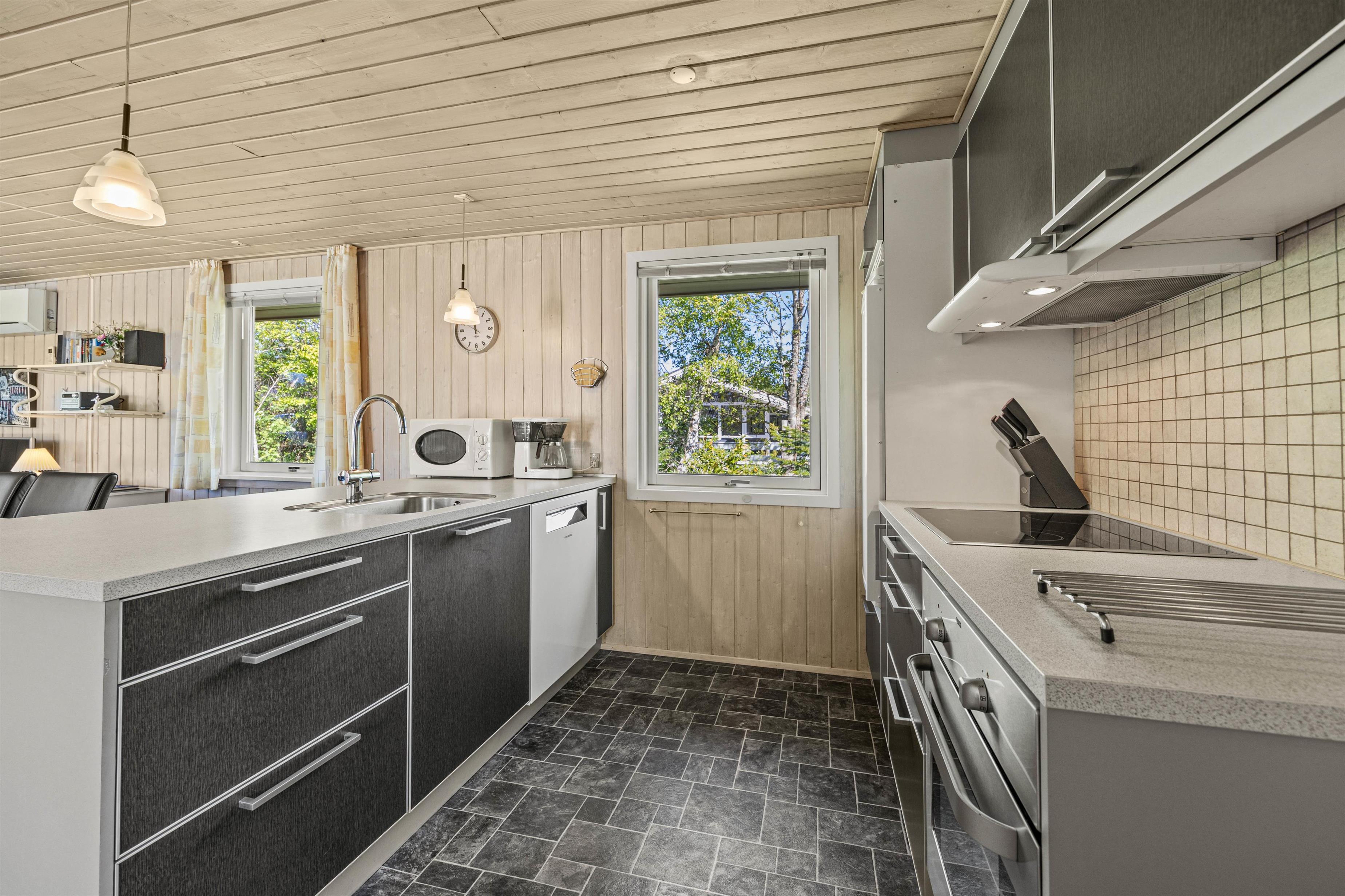 Med sine 75 m2 er der fint plads til 5 glade feriegæster på Lunden 6. Feriehuset er hyggeligt og enkelt indrettet, vinduerne inviterer dagslyset indenfor og har et åbent køkken/opholdsrum til familielivet. Brændeovnen er centralplaceret, så den både kan nydes fra stuen og fra køkkenet. Sid her med en god bog, en friskbrygget kop kaffe og mærk brændeovnens varme brede sig – dét er ægte sommerhushygge!