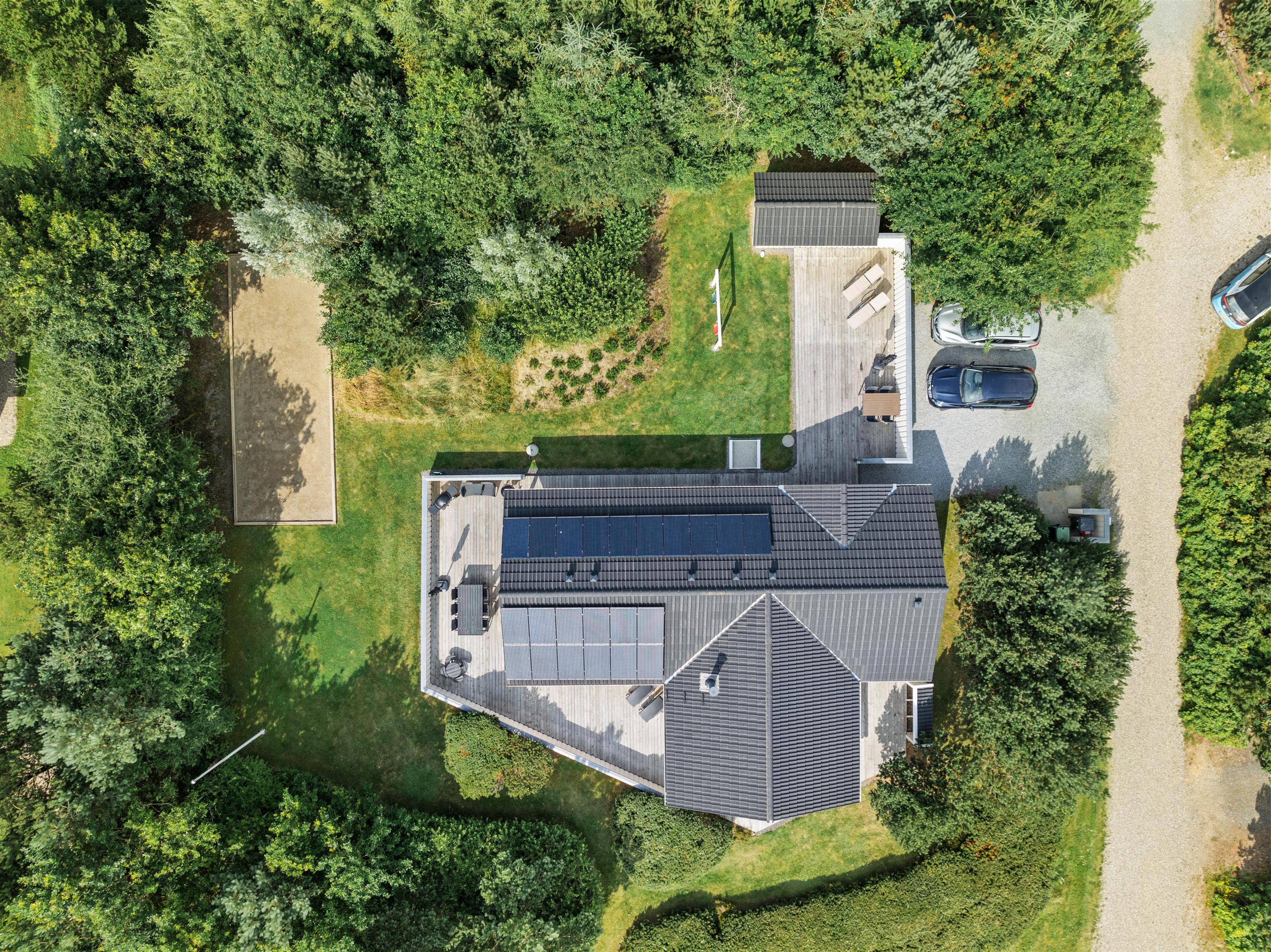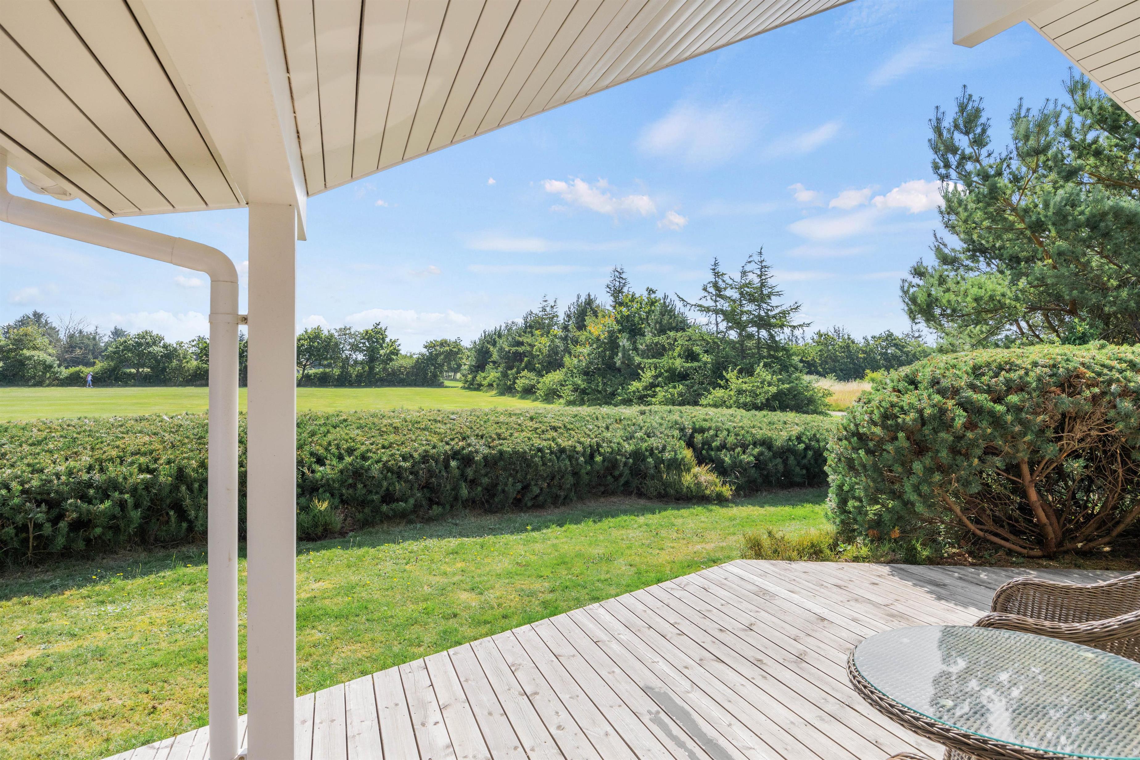 Sommerhusets terrasse strækker sig fra østsiden, mod syd, til vestsiden, og inviterer til solbadning og hyggelige grillaftener under åben himmel. Terrassen er delvist overdækket og afskærmet, så I har mulighed for at sidde i læ for lidt vind eller en lille regnbyge på en ellers lun sommerdag. Desuden er der anlagt en flot petanque-bane.