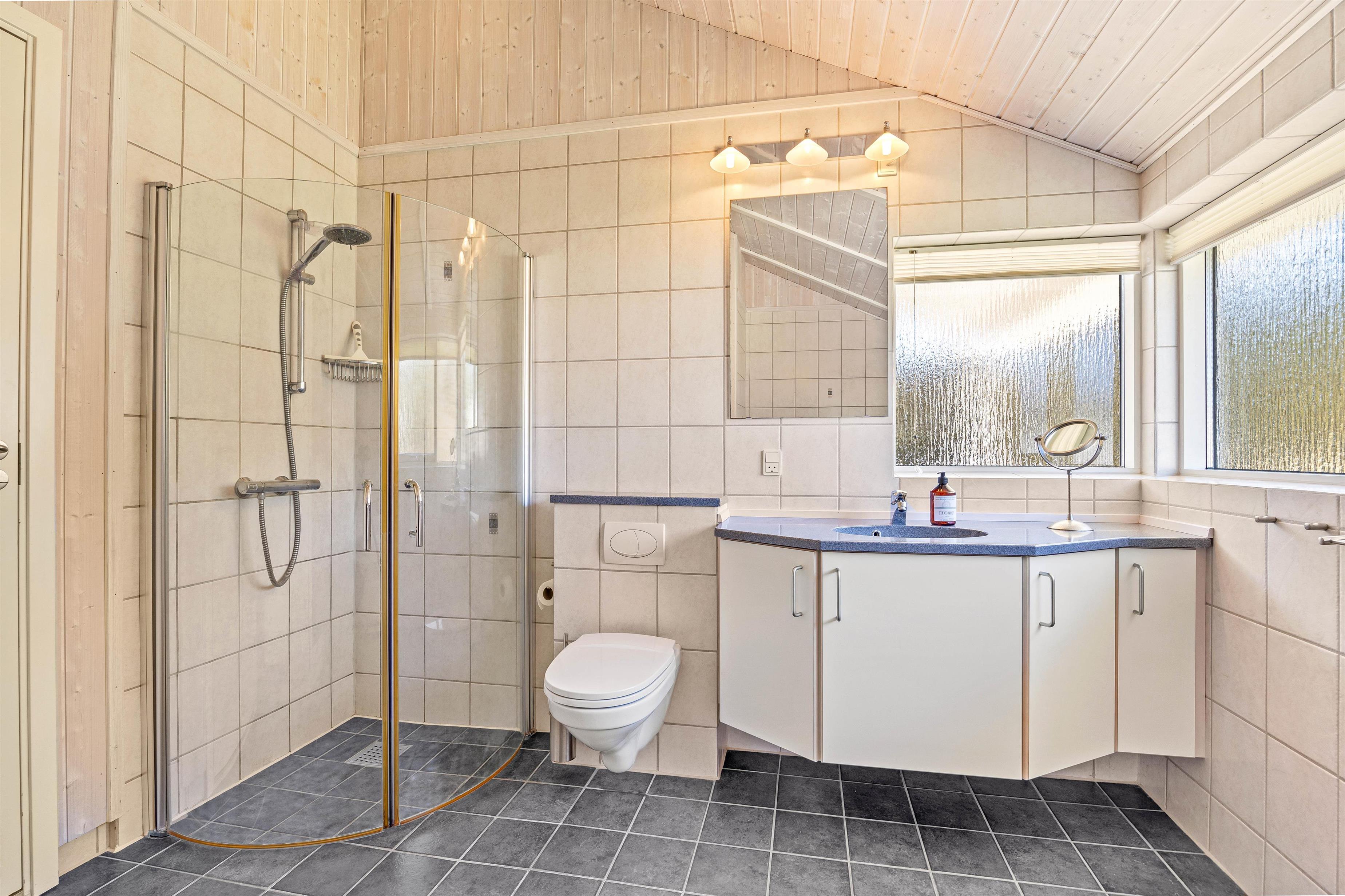 Dette sommerhus har 2 badeværelser, begge udstyret med gulvvarme. På det største badeværelse finder I endda et spabad og en sauna, hvor I kan nyde en afslappende stund i det boblende vand efterfulgt af en varm tur i saunaen. I det ene badeværelse finder I også en combi vaskemaskine/tørretumbler.