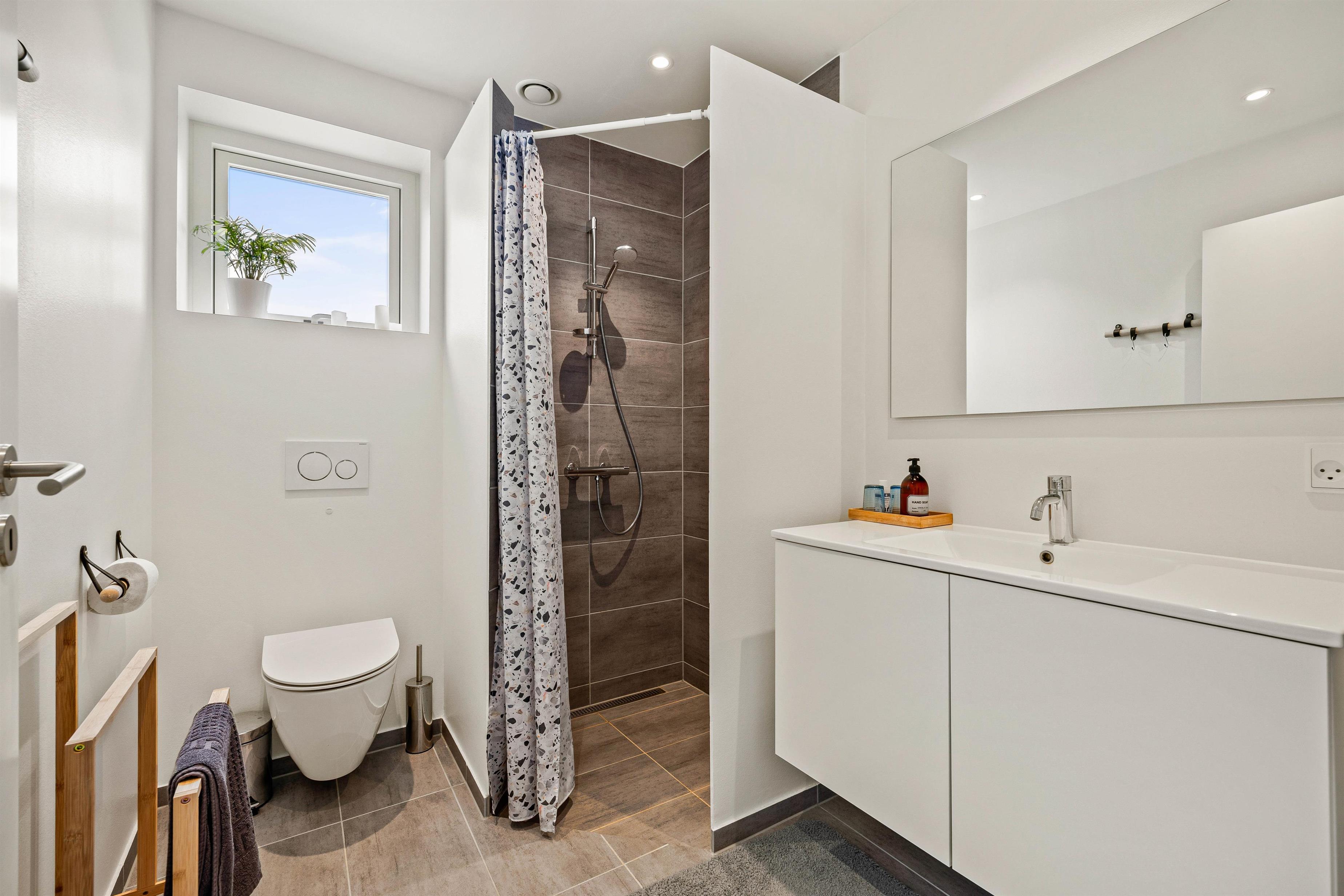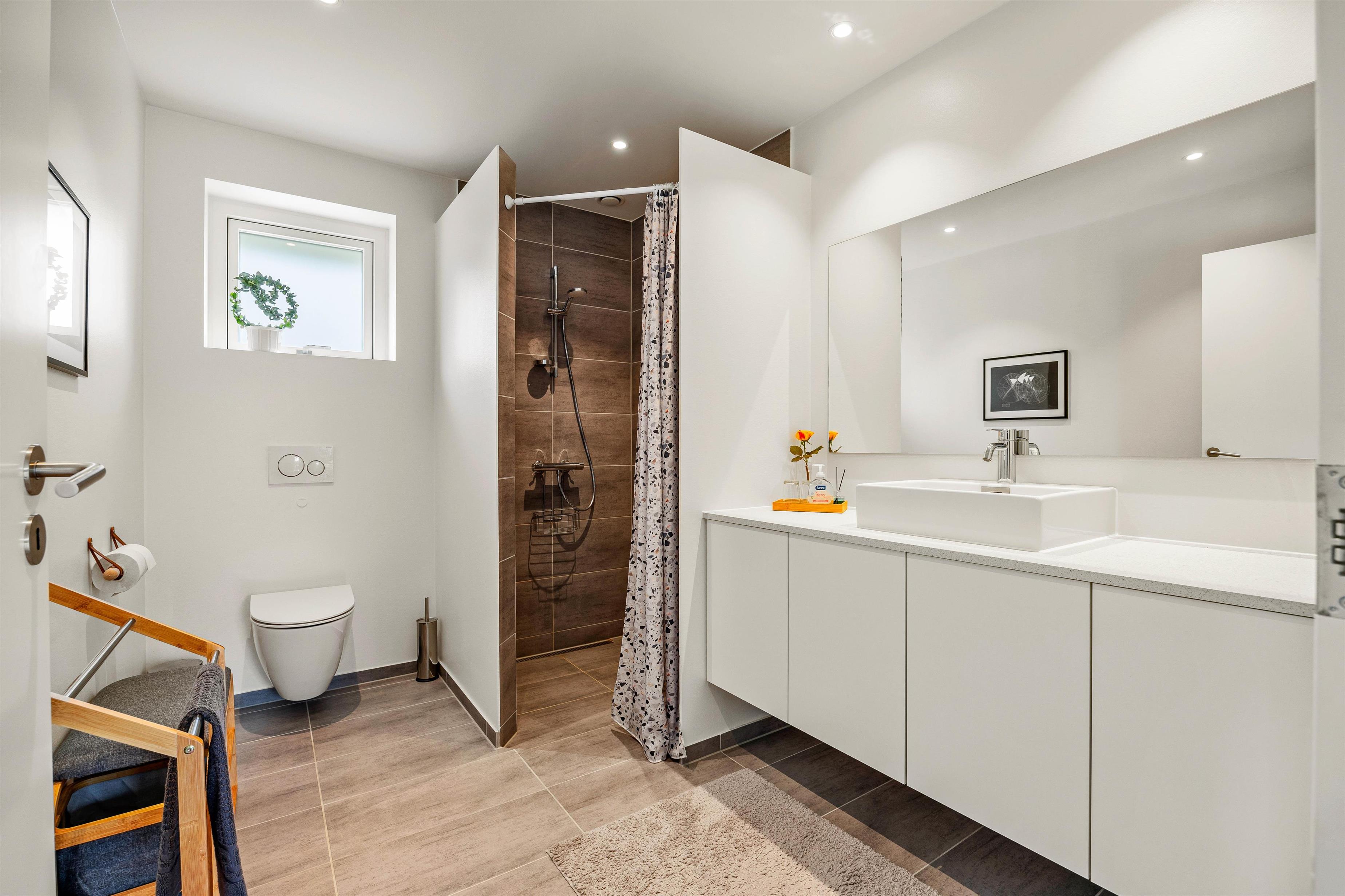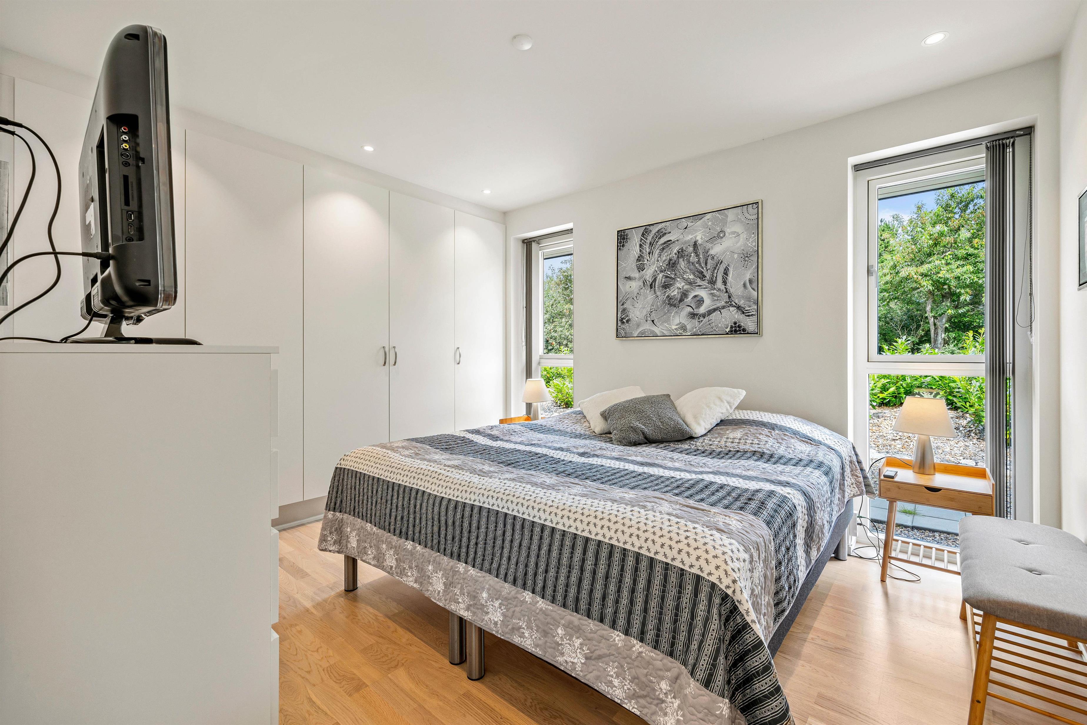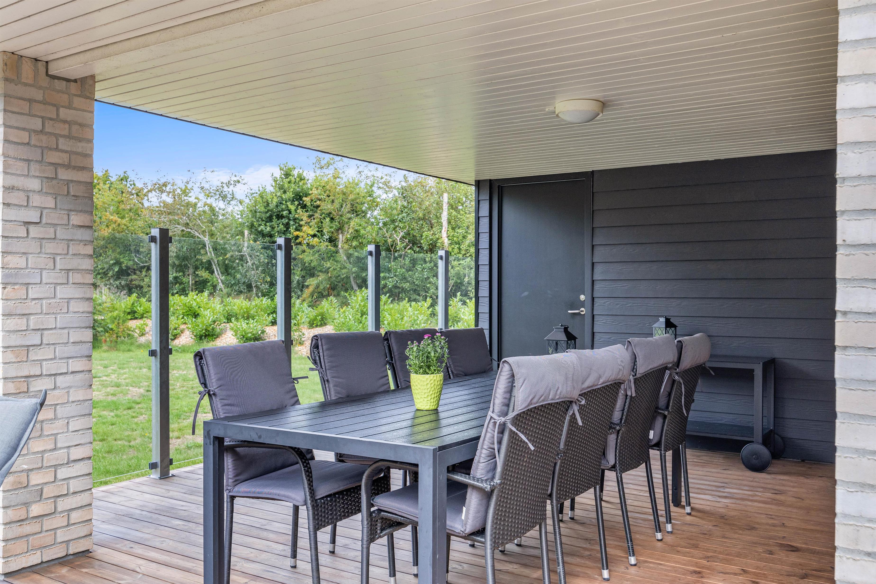 Den store plænegrund har både solvogne og havemøbler, som I kan stille til rette på den 70 kvadratmeter åbne terrasse. Hvis I foretrækker skyggen, er der også 20 kvadratmeter overdækket terrasse. Om aftenen kan I sidde her med gasgrillen, uanset om det skulle smådryppe.