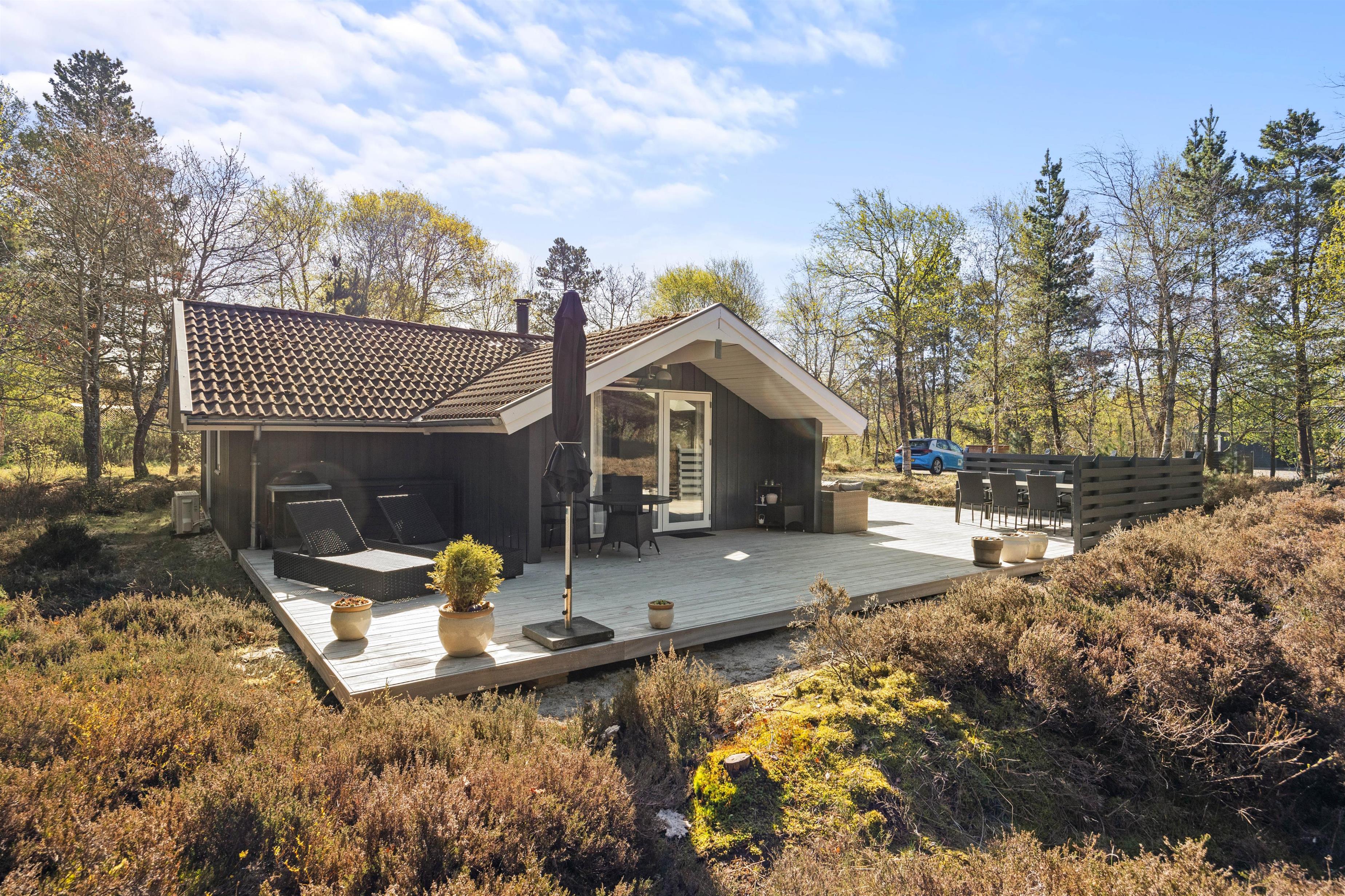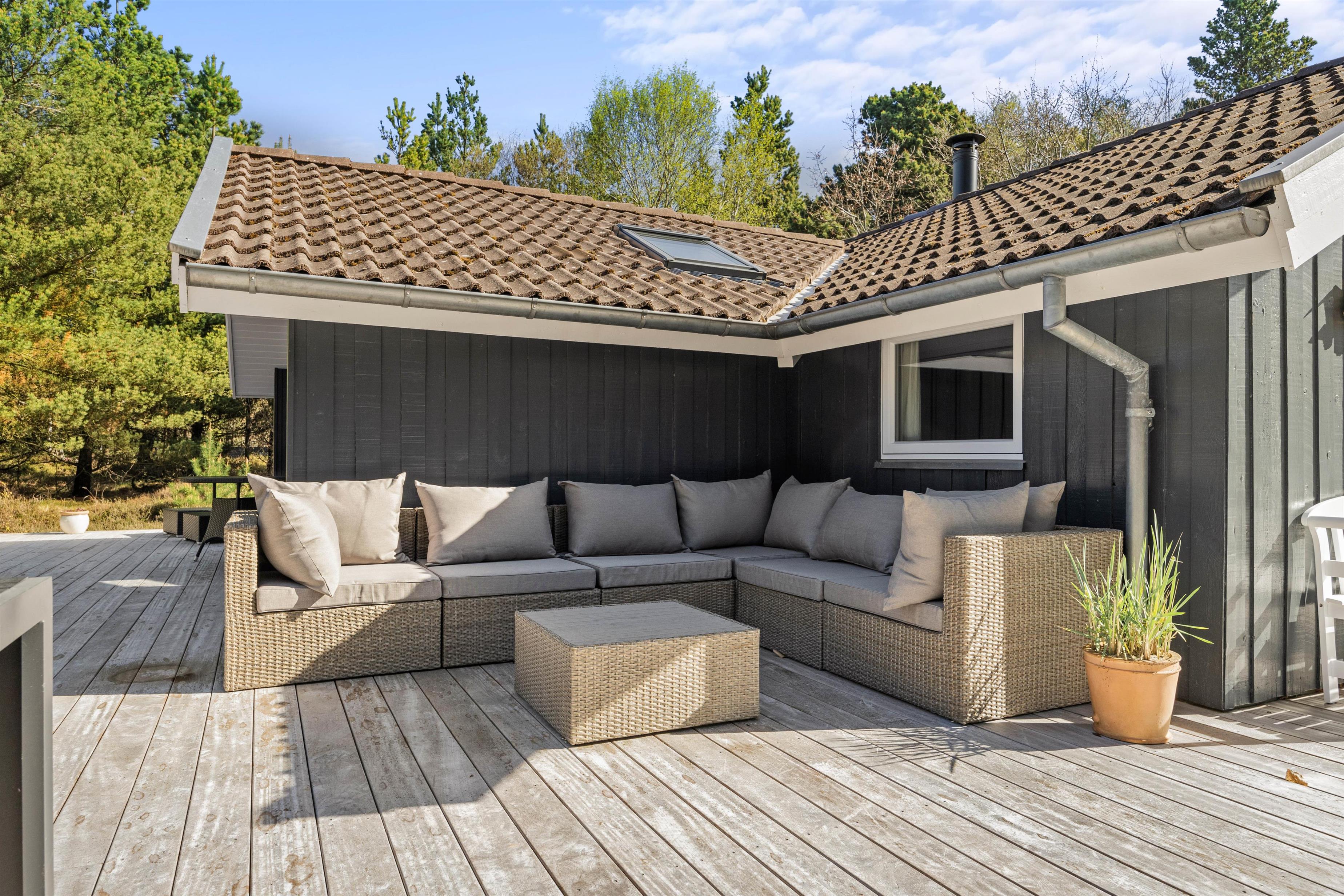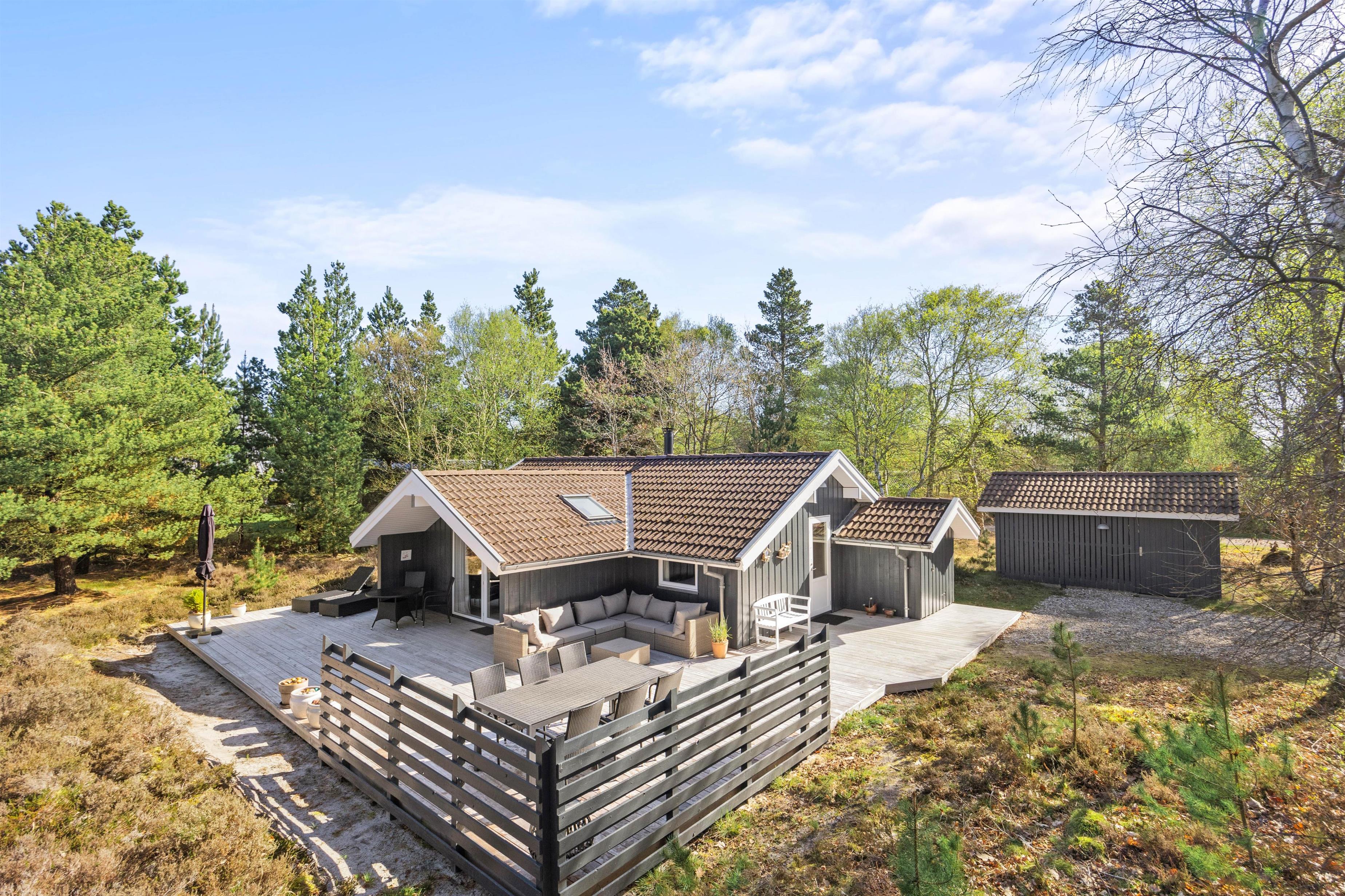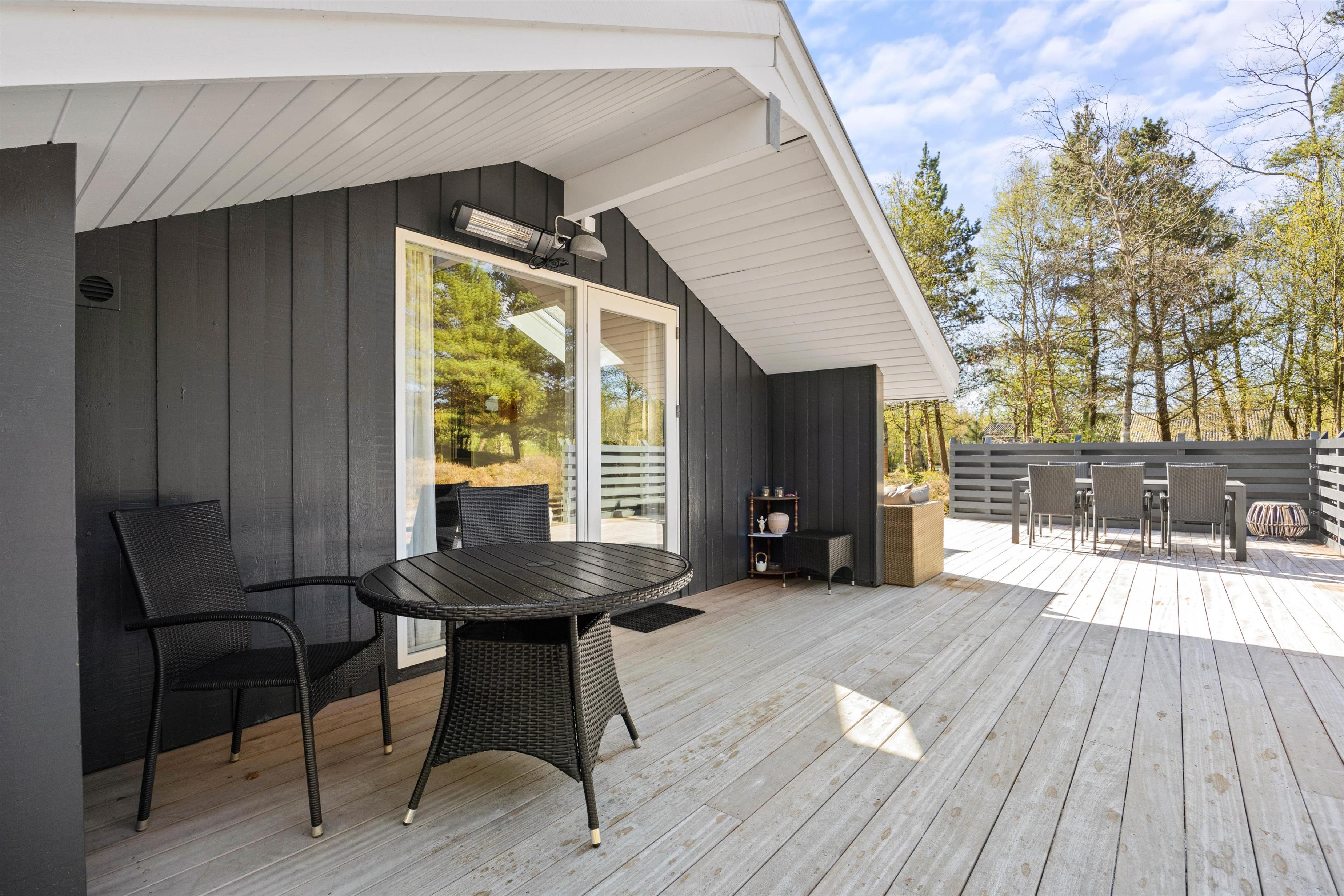 Forestil jer, hvor hyggeligt det er, at sidde i læ på den overdækkede terrasse med jeres morgenkaffe og nyde lyden af fuglesang. Om aftenen sidder I der måske endnu eller igen i dæmringen med grillen tændt og nyder stilheden og dagens afslutning med et glas vin eller en varm drik?