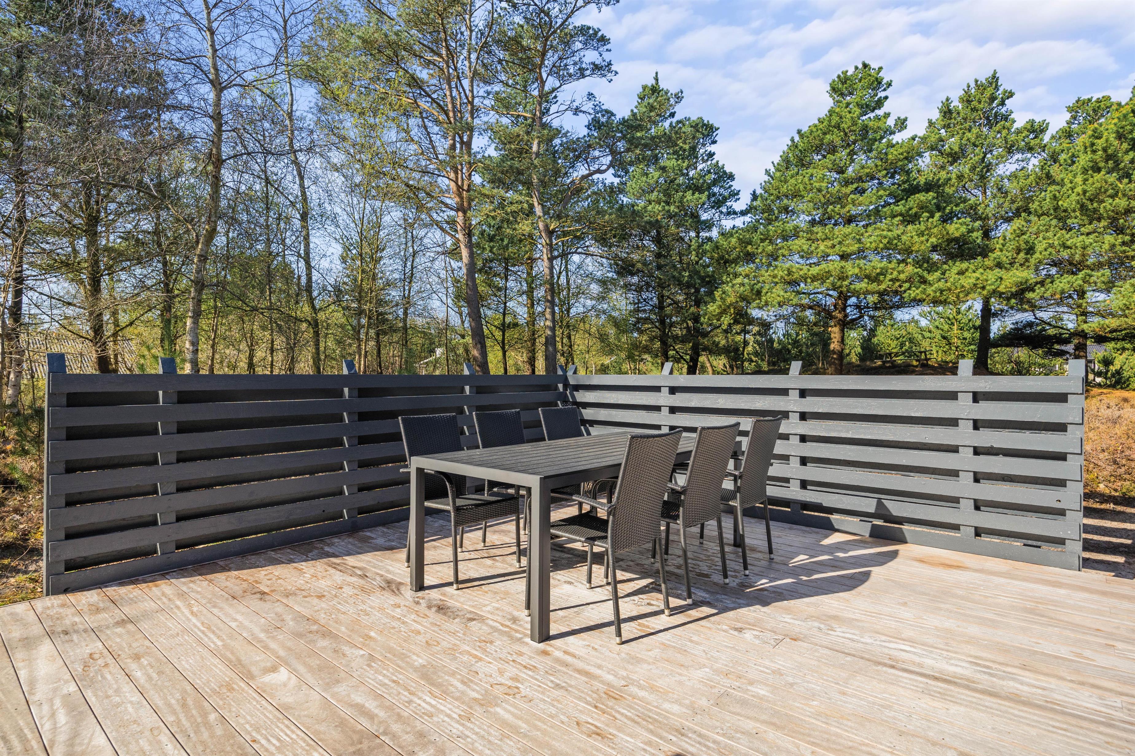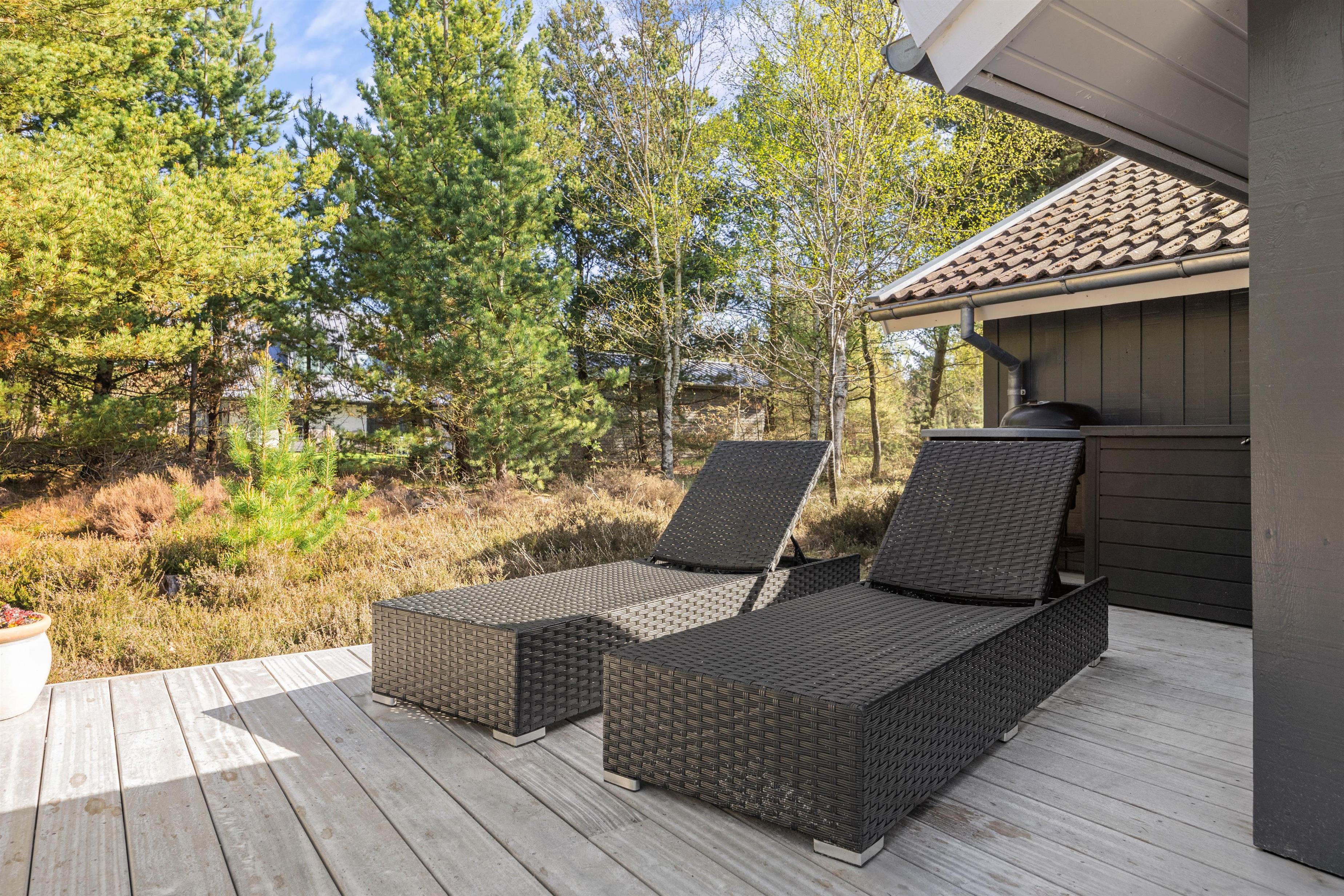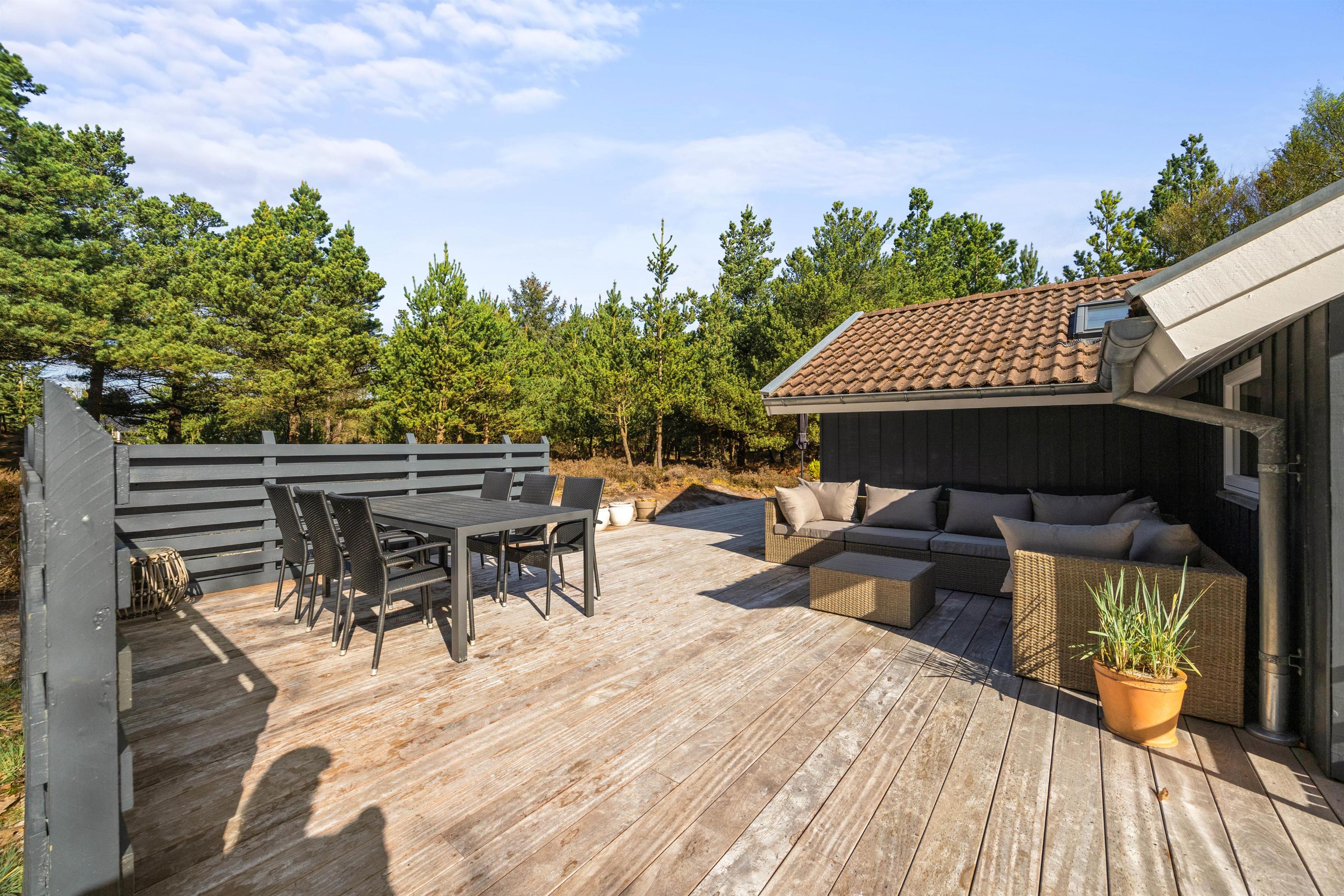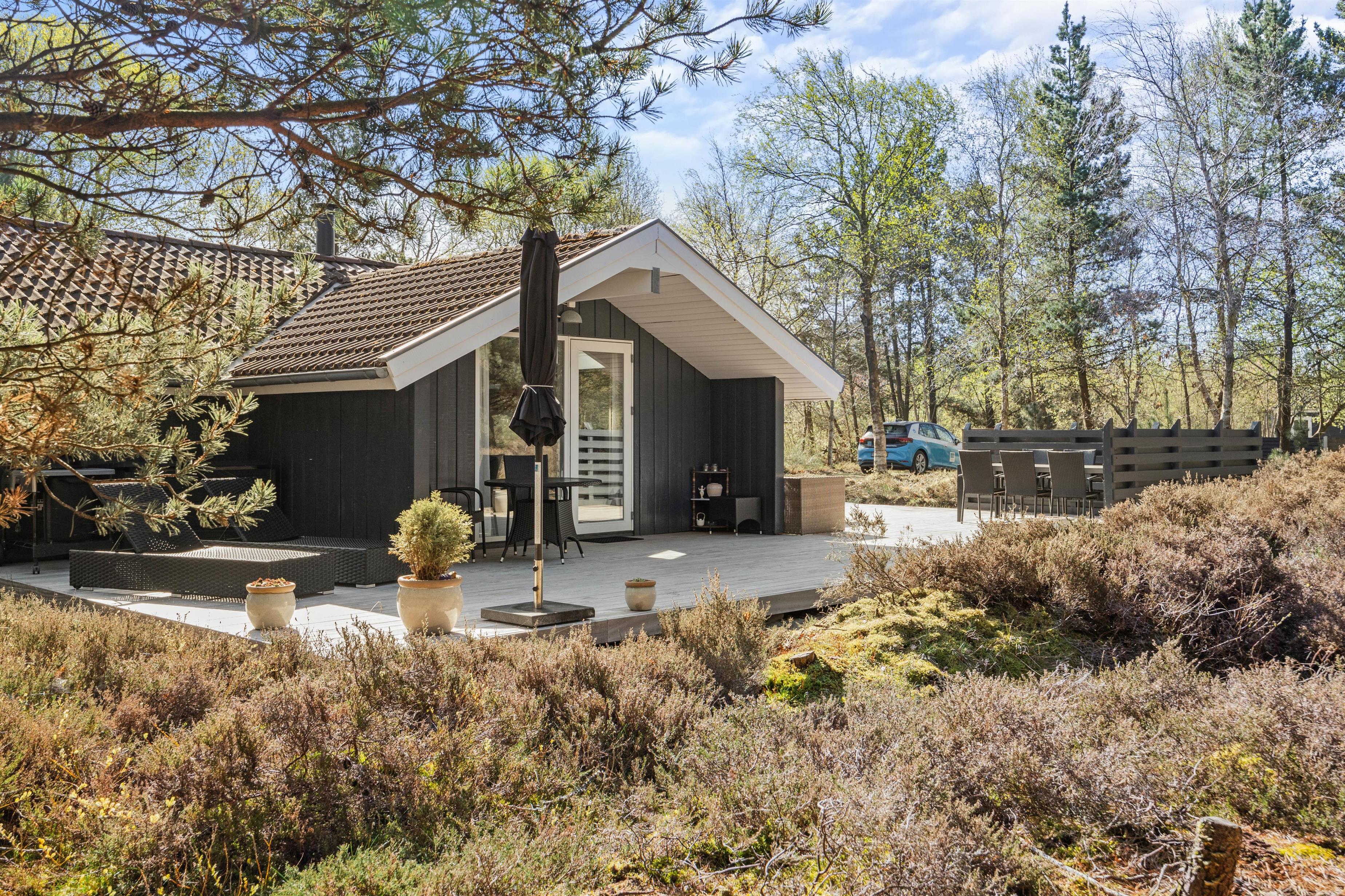 Forestil jer, hvor hyggeligt det er, at sidde i læ på den overdækkede terrasse med jeres morgenkaffe og nyde lyden af fuglesang. Om aftenen sidder I der måske endnu eller igen i dæmringen med grillen tændt og nyder stilheden og dagens afslutning med et glas vin eller en varm drik?