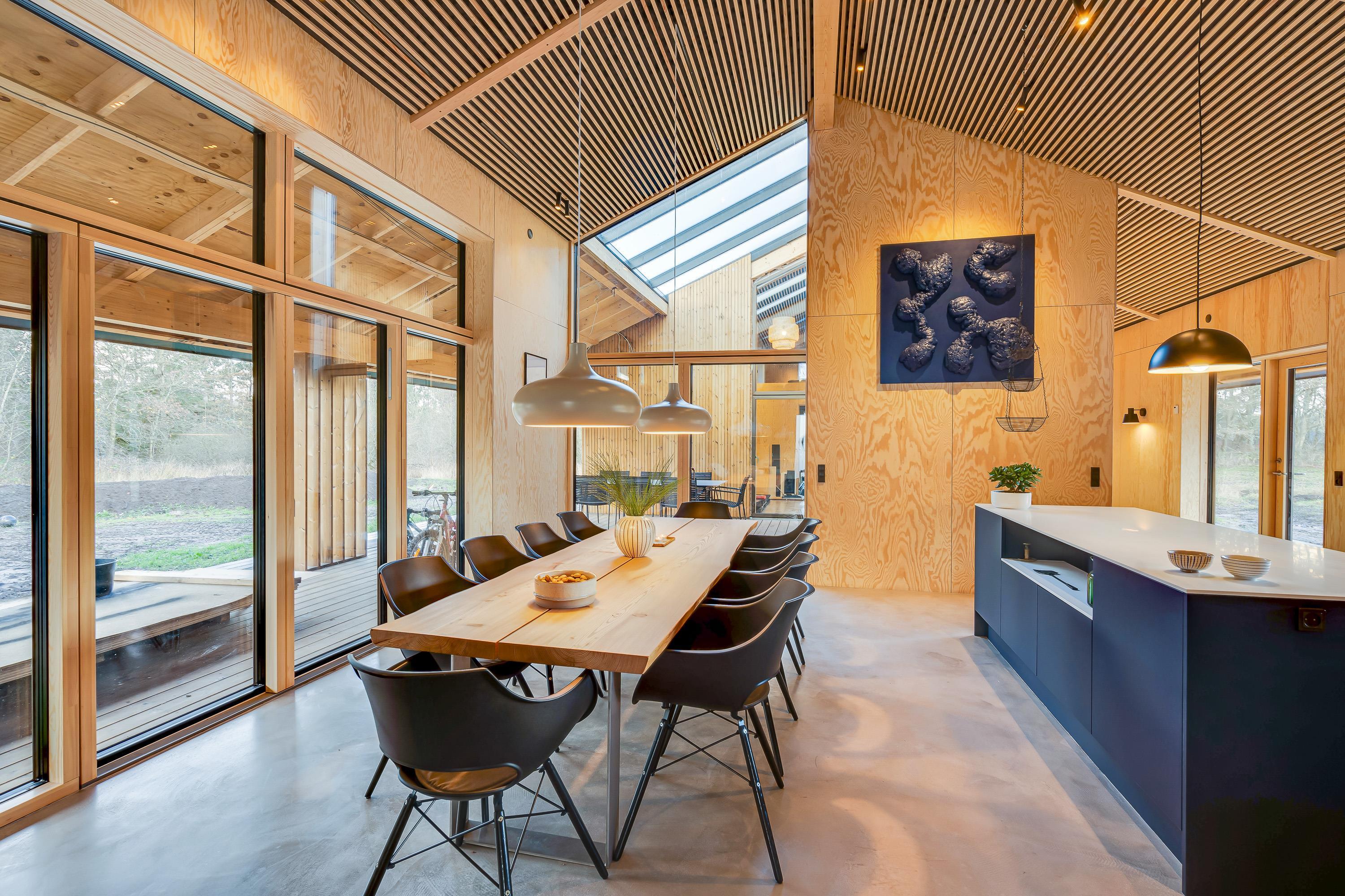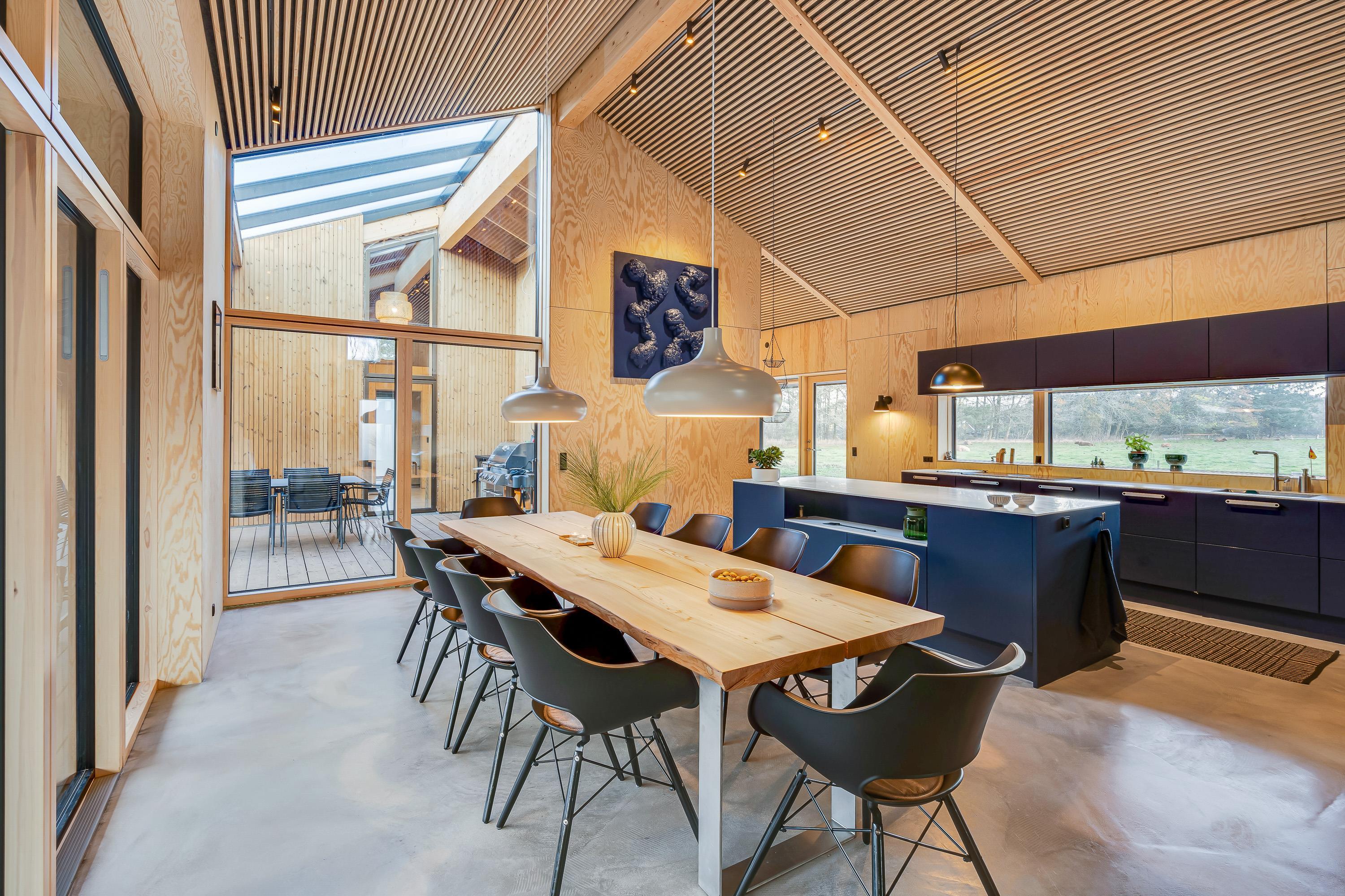 Sommerhuset er indrettet med komfortable og moderne møbler. Desuden er der også gode praktiske faciliteter – vaskemaskine, opvaskemaskine og tørretumbler i sommerhuset, som letter husarbejdet for jer på ferien.