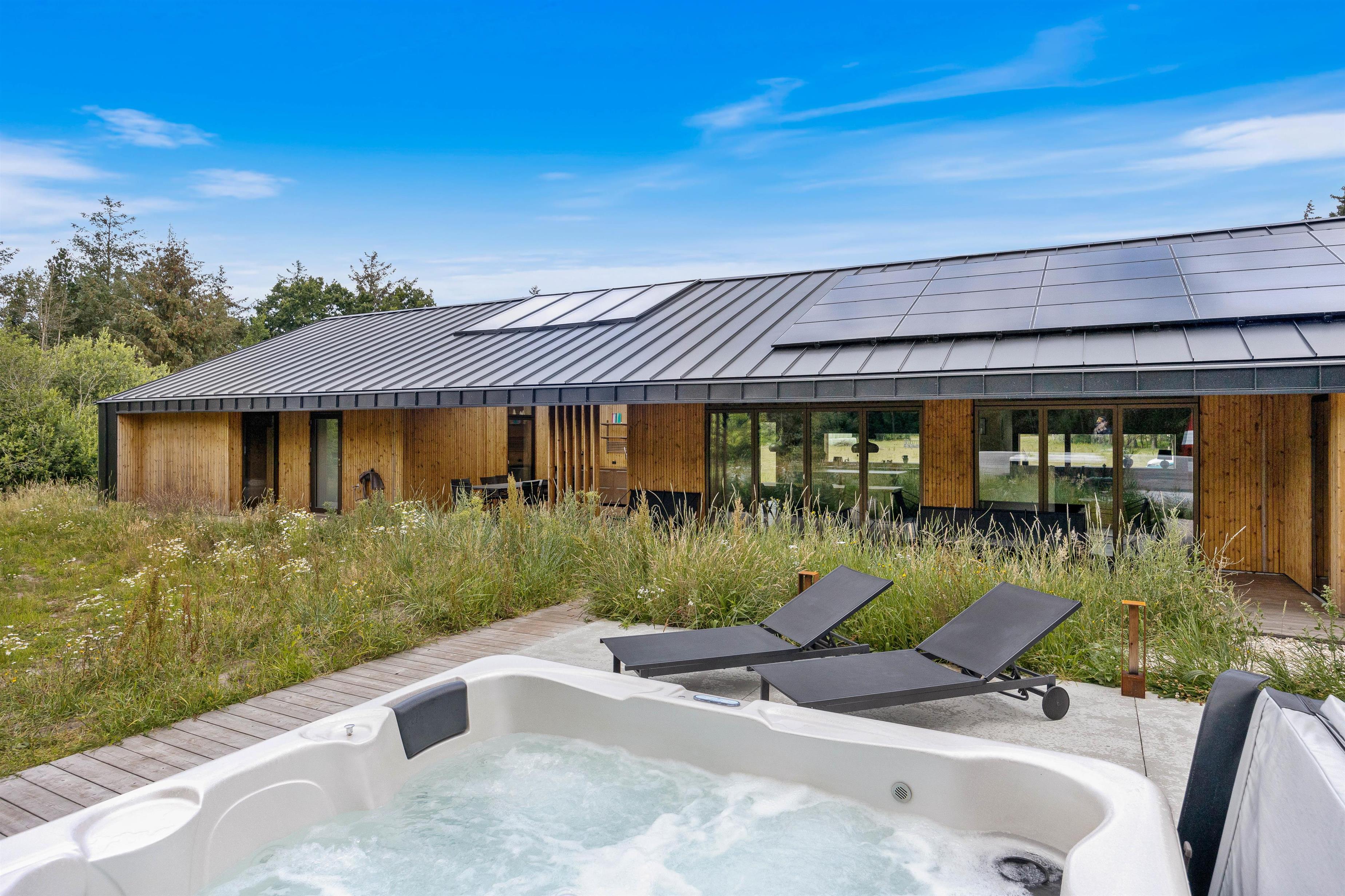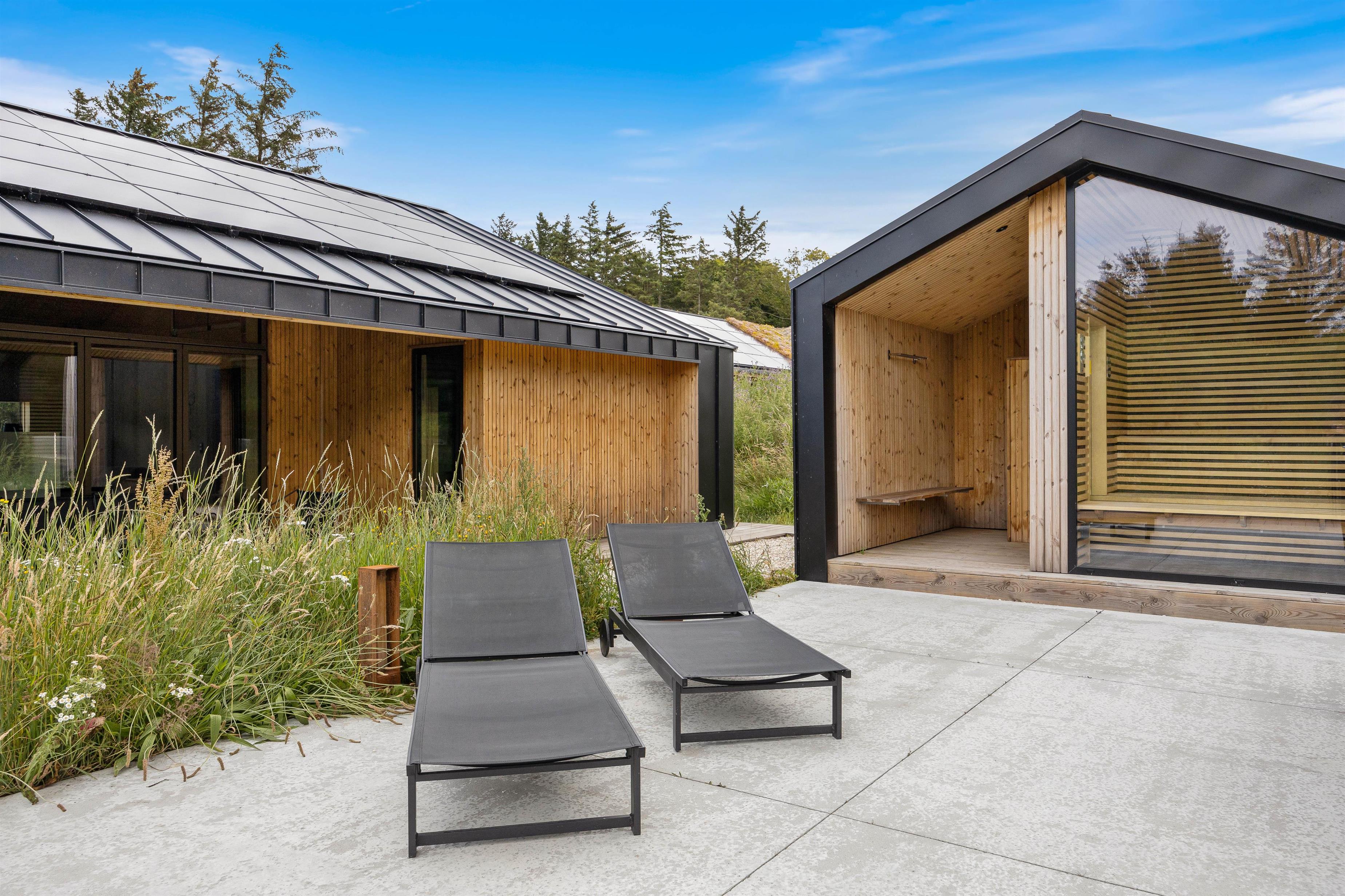 På Strandgodsvej 17 i Henneby står dette lækre luksusferiehus klar til jeres næste ferie. I sommerhuset er der plads til op til 8 personer, og derfor er det et oplagt valg, hvis I er 2 familier eller en vennegruppe, der vil på ferie sammen. Det nybyggede (2022) sommerhus byder på lækre wellnessfaciliteter i form af udespa, udesauna og udebruser, der forkæler jer med ekstra afslapning på ferien. I feriehuset er 1 hund også velkommen.