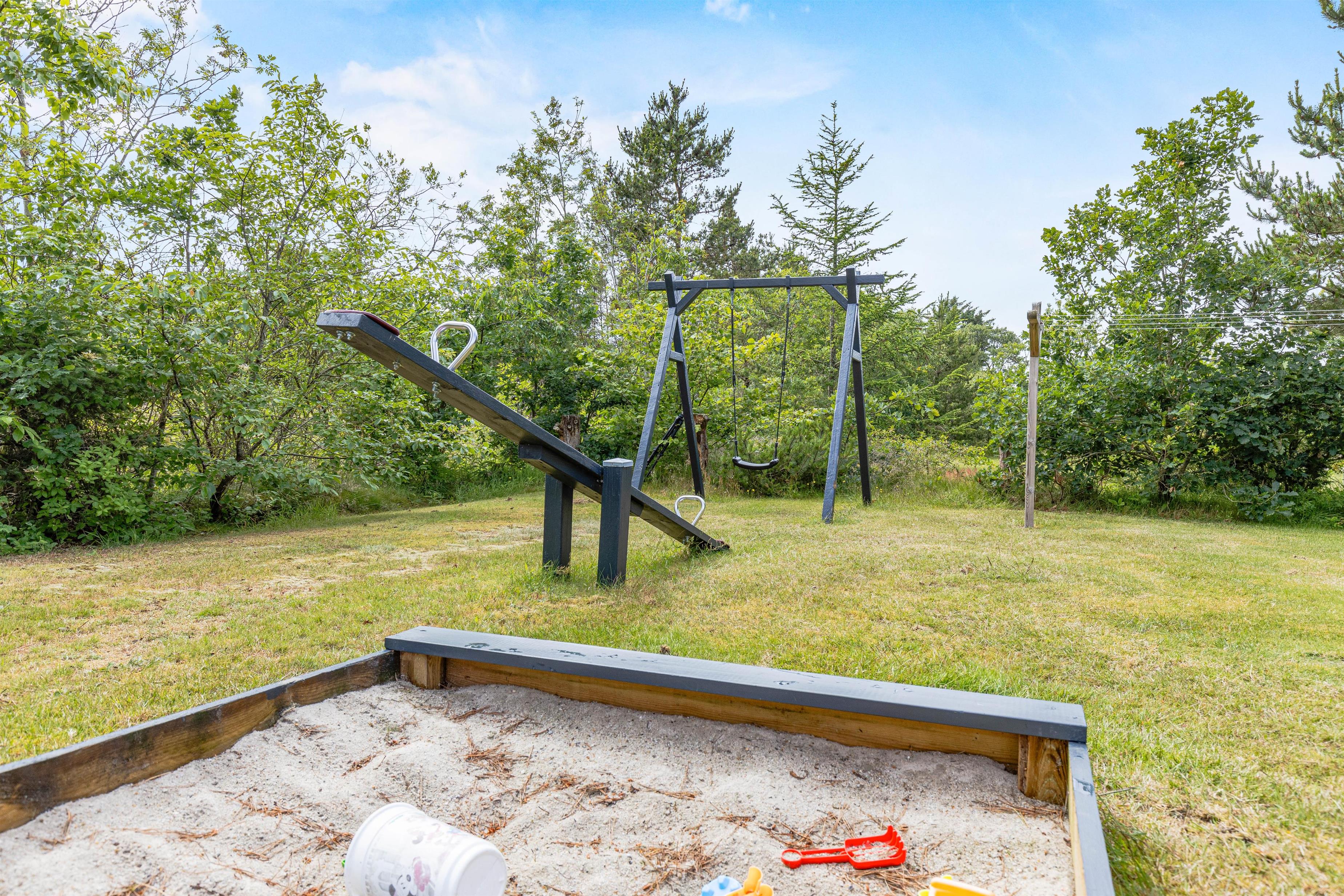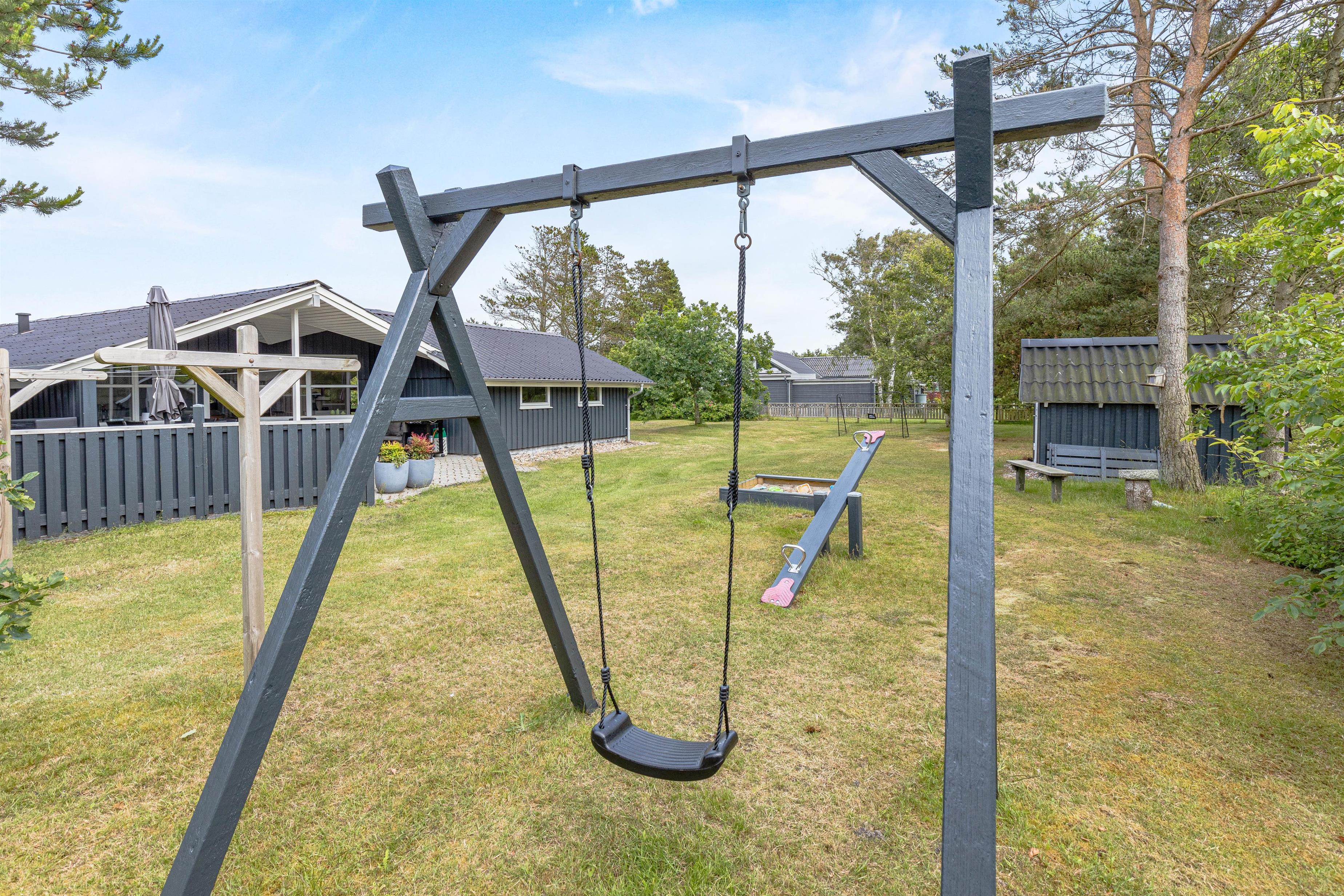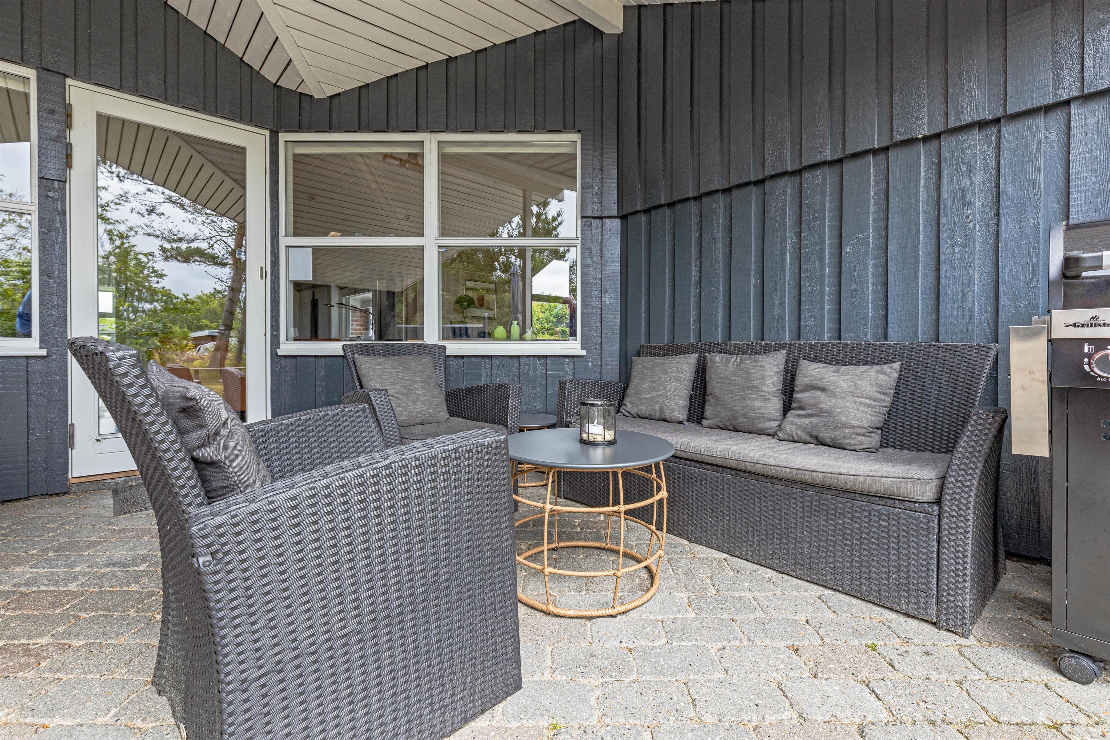 På den skønne og delvist overdækkede terrasse kan I nyde hver eneste solstråle. Mens I læner jer tilbage i liggestolene, kan børnene få lov til at lege og spille bold på den store græsplæne.