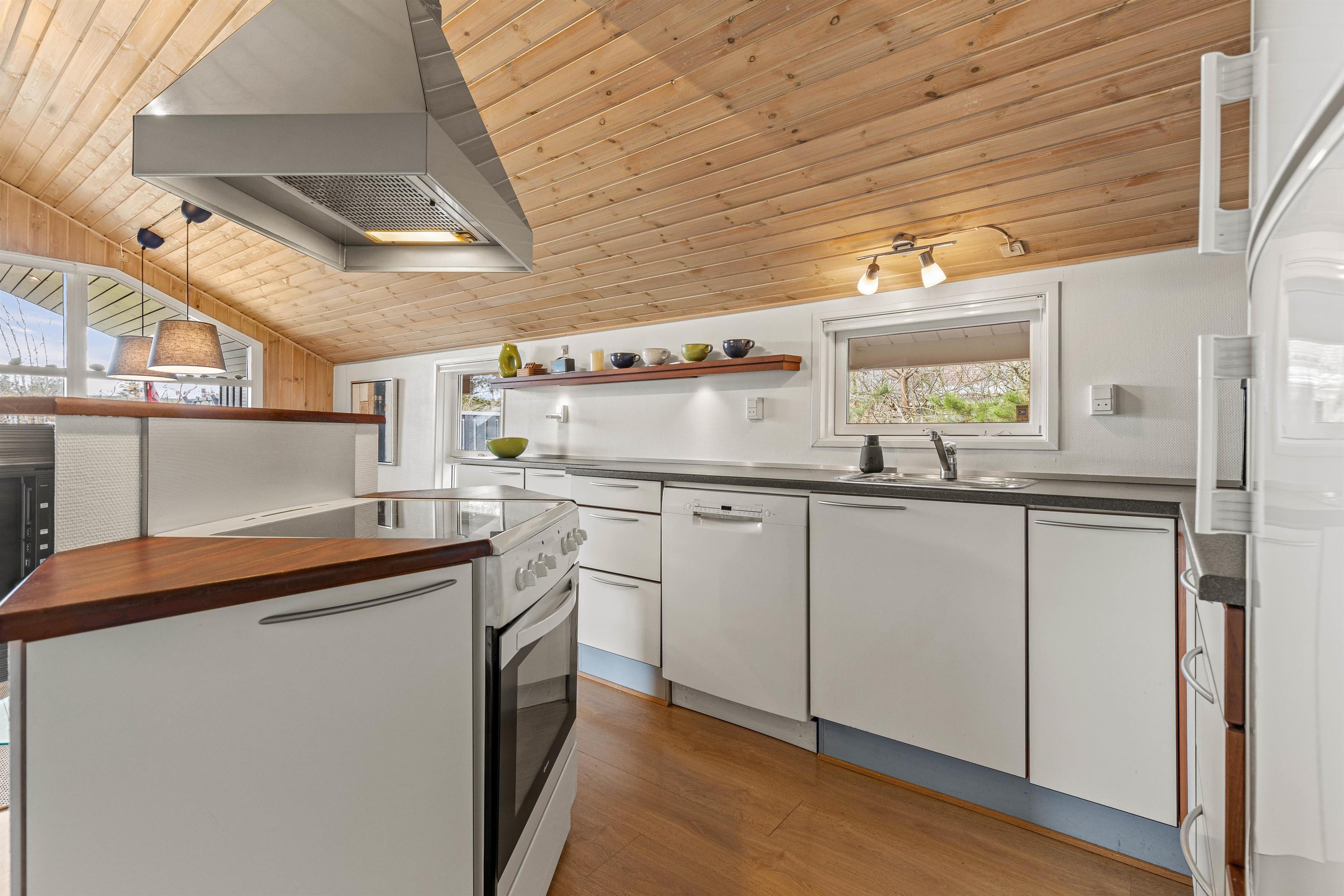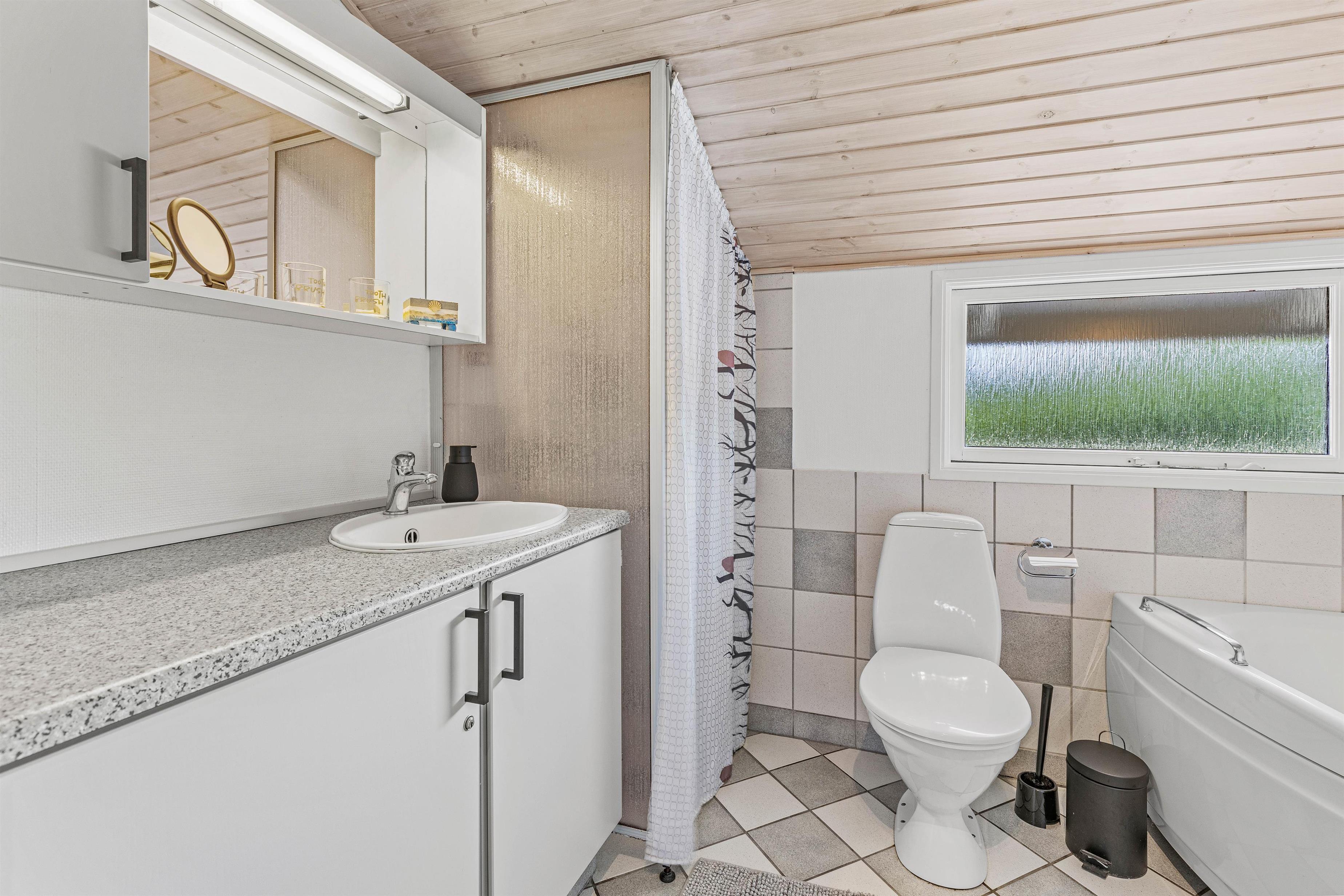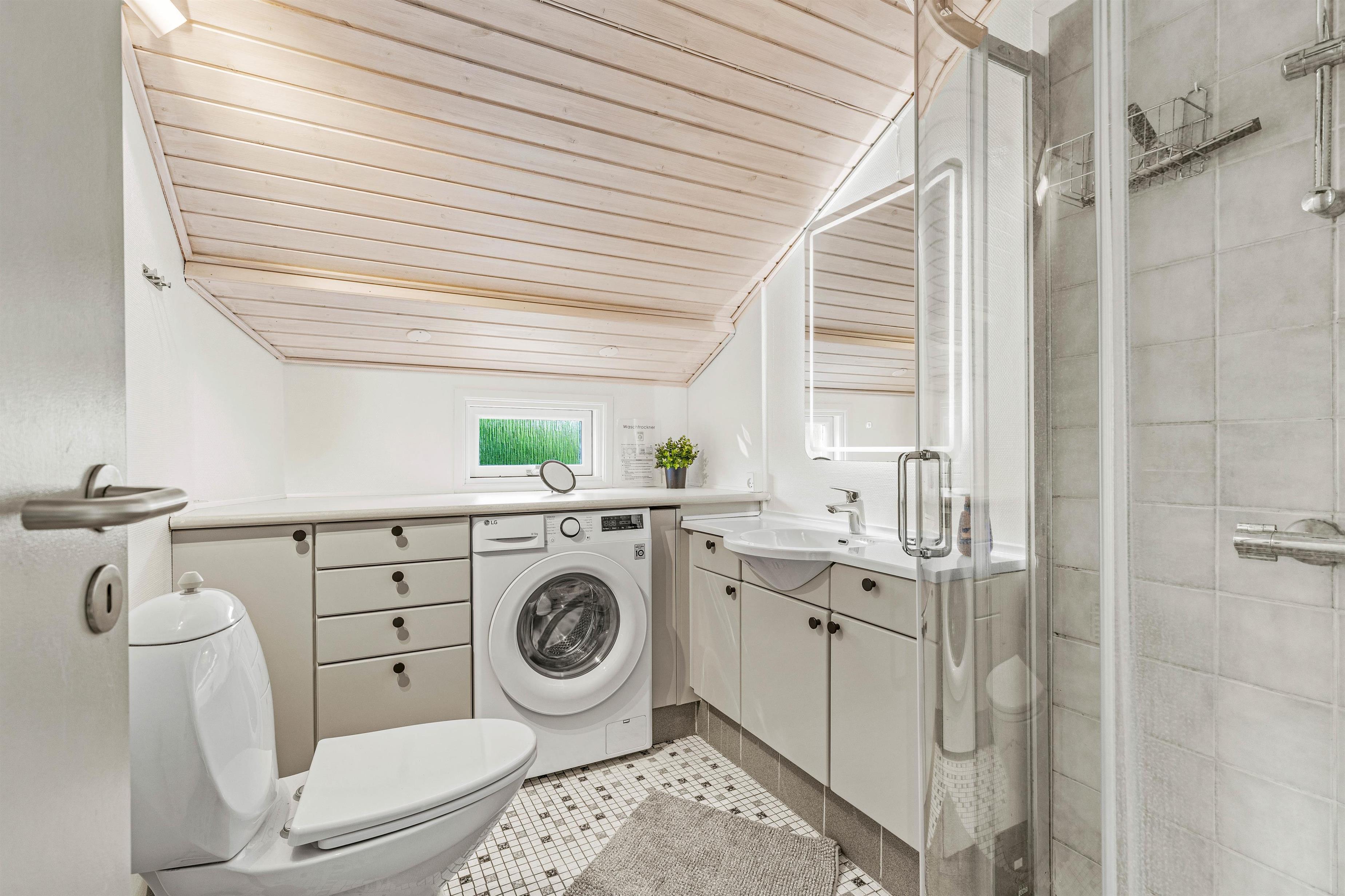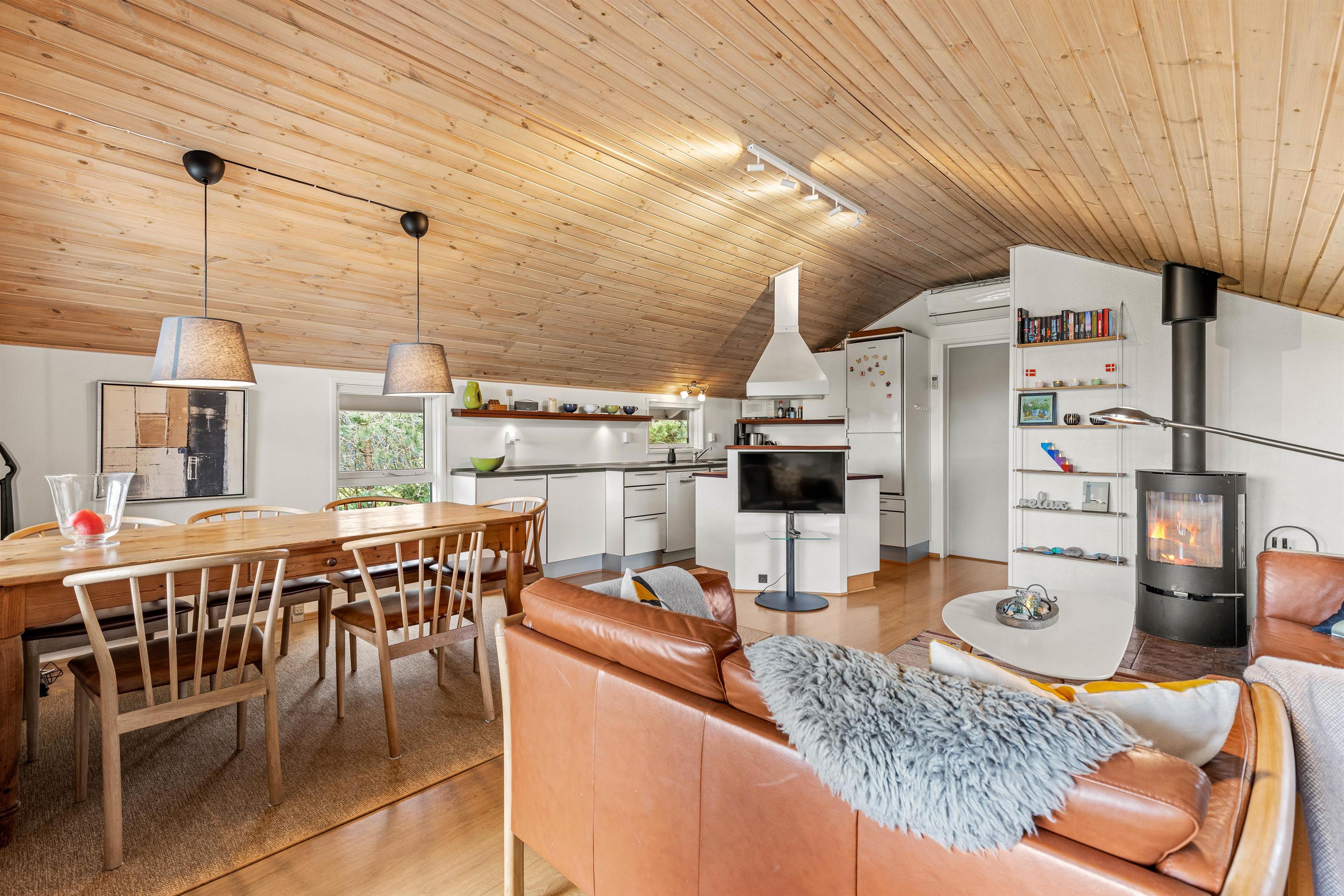Her er plads til 7 personer, og med 2 badeværelser med bruser slipper I for de lange toiletkøer om morgenen, når der skal gøres klar til en ny feriedag. I det største badeværelse finder I også både et spabad og en sauna, hvor I rigtig kan koble af og glemme hverdagens stress.