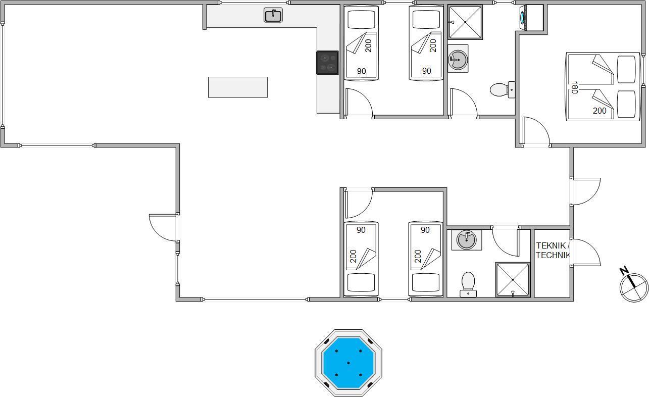 De 6 sovepladser er fordelt på 3 soveværelser, hvor 2 af værelserne er med enkeltmandssenge og det største værelse med dobbeltseng. Perfekt til at sikre den gode nattesøvn på jeres ferie. Her er der også gulvvarme, som holder jeres fødder varme. Desuden har sommerhuset hele 2 badeværelser, hvor begge er med gulvvarme. Vi garanterer dermed næsten, at der ingen kø bliver til toilettet.