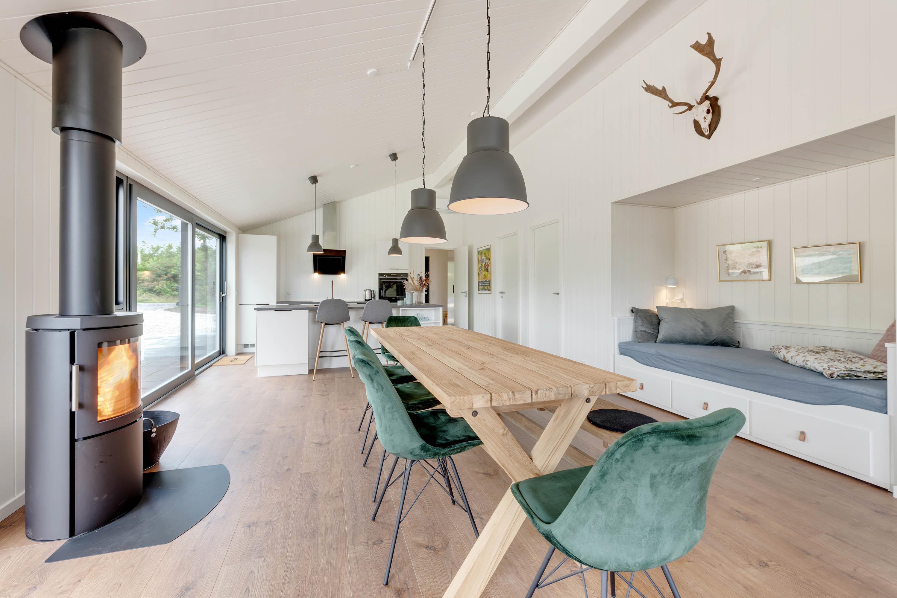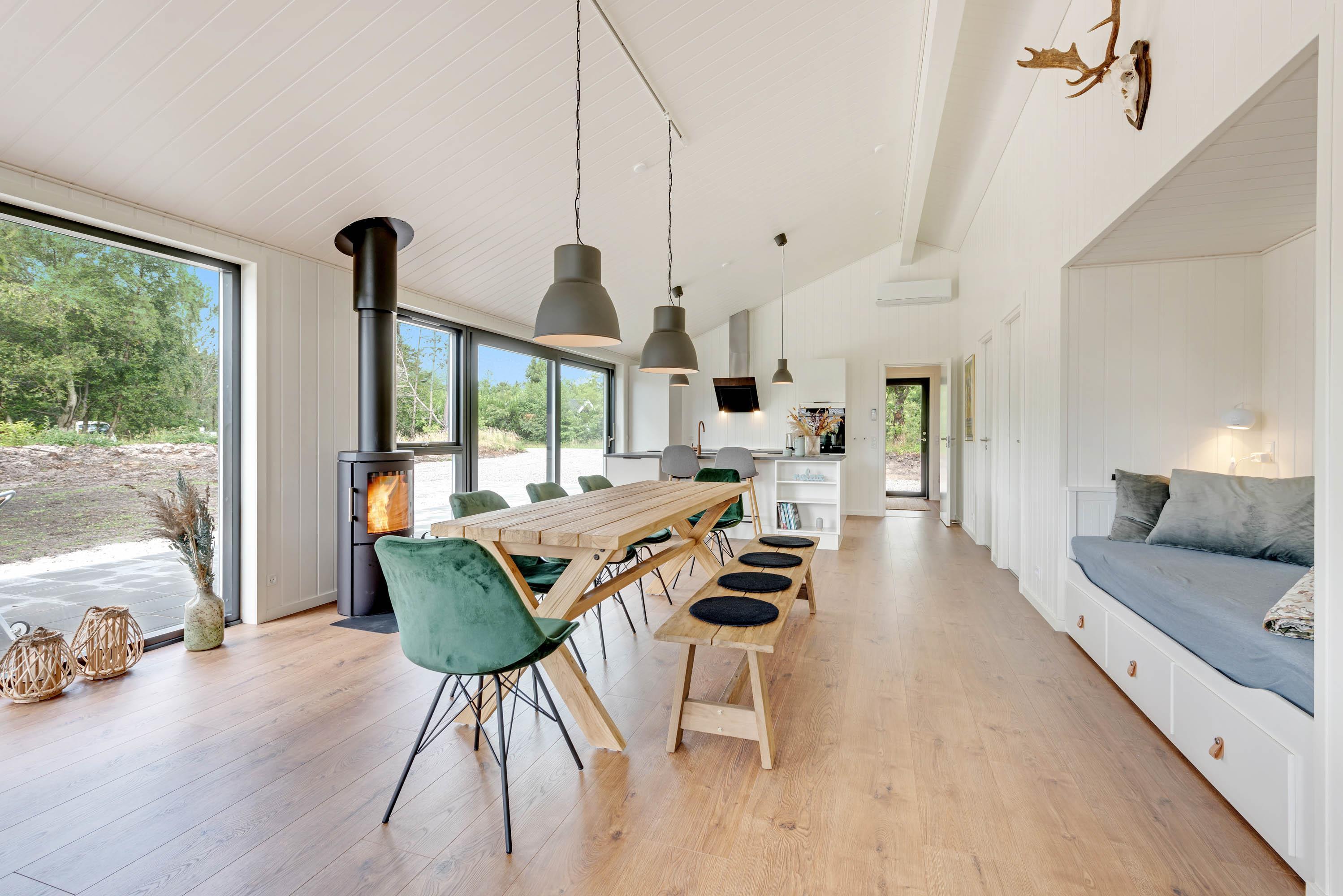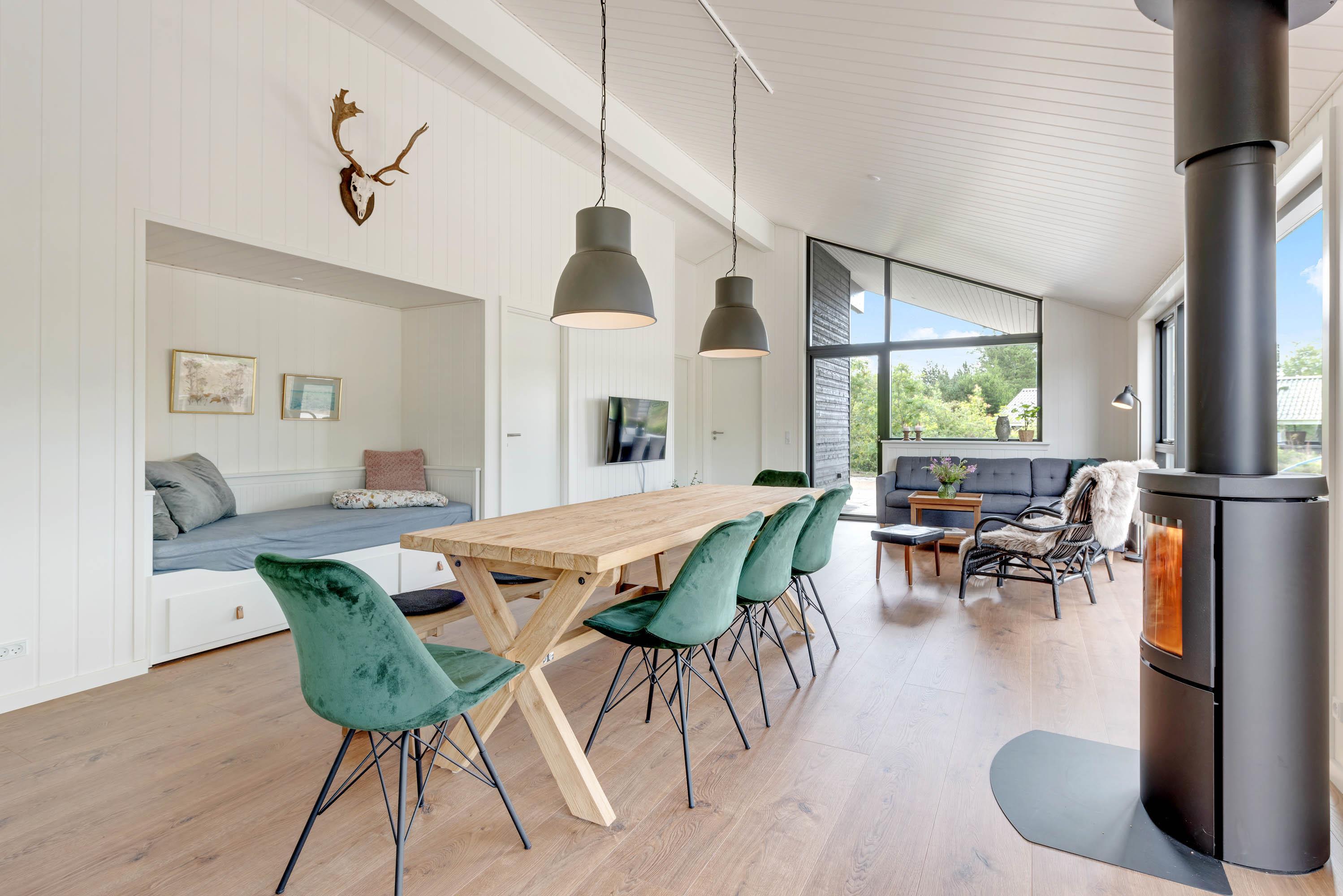 Drømmer I om en ferie i luksuriøse omgivelser? Så er dette femstjernede sommerhus lige noget for jer! Det i år 2020 opførte sommerhus er indrettet i en flot nordisk stil, som forener det moderne med den hyggelige, klassiske sommerhusstemning. Særlige detaljer som en alkove i køkken-alrummet giver et særligt præg, det er det perfekte hjørne til en god bog eller til at hygge-gemme sig lidt med sin ipad, imens der dækkes bord til aftensmaden.
