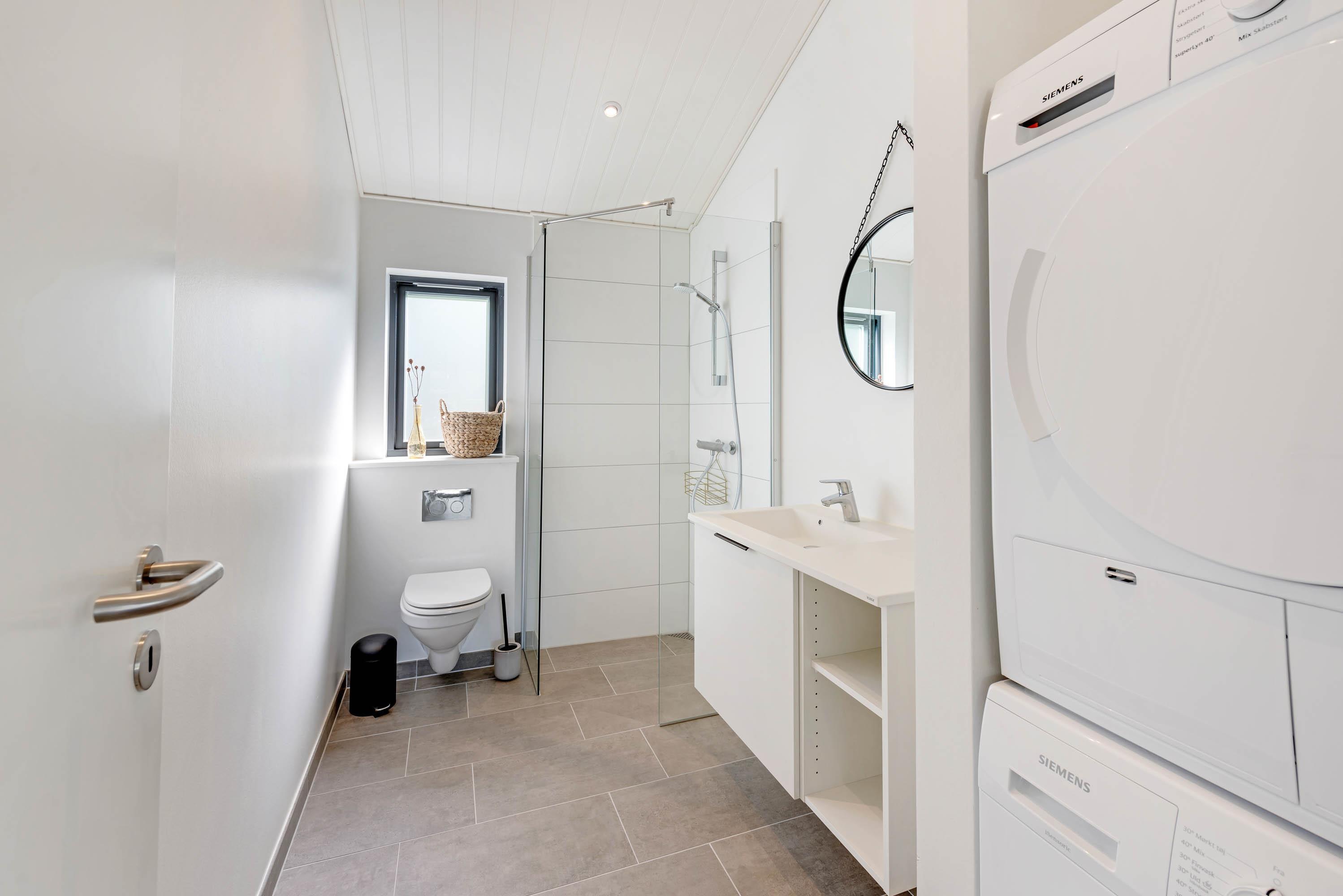Sommerhuset er udstyret med 2 badeværelser, så I undgår lange køer til badet om morgenen. Fra det ene badeværelse er der desuden indgang til sommerhusets sauna, hvor I kan nyde nogle skønne wellness-stunder. Et sikkert hit efter en lang gåtur i den vestjyske natur! Derudover findes der et lækkert udespa på terrassen.