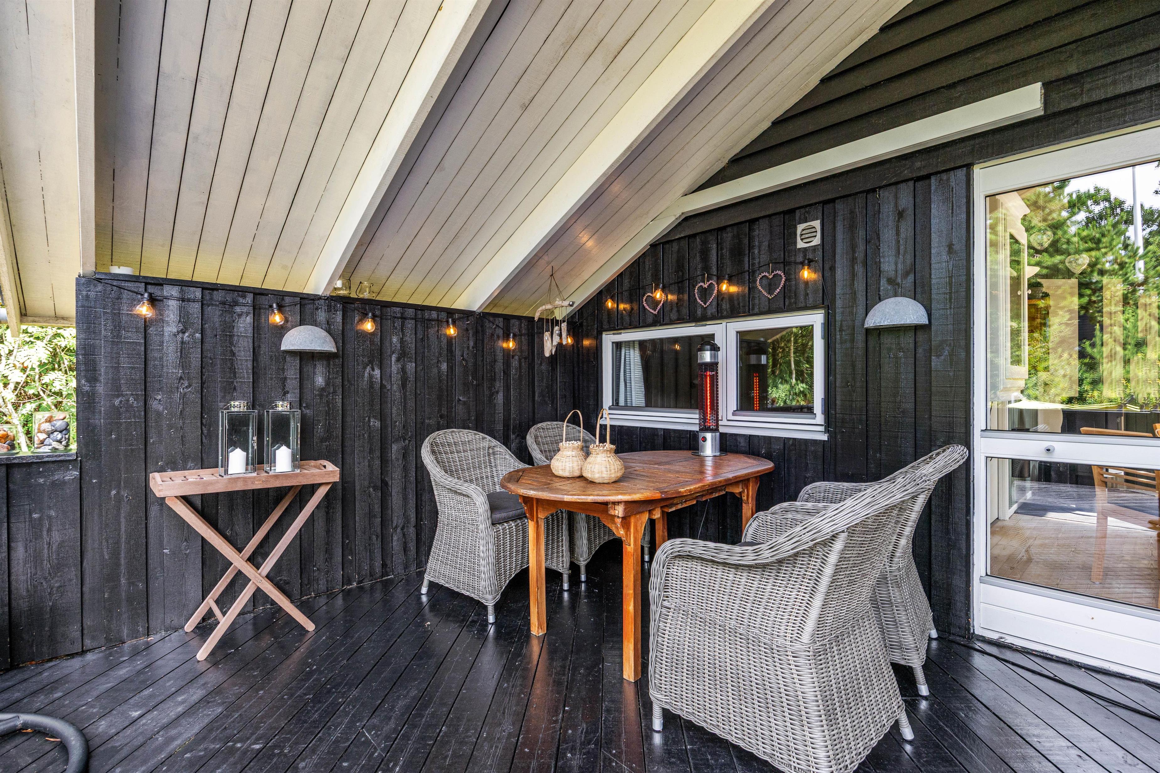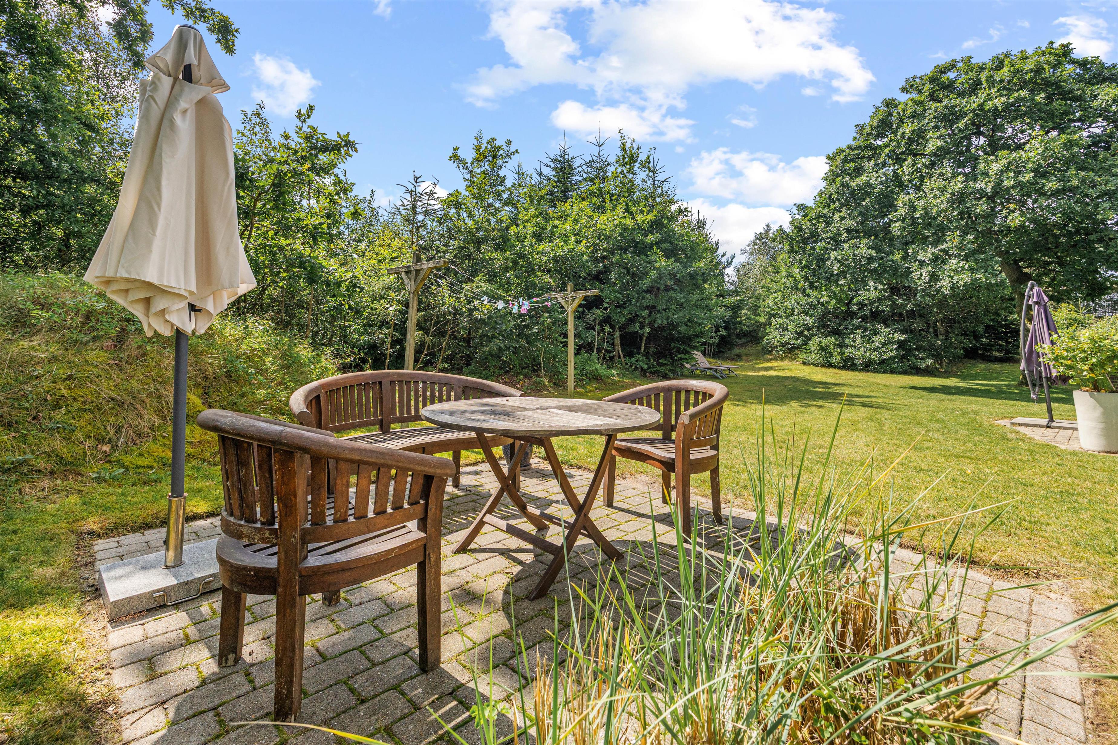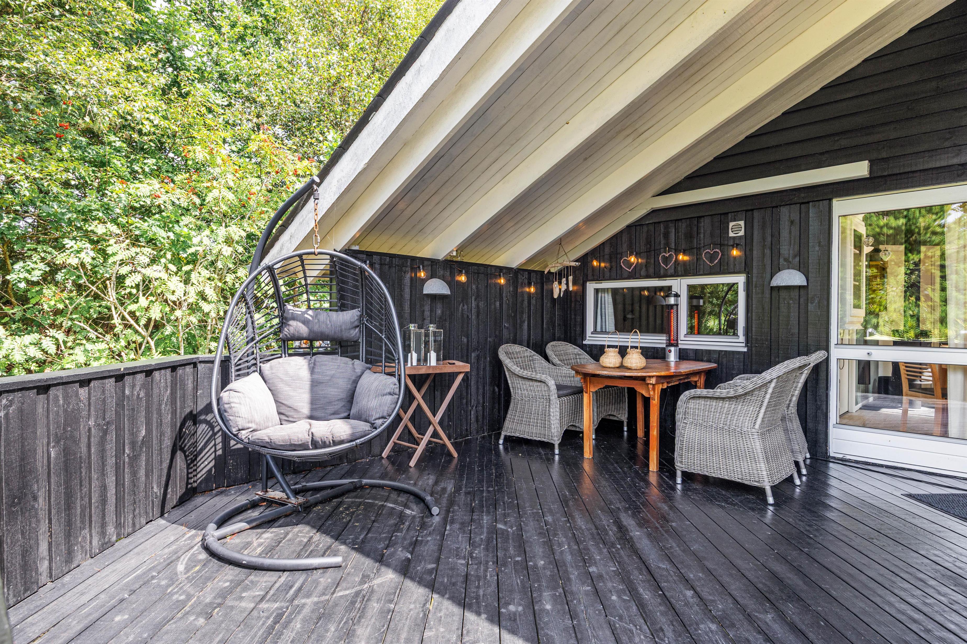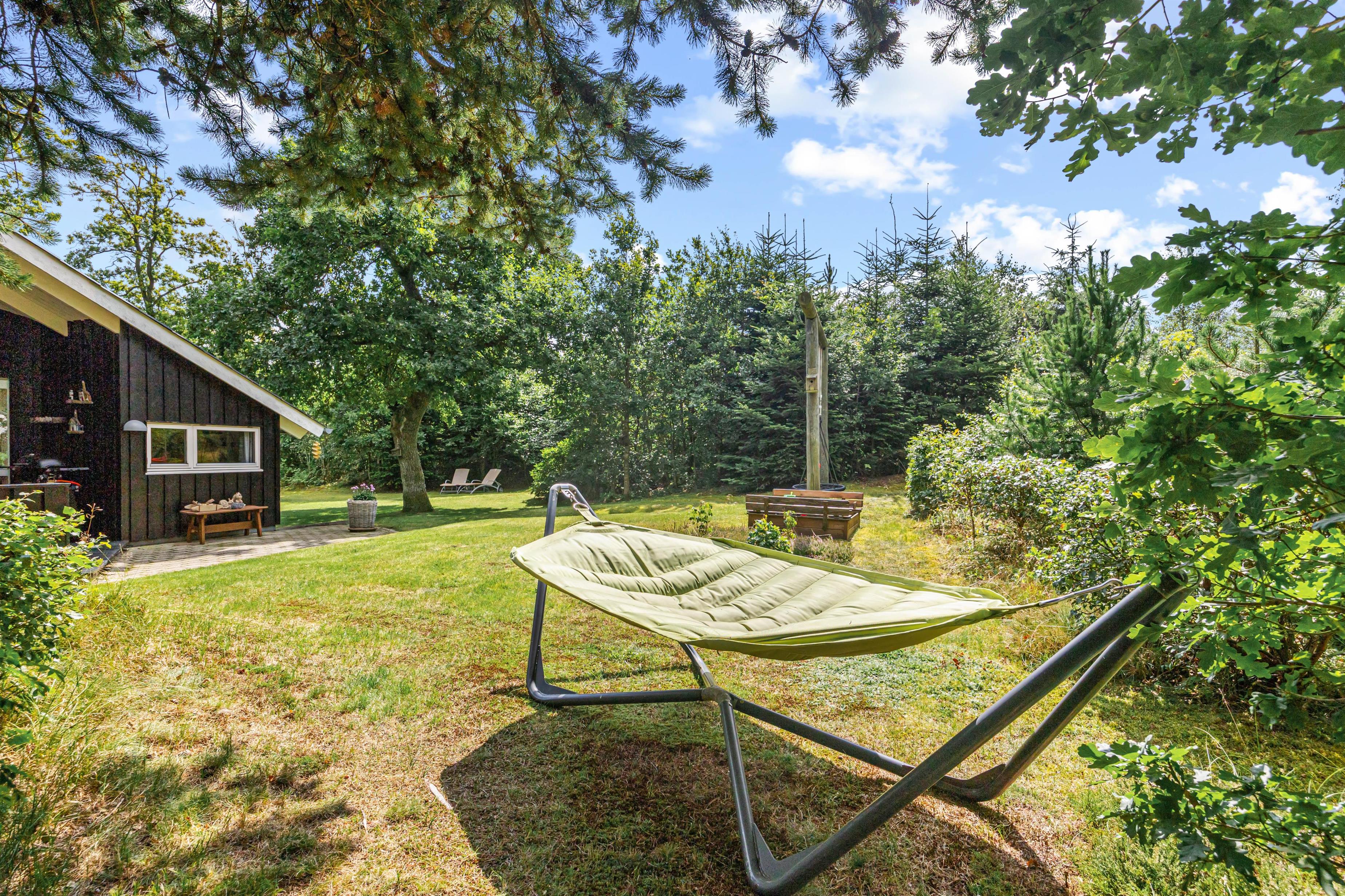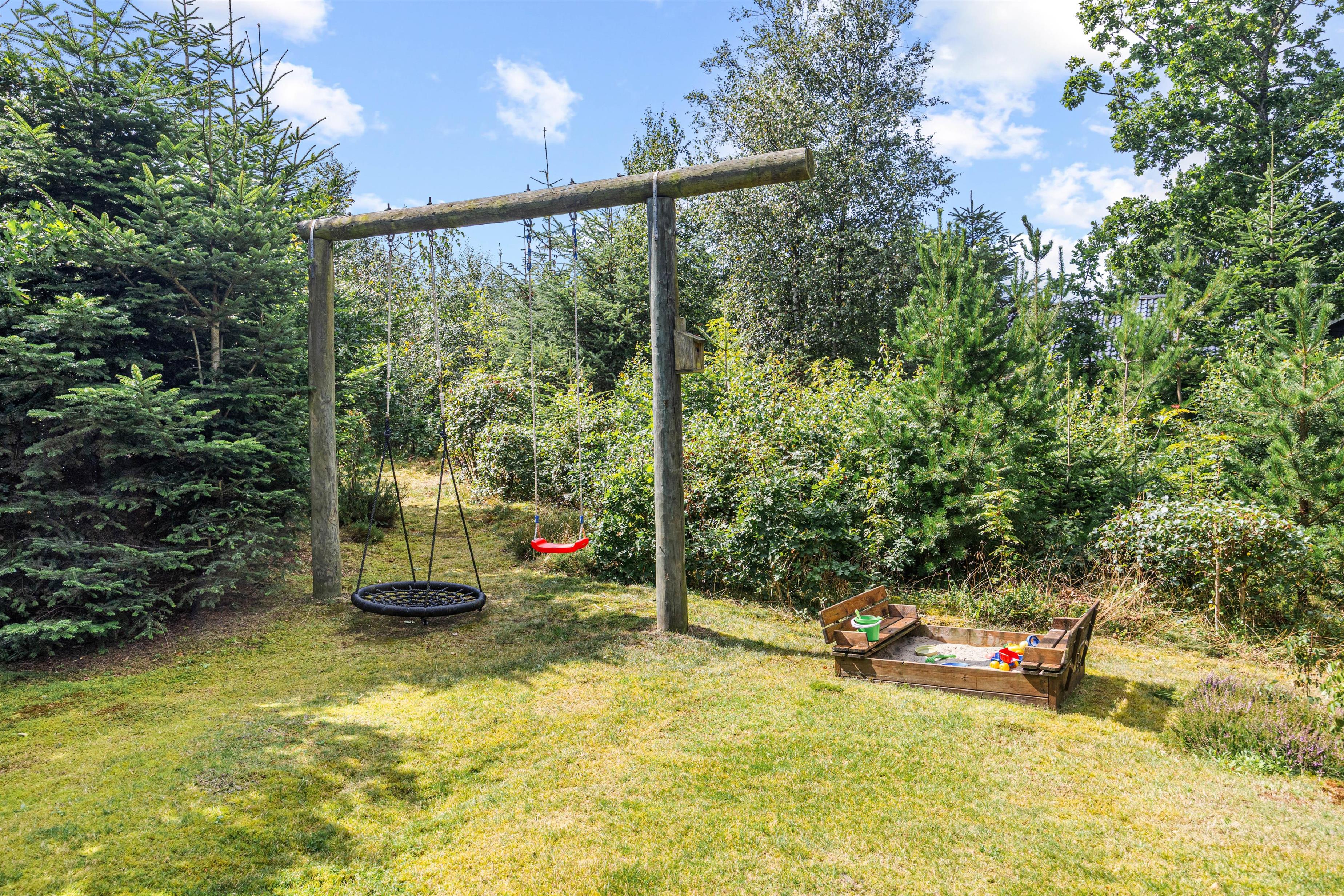 I haven er der tænkt på de yngste feriegæster. Til dem er der nemlig både et gyngestativ og en sandkasse, hvor de kan lege dagen lang. Som dagen lakker mod enden, kan I gøre klar til aftenens grillmiddag på terrassen, hvor I har en gasgrill til rådighed.