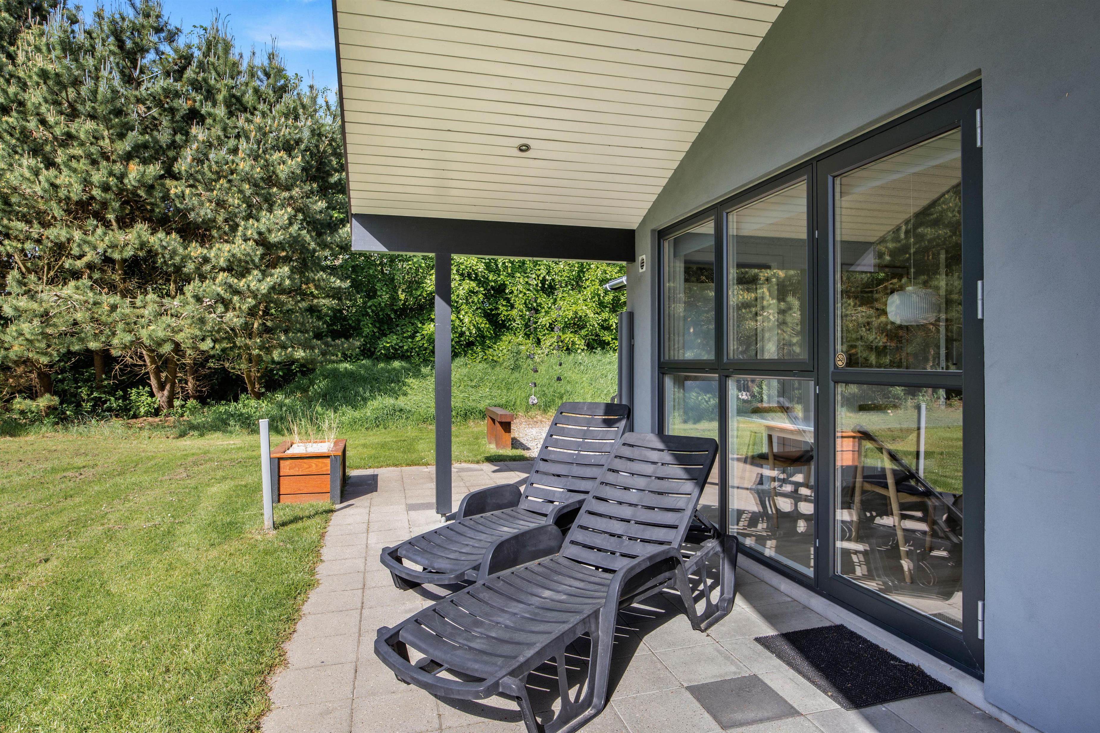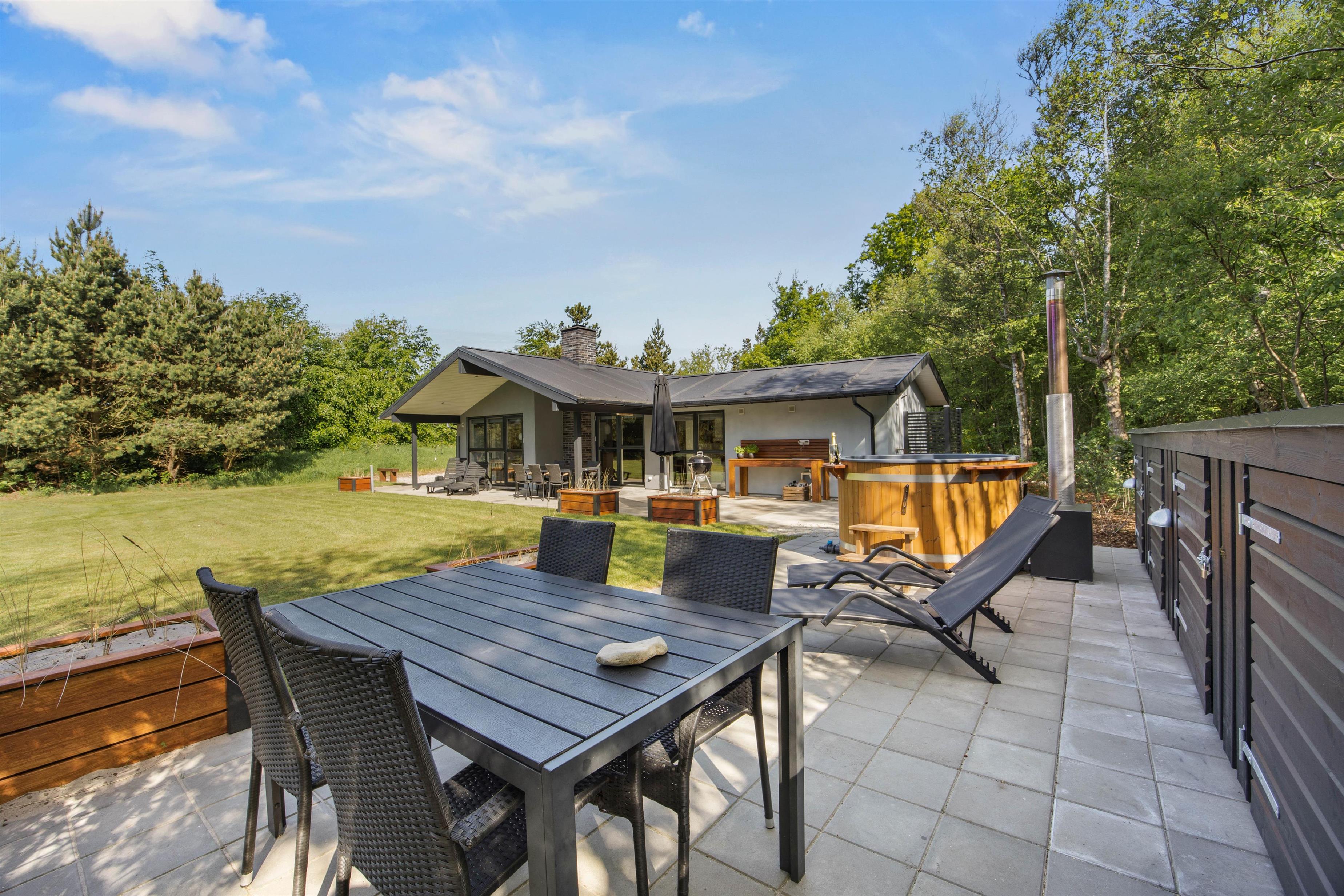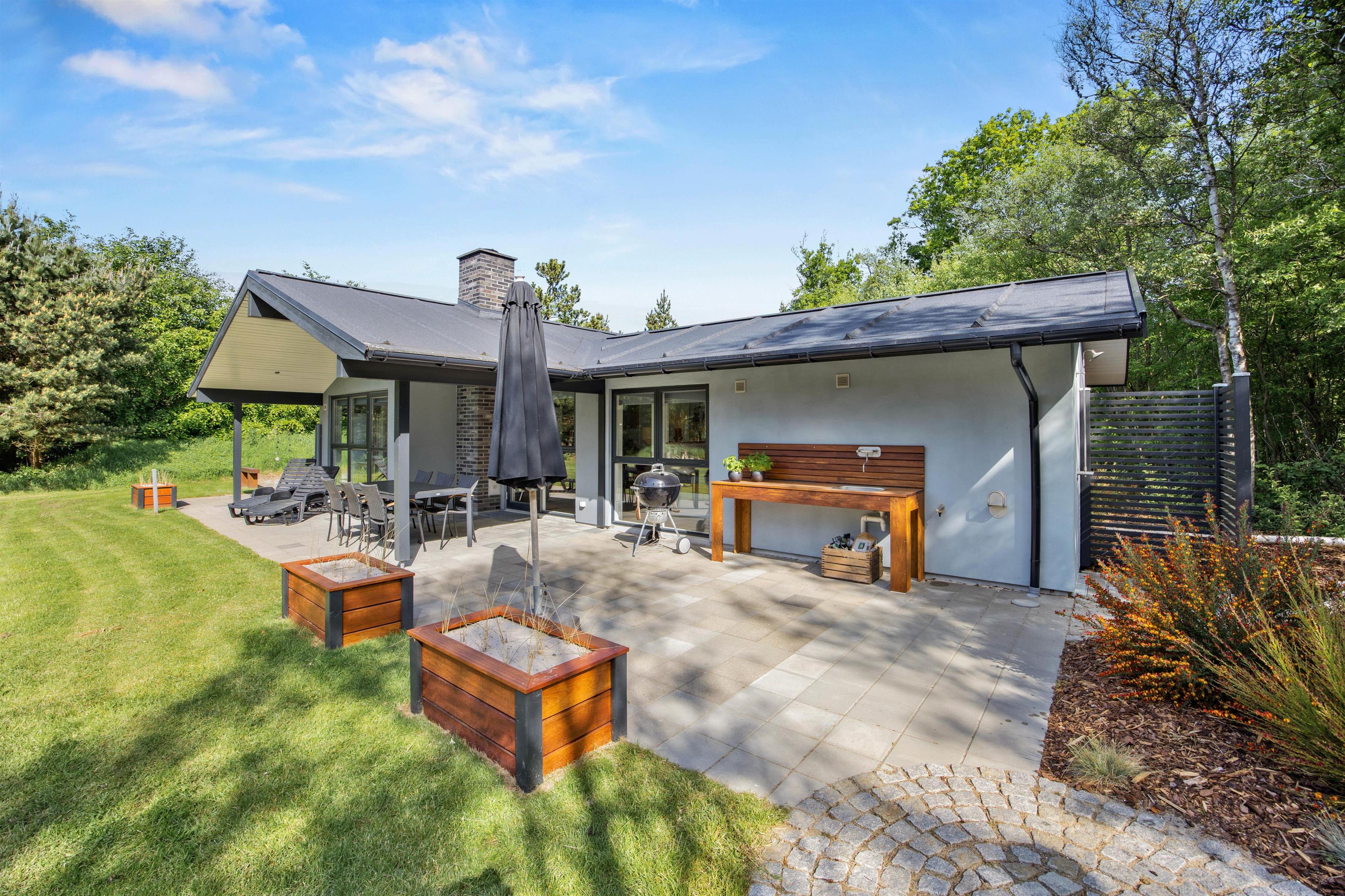 Mens børnene leger, gynger og bygger sandslotte i haven, kan de voksne slappe af på terrasserne. De skønne store terrasser er klar til alle slags udendørs hygge – her kan der både laves mad ved det dejlige udekøkken og slappes af. Under den delvist overdækkede terrasse kan I sætte jer til rette, når der er brug for skygge eller læ.