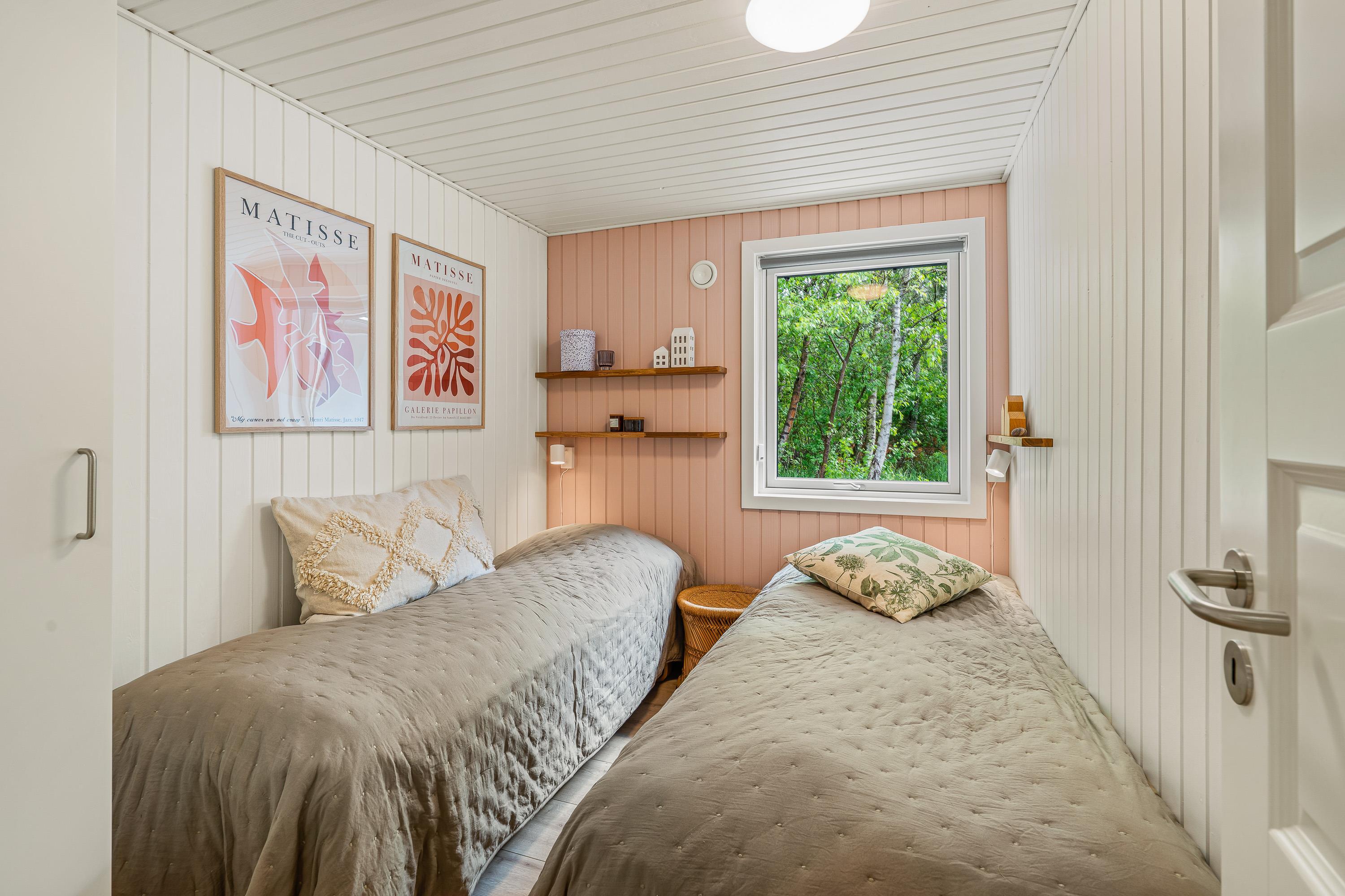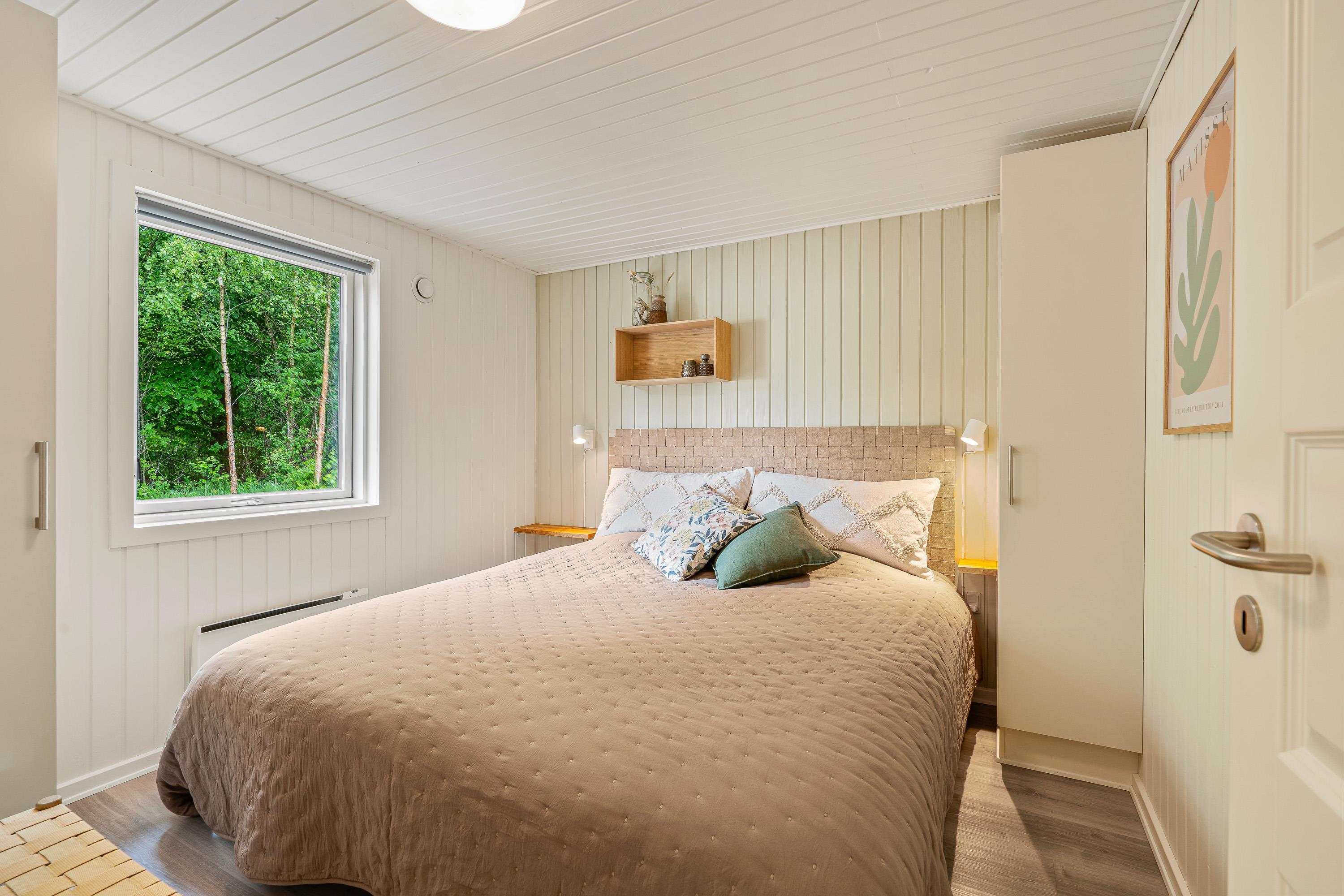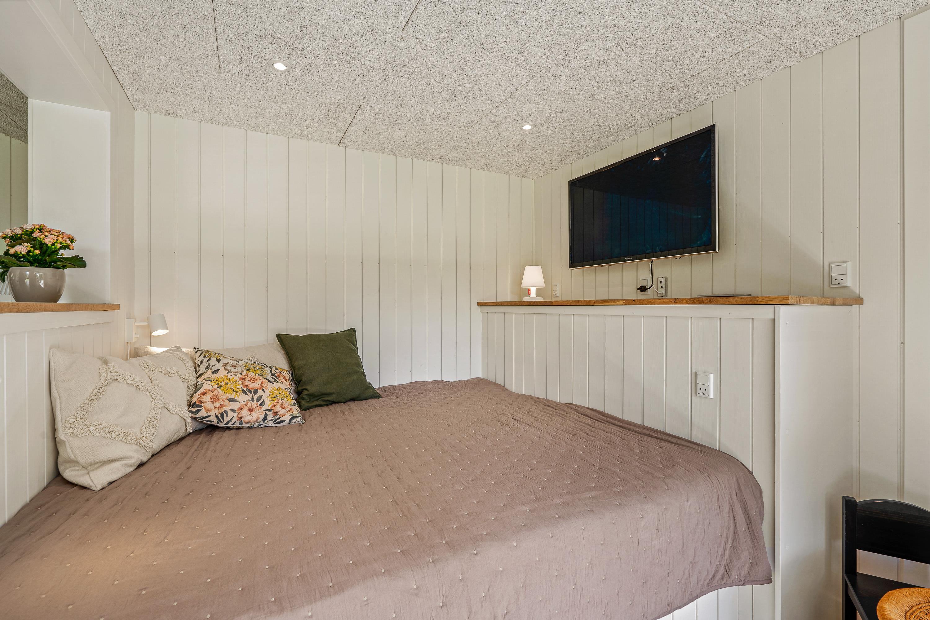 Sommerhusets sovepladser fordeles over 3 gode soveværelser. 2 af soveværelserne er indrettet med én dobbeltseng hver, mens det tredje soveværelse har 2 enkeltsenge.