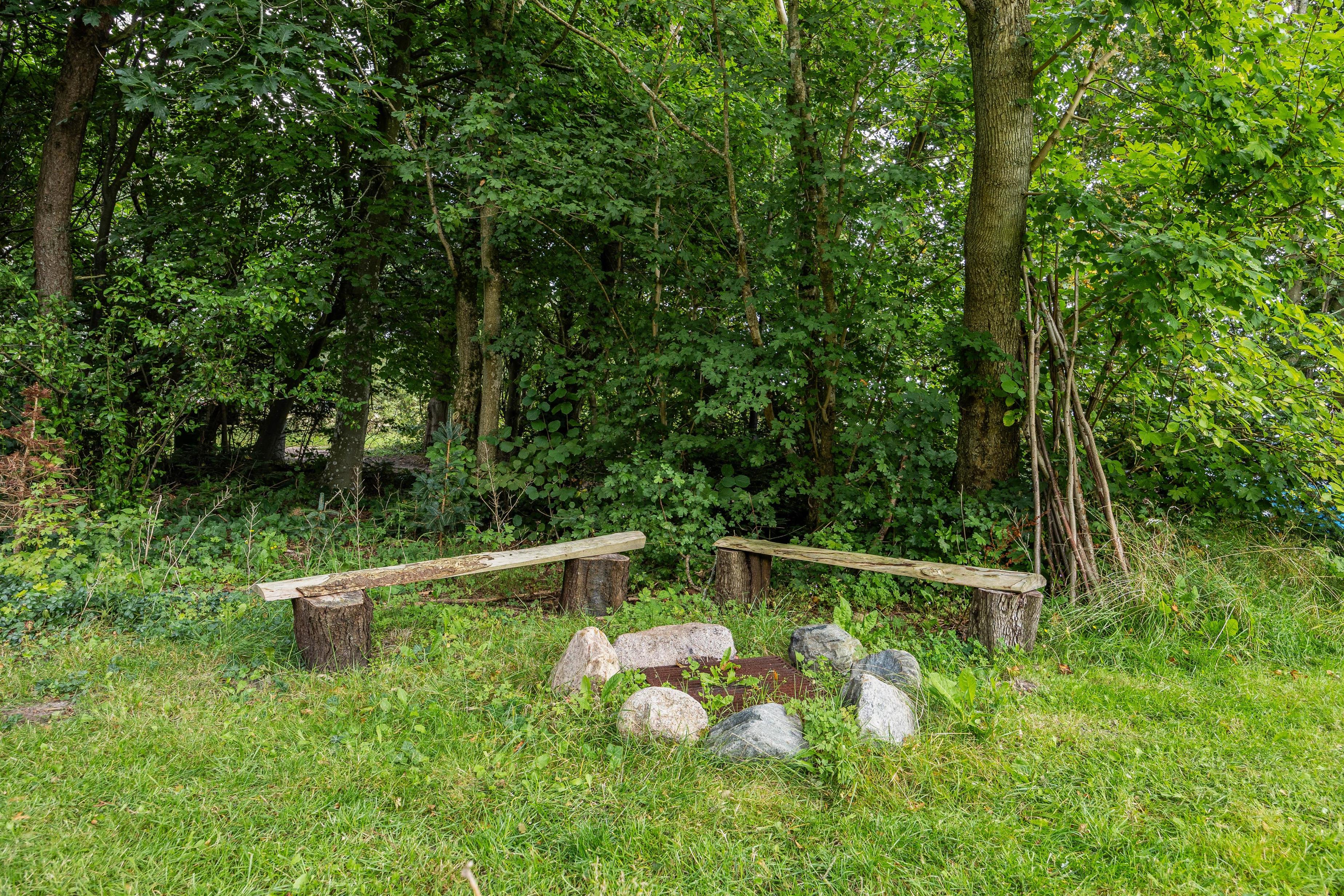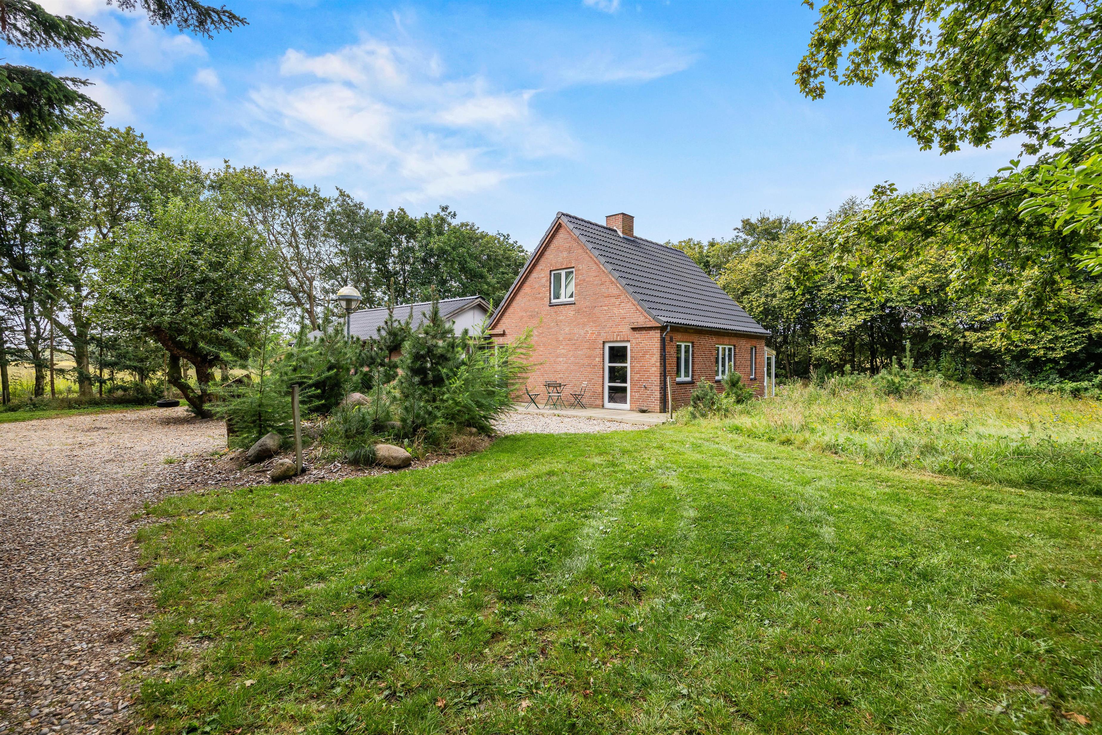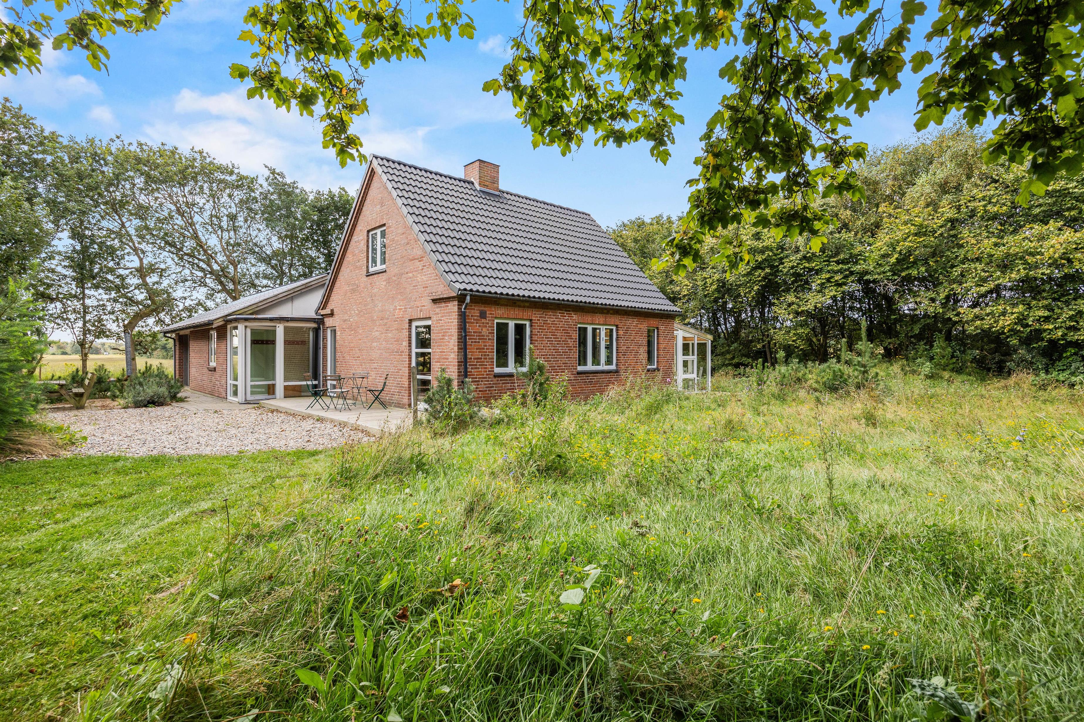 Sommerhuset ligger på en skøn uforstyrret naturgrund, hvor I kan holde ferie i ro og mag. Den skønne natur og de rolige omgivelser kan I nyde på sommerhusets to terrasser, hvor I har havemøbler, liggestole og grill til rådighed, så I kan få mest muligt ud af de varme sommerdage. Efter en hyggelig grillmiddag på terrassen kan I rykke over til bålstedet og riste skumfiduser, mens dagen så småt går på hæld.