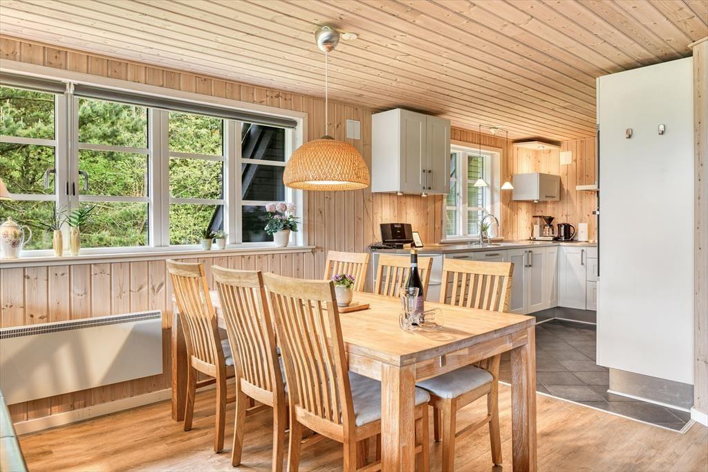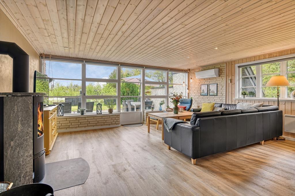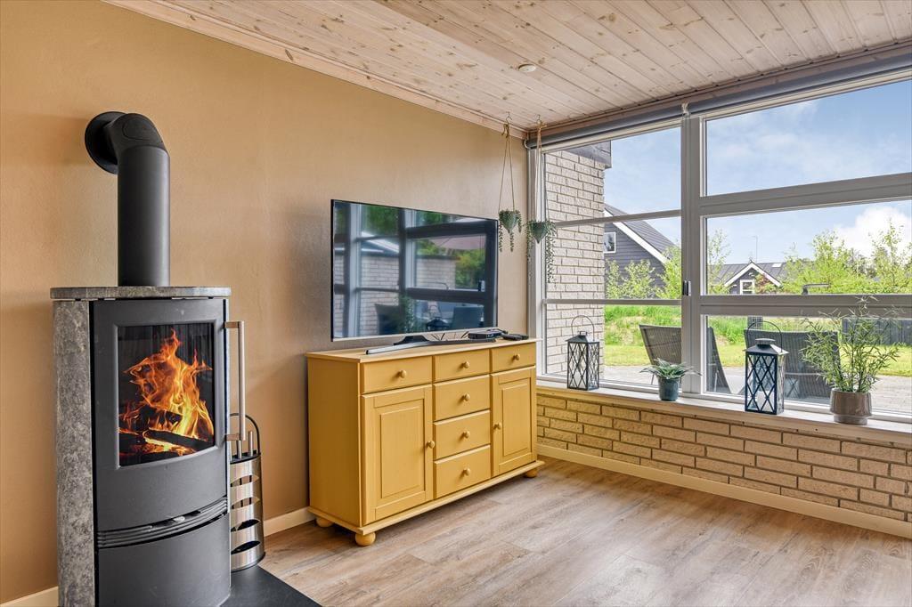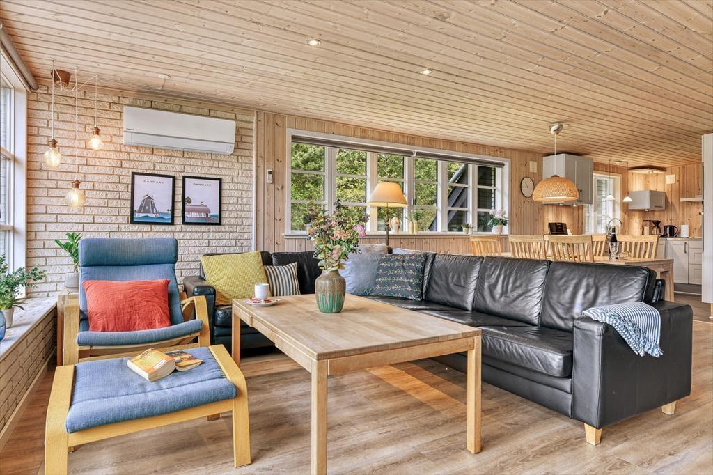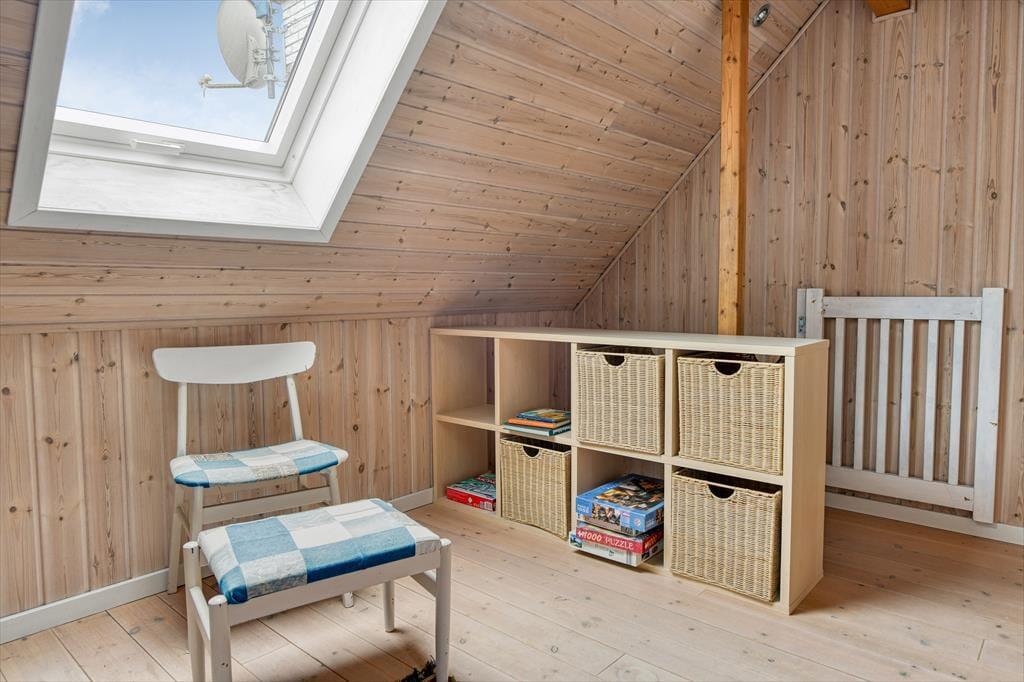 Det hyggelige sommerhus på Harevej 6 byder velkommen med en afslappet atmosfære, hvor du straks mærker, at ferien kan begynde. Stuen og køkken-alrummet ligger i åben forbindelse, så der er god plads til, at hele familien kan samles. Tænd op i brændeovnen, mens du dækker op til aftensmad, eller læg dig til rette i sofaen med en god bog, mens dagens sidste solstråler falder ind gennem vinduerne. På badeværelset finder du både spa og sauna – perfekte til afslapning efter en lang dag i den friske luft. Når kroppen trænger til varme og velvære, kan du lade boblerne løsne spændingerne, inden du hopper i saunaen og nyder stilheden. På 1. sal finder du et hyggeligt værelse med dobbeltseng, hvor du kan trække dig tilbage og falde i søvn med udsigt til trækronerne og stjernerne på nattehimlen.
