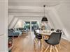 Dette smukke A-hus tilbyder jer de ideelle betingelser for en afslappende ferie med familie eller venner. Huset er fordelt på to etager og er indrettet smagfuldt og med sans for detaljer. Husets hjerte er den smukke stue med stor sofa, spisebord og åbent køkken. Her kan I tilbringe hyggelige aftener foran tv'et eller med en lækker middag med alle jeres gæster.