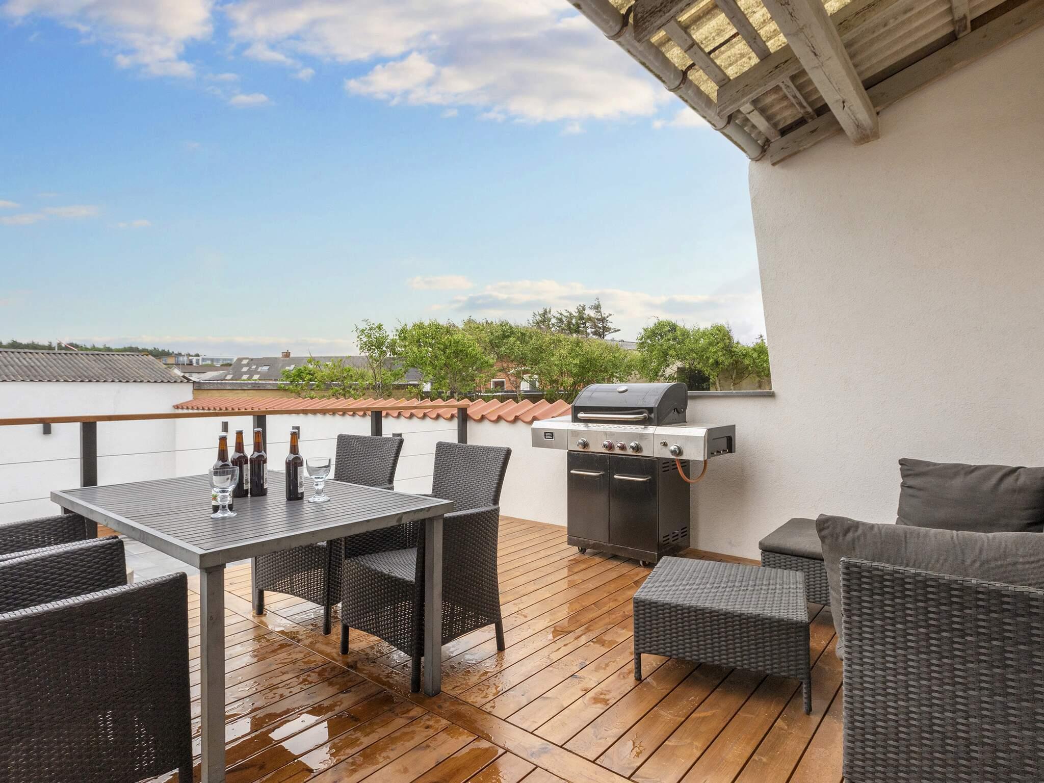 Alrummet, som er lækkert og hyggeligt møbleret, har udgang til stor veranda med havemøbler og nedgang til den hyggelige gårdhave. På verandaen er der gasgrill.