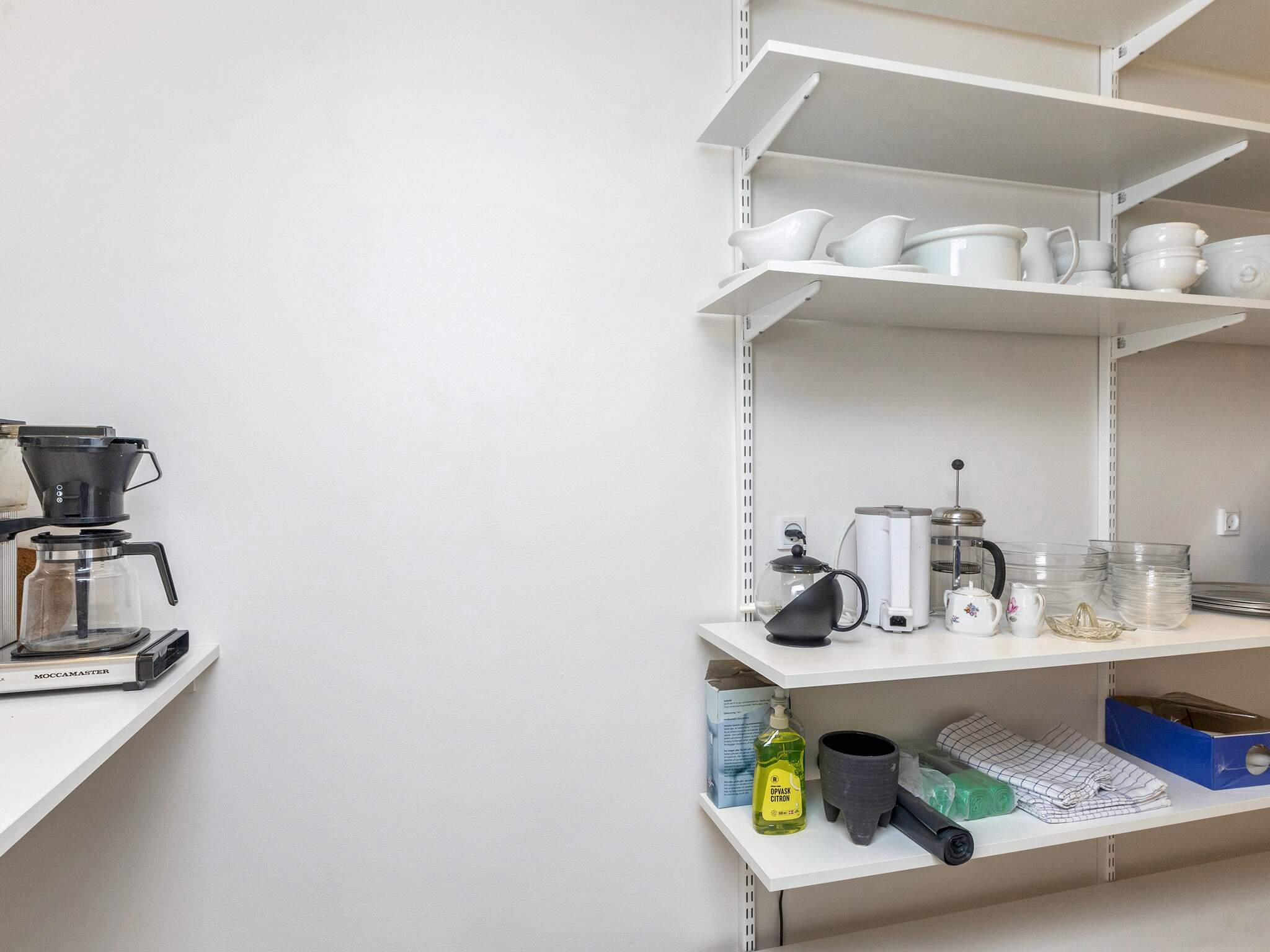Køkkenet er udstyret med alt i nye hvidevarer og sågar 2 ovne - her er også et "hemmeligt" viktualierum med rigtig god plads, og her er husets fryser også placeret.