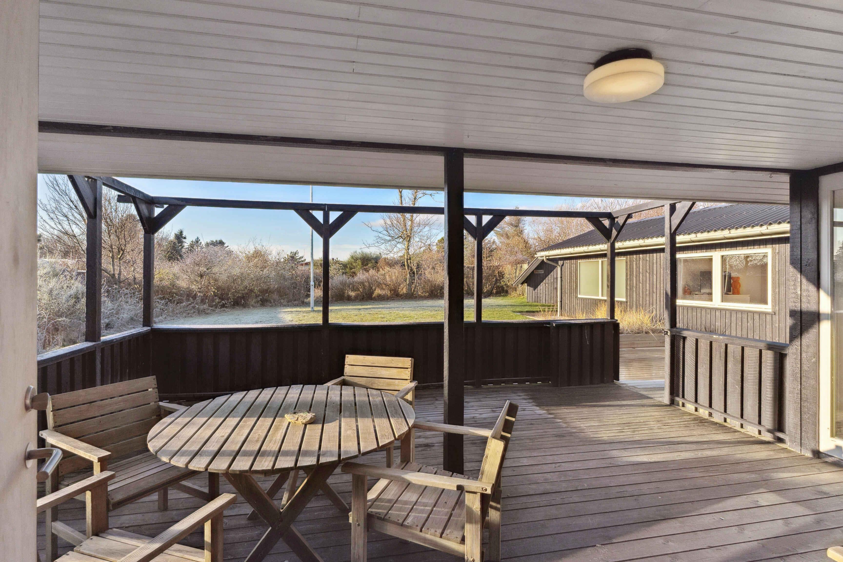 Velindrettet sommerhus i Hjørring med solrig terrasse, tæt på strand og natur for en afslappende ferie.